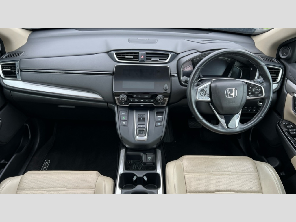 Honda CR-V 2.0 i-MMD Hybrid EX 5dr eCVT Adaptive cruise control, Agile handling assist, BLIS (Blind Spot Information System) with dual power heated blind spot mirrors, Bluetooth hands free telephone connection, Economy mode, Electric power steering, Emergency stop signalling system, Forward collision warning, Front and rear parking sensors, Hands free tailgate, Head up Display, Honda CONNECT with GARMIN Navigation + 7" touchscreen, DAB radio, Apple CarPlay, Android Auto, Aha app integration and internet browsing, Intelligent multi info display, Lane departure warning system, Lane keep assist system, Low speed following, Rear view camera, Road departure mitigation, Speed limiter, Traffic sign recognition, Vehicle stability assist, 2 USB sockets in rear, 2x USB sockets in front, 8 Speakers, DAB Digital radio, Steering wheel mounted controls, Subwoofer, Aspheric door mirrors, Auto dimming rear view mirror, Automatic headlights with dusk sensor, Body colour bumpers, Body colour door handles, Cornering light, Door mirrors tilt when reversing, Electric front windows/one touch facility, Electric rear windows + one touch facility, Electrically adjustable and heated door mirrors, Electrically retractable door mirrors, Front windscreen de-icer, High beam assist, LED daytime running lights, LED front fog lights, LED Headlights, LED rear lights, Panoramic opening glass sunroof, Rain sensor, Rear privacy glass, Rear wiper, Roof rails, Shark fin roof aerial, Welcome home function, 60/40 split folding rear seat, 8 way electrically adjustable drivers seat + mirror memory, Accessory sockets, Ambient interior lighting, Ambient light in roof, AWD emblem rear, Cargo hooks, Courtesy lights, Driver's electric adjustable lumbar support, Driver/passenger front seatback pockets, Driver/passenger sunvisors with illuminated vanity mirrors, Dual zone automatic climate control, Electric lumbar adjustment on passenger's seat, Footwell ambient lighting, Front centre armrest, Front map lights, Front passenger seat height adjust, Heated front seats, Heated rear seats, Heated steering wheel, Hybrid emblem, Illuminated glovebox, Instrument panel with garnish wood film, Isofix child seat preparation, Leather steering wheel, Leather upholstery, Paddle shift controls, Rear air vents, Rear centre armrest, Rear headrests, Rear reading lights, Silver interior door handles, Sunglasses holder with mirror, Tilt/telescopic adjustable steering wheel, Tonneau cover, Trunk light, 5 x 3 point seatbelts, ABS/EBD, Anti-whiplash front headrests, Brake assist function, Collision mitigation braking system, Deflation detection system, Driver airbag, Electronic parking brake with auto hold, Front and rear curtain airbags, Front side airbags, Hill start assist, Passenger airbag deactivate switch, Honda super locks, Immobiliser, Remote keyless entry, Security alarm, Ultrasonic sensor and tilt sensor, Tyre repair kit