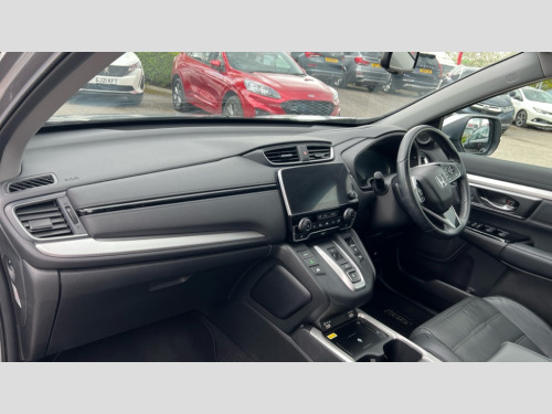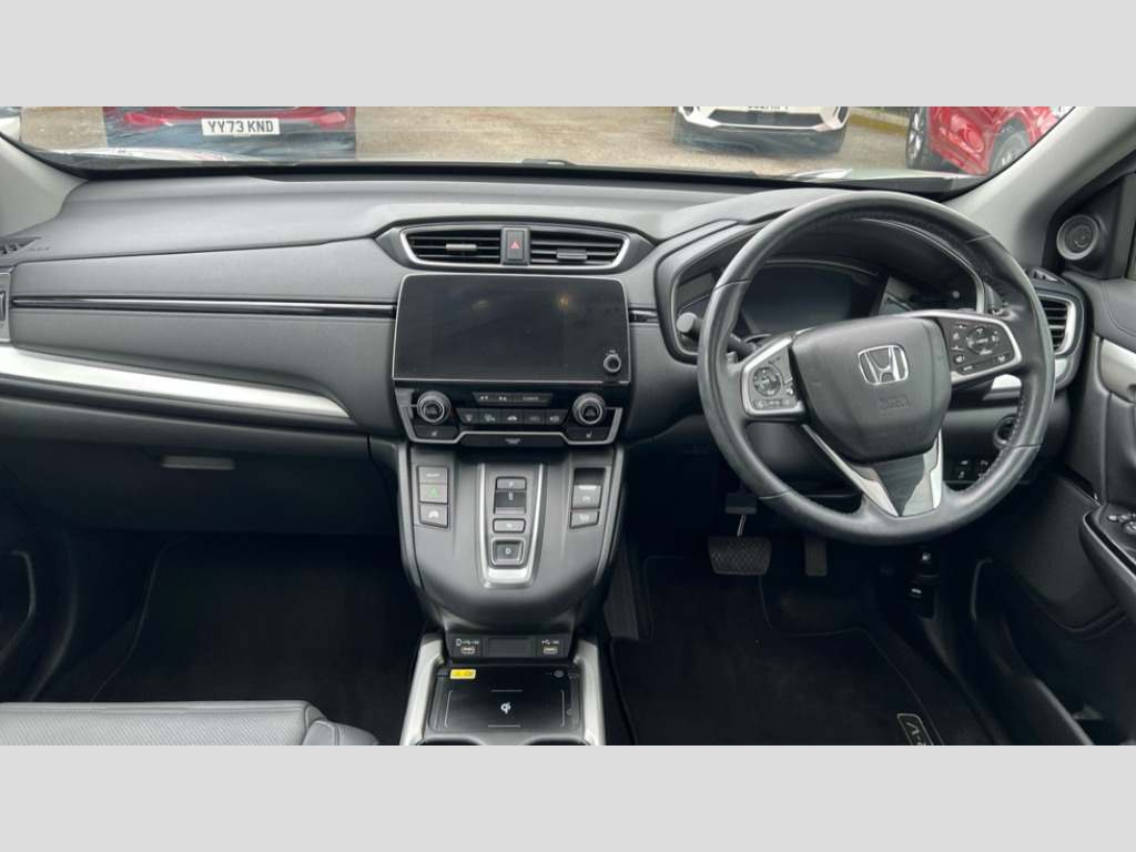 Honda CR-V 2.0 i-MMD Hybrid EX 5dr eCVT Adaptive cruise control, Agile handling assist, BLIS (Blind Spot Information System) with dual power heated blind spot mirrors, Bluetooth hands free telephone connection, E-call, Economy mode, Electric power steering, Emergency stop signalling system, Forward collision warning, Front parking sensors, Hands free tailgate, Head up Display, Honda CONNECT with GARMIN Navigation + 7" touchscreen, DAB radio, Apple CarPlay, Android Auto, Aha app integration and internet browsing, Intelligent multi info display, Lane departure warning system, Lane keep assist system, Low speed following, Rear parking sensors, Rear view camera, Road departure mitigation, Speed limiter, Traffic sign recognition, Wireless charging, Vehicle stability assist, 2 USB sockets in rear, 2x USB sockets in front, 9 speakers, DAB Digital radio, Dashboard centre speaker, Front tweeters, Steering wheel mounted controls, Subwoofer, Aspheric door mirrors, Auto dimming rear view mirror, Automatic headlights with dusk sensor, Body colour bumpers, Body colour door handles, Cornering light, Door mirrors tilt when reversing, Electric front windows/one touch facility, Electric rear windows + one touch facility, Electrically adjustable and heated door mirrors, Electrically retractable door mirrors, Front windscreen de-icer, High beam assist, LED daytime running lights, LED front fog lights, LED Headlights, LED rear lights, Panoramic opening glass sunroof, Rain sensor, Rear privacy glass, Rear side wing doors, Rear wiper, Roof rails, Shark fin roof aerial, Tailgate spoiler, Third brake light, Welcome home function, 3 seat bench in 2nd row, 60/40 split folding rear seat, 8 way electrically adjustable drivers seat + mirror memory, Accessory sockets, Ambient interior lighting, Ambient light in roof, AWD emblem rear, Cargo hooks, Courtesy lights, Driver's electric adjustable lumbar support, Driver/passenger front seatback pockets, Driver/passenger sunvisors with illuminated vanity mirrors, Dual zone automatic climate control, Electric lumbar adjustment on passenger's seat, Footwell ambient lighting, Front centre armrest, Front map lights, Front passenger seat height adjust, Heated front seats, Heated rear seats, Heated steering wheel, Hybrid emblem, Illuminated glovebox, Instrument panel with garnish wood film, Isofix child seat preparation, Leather steering wheel, Leather upholstery, Paddle shift controls, Rear air vents, Rear centre armrest, Rear headrests, Rear reading lights, Silver interior door handles, Single front passenger seat, Sunglasses holder with mirror, Tilt/telescopic adjustable steering wheel, Tonneau cover, Trunk light, 5 x 3 point seatbelts, ABS/EBD, Anti-whiplash front headrests, Brake assist function, Collision mitigation braking system, Deflation detection system, Driver airbag, Electronic parking brake with auto hold, Front and rear curtain airbags, Front and rear seat belts with emergency locking retractor (ELR), Front side airbags, Hill start assist, Manual child lock in rear doors, Passenger airbag deactivate switch, Honda super locks, Immobiliser, Security alarm, Smart entry + Smart start, Ultrasonic security sensor, Tyre repair kit