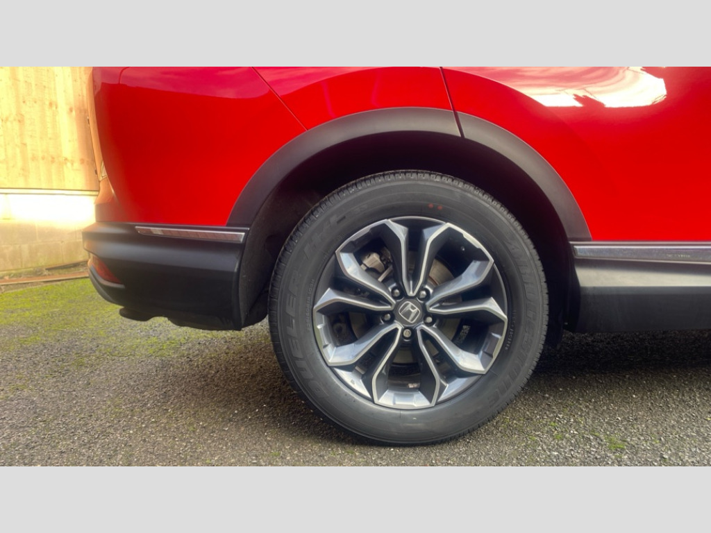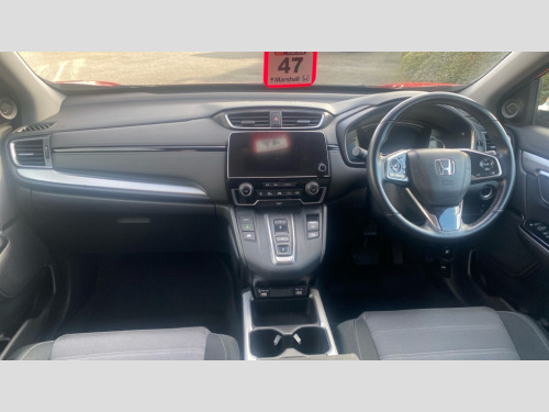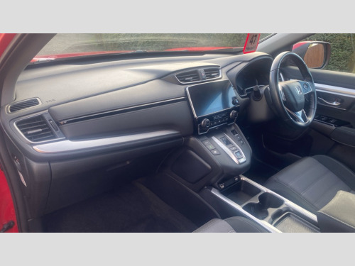 Honda CR-V 2.0 i-MMD Hybrid SE 5dr eCVT Adaptive cruise control, Agile handling assist, Bluetooth hands free telephone connection, E-call, Economy mode, Electric power steering, Emergency stop signalling system, Forward collision warning, Front parking sensors, Honda CONNECT with GARMIN Navigation + 7" touchscreen, DAB radio, Apple CarPlay, Android Auto, Aha app integration and internet browsing, Intelligent multi info display, Lane departure warning system, Lane keep assist system, Low speed following, Rear parking sensors, Rear view camera, Road departure mitigation, Speed limiter, Traffic sign recognition, Drive mode (Econ, Sport, EV), Vehicle stability assist, 2 USB sockets in rear, 2x USB sockets in front, 9 speakers, DAB Digital radio, Dashboard centre speaker, Front tweeters, Steering wheel mounted controls, Subwoofer, Aspheric door mirrors, Auto dimming rear view mirror, Auto wipers, Automatic headlights with dusk sensor, Body colour bumpers, Body colour door handles, Body colour door mirrors, Chrome grille, Door mirrors tilt when reversing, Electric front windows/one touch facility, Electric rear windows + one touch facility, Electrically adjustable and heated door mirrors, Electrically retractable door mirrors, Front LED Indicator lights, High beam assist, LED daytime running lights, LED front fog lights, LED Headlights, LED rear lights, Rear privacy glass, Rear side wing doors, Rear wiper, Shark fin roof aerial, Tailgate spoiler, Third brake light, Welcome home function, 3 seat bench in 2nd row, 60/40 split folding rear seat, Accessory sockets, Ambient light in roof, AWD emblem rear, Cargo hooks, Courtesy lights, Driver's electric adjustable lumbar support, Driver/passenger front seatback pockets, Driver/passenger sunvisors with illuminated vanity mirrors, Dual zone automatic climate control, Front centre armrest, Front map lights, Height adjustable driver's seat, Hybrid emblem, Illuminated glovebox, Instrument panel with garnish wood film, Isofix child seat preparation, Leather steering wheel, Paddle shift controls, Rear air vents, Rear centre armrest, Rear headrests, Rear reading lights, Rear seat conversation mirror, Silver interior door handles, Silver interior panels, Single front passenger seat, Sunglasses holder with mirror, Tilt/telescopic adjustable steering wheel, Tonneau cover, Trunk light, 5 x 3 point seatbelts, ABS/EBD, Anti-whiplash front headrests, Brake assist function, Collision mitigation braking system, Deflation detection system, Driver airbag, Electronic parking brake with auto hold, Front and rear curtain airbags, Front and rear seat belts with emergency locking retractor (ELR), Front centre airbag, Front passenger airbag, Front side airbags, Hill start assist, Manual child lock in rear doors, Passenger airbag deactivate switch, Honda super locks, Immobiliser, Security alarm, Selectable door unlock, Smart entry + Smart start, Ultrasonic security sensor, Tyre repair kit