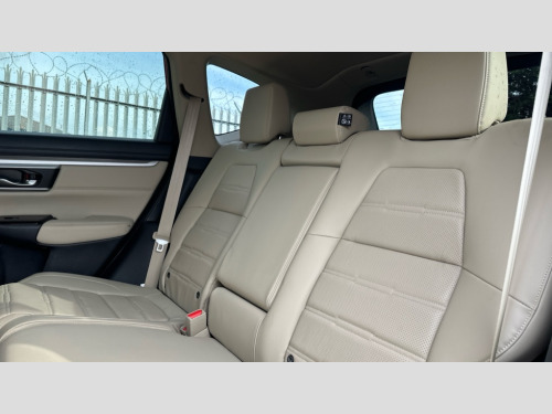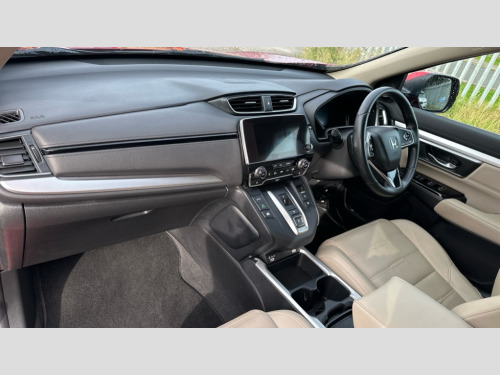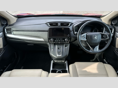 Honda CR-V 2.0 i-MMD Hybrid SR 5dr eCVT Adaptive cruise control, Agile handling assist, BLIS (Blind Spot Information System) with dual power heated blind spot mirrors, Bluetooth hands free telephone connection, E-call, Economy mode, Electric power steering, Emergency stop signalling system, Forward collision warning, Front parking sensors, Honda CONNECT with GARMIN Navigation + 7" touchscreen, DAB radio, Apple CarPlay, Android Auto, Aha app integration and internet browsing, Intelligent multi info display, Lane departure warning system, Lane keep assist system, Low speed following, Rear parking sensors, Rear view camera, Road departure mitigation, Speed limiter, Traffic sign recognition, Drive mode (Econ, Sport, EV), Vehicle stability assist, 2 USB sockets in rear, 2x USB sockets in front, 9 speakers, DAB Digital radio, Dashboard centre speaker, Front tweeters, Steering wheel mounted controls, Subwoofer, Aspheric door mirrors, Auto dimming rear view mirror, Auto wipers, Automatic headlights with dusk sensor, Body colour bumpers, Body colour door handles, Body colour door mirrors, Chrome grille, Cornering light, Door mirrors tilt when reversing, Electric front windows/one touch facility, Electric rear windows + one touch facility, Electrically adjustable and heated door mirrors, Electrically retractable door mirrors, Front LED Indicator lights, Front windscreen de-icer, High beam assist, LED daytime running lights, LED front fog lights, LED Headlights, LED rear lights, Rain sensor, Rear privacy glass, Rear side wing doors, Rear wiper, Roof rails, Shark fin roof aerial, Tailgate spoiler, Third brake light, Welcome home function, 3 seat bench in 2nd row, 60/40 split folding rear seat, Accessory sockets, Ambient interior lighting, Ambient light in roof, AWD emblem rear, Cargo hooks, Courtesy lights, Driver's electric adjustable lumbar support, Driver/passenger front seatback pockets, Driver/passenger sunvisors with illuminated vanity mirrors, Dual zone automatic climate control, Electric lumbar adjustment on passenger's seat, Footwell ambient lighting, Front centre armrest, Front map lights, Front passenger seat height adjust, Heated front seats, Height adjustable driver's seat, Hybrid emblem, Illuminated glovebox, Instrument panel with garnish wood film, Isofix child seat preparation, Leather steering wheel, Leather upholstery, Paddle shift controls, Rear air vents, Rear centre armrest, Rear headrests, Rear reading lights, Rear seat conversation mirror, Silver interior door handles, Silver interior panels, Single front passenger seat, Sunglasses holder with mirror, Tilt/telescopic adjustable steering wheel, Tonneau cover, Trunk light, 5 x 3 point seatbelts, ABS/EBD, Anti-whiplash front headrests, Brake assist function, Collision mitigation braking system, Deflation detection system, Driver airbag, Electronic parking brake with auto hold, Front and rear curtain airbags, Front and rear seat belts with emergency locking retractor (ELR), Front centre airbag, Front passenger airbag, Front side airbags, Hill start assist, Manual child lock in rear doors, Passenger airbag deactivate switch, Honda super locks, Immobiliser, Security alarm, Selectable door unlock, Smart entry + Smart start, Ultrasonic security sensor, Tyre repair kit