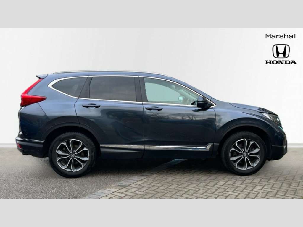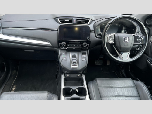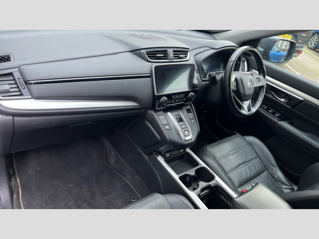 Honda CR-V 2.0 i-MMD Hybrid SR 5dr eCVT Adaptive cruise control, Agile handling assist, BLIS (Blind Spot Information System) with dual power heated blind spot mirrors, Bluetooth hands free telephone connection, E-call, Economy mode, Electric power steering, Emergency stop signalling system, Forward collision warning, Front parking sensors, Honda CONNECT with GARMIN Navigation + 7" touchscreen, DAB radio, Apple CarPlay, Android Auto, Aha app integration and internet browsing, Intelligent multi info display, Lane departure warning system, Lane keep assist system, Low speed following, Rear parking sensors, Rear view camera, Road departure mitigation, Speed limiter, Traffic sign recognition, Drive mode (Econ, Sport, EV), Vehicle stability assist, 2 USB sockets in rear, 2x USB sockets in front, 9 speakers, DAB Digital radio, Dashboard centre speaker, Front tweeters, Steering wheel mounted controls, Subwoofer, Aspheric door mirrors, Auto dimming rear view mirror, Auto wipers, Automatic headlights with dusk sensor, Body colour bumpers, Body colour door handles, Body colour door mirrors, Chrome grille, Cornering light, Door mirrors tilt when reversing, Electric front windows/one touch facility, Electric rear windows + one touch facility, Electrically adjustable and heated door mirrors, Electrically retractable door mirrors, Front LED Indicator lights, Front windscreen de-icer, High beam assist, LED daytime running lights, LED front fog lights, LED Headlights, LED rear lights, Rain sensor, Rear privacy glass, Rear side wing doors, Rear wiper, Roof rails, Shark fin roof aerial, Tailgate spoiler, Third brake light, Welcome home function, 3 seat bench in 2nd row, 60/40 split folding rear seat, Accessory sockets, Ambient interior lighting, Ambient light in roof, AWD emblem rear, Cargo hooks, Courtesy lights, Driver's electric adjustable lumbar support, Driver/passenger front seatback pockets, Driver/passenger sunvisors with illuminated vanity mirrors, Dual zone automatic climate control, Electric lumbar adjustment on passenger's seat, Footwell ambient lighting, Front centre armrest, Front map lights, Front passenger seat height adjust, Heated front seats, Height adjustable driver's seat, Hybrid emblem, Illuminated glovebox, Instrument panel with garnish wood film, Isofix child seat preparation, Leather steering wheel, Leather upholstery, Paddle shift controls, Rear air vents, Rear centre armrest, Rear headrests, Rear reading lights, Rear seat conversation mirror, Silver interior door handles, Silver interior panels, Single front passenger seat, Sunglasses holder with mirror, Tilt/telescopic adjustable steering wheel, Tonneau cover, Trunk light, 5 x 3 point seatbelts, ABS/EBD, Anti-whiplash front headrests, Brake assist function, Collision mitigation braking system, Deflation detection system, Driver airbag, Electronic parking brake with auto hold, Front and rear curtain airbags, Front and rear seat belts with emergency locking retractor (ELR), Front centre airbag, Front passenger airbag, Front side airbags, Hill start assist, Manual child lock in rear doors, Passenger airbag deactivate switch, Honda super locks, Immobiliser, Security alarm, Selectable door unlock, Smart entry + Smart start, Ultrasonic security sensor, Tyre repair kit