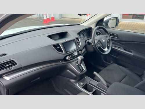 Honda CR-V 2.0 i-VTEC SE Plus 5dr Auto [Nav] Bluetooth hands free telephone connection, Connect Navigation with 7" touchscreen, Digital Radio, Radio/CD/Mp3, Aha app integration, internet browsing, Cruise control, Electric power steering, Front and rear parking sensors, Intelligent multi info display, Rear view camera, Service interval indicator, Speed limiter, Vehicle stability assist, 6 speakers, Steering wheel mounted controls, USB/iPod connection, Aspheric door mirrors, Auto dimming rear view mirror, Automatic headlights with dusk sensor, Body colour bumpers, Body colour door handles, Chrome rear garnish, Daytime running lights, Door mirrors tilt when reversing, Electric front windows/one touch facility, Electric rear windows + one touch facility, Electrically adjustable and heated door mirrors, Electrically retractable door mirrors, Front fog lights, Privacy glass, Rain sensor, Rear wiper, Shark fin roof aerial, Silver roof rails, Trailer stability assist, Welcome home function, 60/40 split folding rear seat, Accessory sockets, Ambient interior lighting, Boot light, Cargo hooks, Chrome interior door handles, Courtesy lights, Driver's electric adjustable lumbar support, Driver/passenger sunvisors with illuminated vanity mirrors, Dual zone automatic climate control, Front centre armrest, Front map lights, Front seatback pockets, Height adjustable driver's seat, Illuminated glovebox, Illuminated ignition switch, Isofix child seat preparation, Leather steering wheel and gear knob, Paddle shift controls, Rear air vents, Rear centre armrest, Rear headrests, Rear seat conversation mirror, Sunglasses holder, Tilt/telescopic adjustable steering wheel, Tonneau cover, 5 x 3 point seatbelts, ABS/EBD, Anti-whiplash front headrests, Brake assist function, City safety braking system, Deflation detection system, Dual front SRS airbags, Front and rear curtain airbags, Front side airbags, Hill descent control, Hill start assist, Passenger airbag deactivate switch, Seatbelt warning, Honda super locks, Immobiliser, Remote central locking with 2 remote folding keys, Security alarm, Brushed alloy inlays, Temporary spare wheel