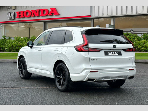 Brand New Honda CR-V Advance Tech finished in the gleaming Diamond Dust White. This premium SUV is powered by a 2.0L 17.7kWh Petrol Plug-in Hybrid engine paired with the eCVT automatic gearbox, offering a smooth and efficient driving experience. The exterior features striking 18-inch Black Alloy Wheels, LED headlights and rear privacy glass, there’s no denying this is one stylish looking SUV. The keyless entry system ensures effortless access to the refined Black leather interior, which includes heated front and rear outer seats, front ventilated seats and a heated leather steering wheel. For ultimate convenience, the front seats offer electric adjustment with driver memory presets. Enjoy a bright and airy cabin thanks to the panoramic sunroof, while the heads-up display provides clear and easy-to-read driving data on the road ahead for improved concentration. The infotainment system features DAB Radio, Bluetooth connectivity, Navigation and smartphone integration via Apple CarPlay and Android Auto, all enhanced by the Bose Premium Audio Sound System for an exceptional listening experience. Parking is a breeze with parking sensors and a 360-degree camera, while advanced safety features like Adaptive Cruise Control, Lane Departure Warning, Blind Spot Information, Cross Traffic Monitor and the Collision Mitigation Braking System offer peace of mind on every journey. 18in Alloy Wheels - Black, 2x USB Front, 2x USB Rear, ABS - Anti Lock Braking System, Accessory Socket - Front and Trunk, Active Cornering Lights - ACL, Adaptive Cruise Control, Adaptive Driving Beam - ADB, Adjustable Speed Limiter, Agile Handling Assist, Air Conditioning - Rear Vent, Airbag - Driver SRS - Single Stage Inflation, Airbag - Front Centre, Airbag - Front Driver and Passenger, Airbag - Front Side, Airbag - Knee - DR and AS, Airbag - Passenger SRS with Cut Off Switch, Airbag - Rear Side, Airbag - Side Curtain - Front and Rear, Ambient Light - Driver-Passenger Footwell - Door Handle, Ambient Light - Roof, Antenna - Shark Fin in Black, Armrest - Rear Centre, Auto Dimming Rear View Mirror, Auto Headlight Adjuster, Auto Wipers, BA - Brake Assist, Blind Spot Information including Cross Traffic Monitor, Body Colour Exterior Door Handles, Brake Hold, Cargo Net Hook, Climate Control - Dual Zone, Collision Mitigation Braking System - CMBS, Collision Mitigation Throttle Control, Courtesy Light, Dark Coloured Roof Lining, Daytime Running Lights - LED, Deflation Warning System - DWS, Digital Audio Broadcast - DAB+, Door Handles - Interior - Platinum Chrome Plated, Door Mirror - Multi View Camera System, Door Mirrors - Black, Door Mirrors - Electrically Adjustable and Folding - Heated - Exterior Mirror Tilt for Reverse, Drive Mode - EV-ECON-Normal-Snow-Sport-Tow, Driver Attention Monitor, Driver Seat Lumbar Support, Driver and Front Passenger Seat Armrest, Drivers Seat Back Pocket, EBD - Electronic Brakeforce Distribution, ECall - Europe, Electric Power Steering, Electric Windows - Front and Rear, Electronic Parking Brake with Automatic Brake Hold, Emergency Stop Signal, Exclusive Black Grille, Exclusive Styling - Body Colour Bumpers and Fender, Exhaust - Tailpipe Finisher, Forward Collision Warning - FCW, Front Seat - Electrical Adjustment - Passenger - 4-Way, Front Seat - Electrical Adjustment with Memory - Driver - 8-Way, Front Seat Belts with Emergency Locking Retractor - ELR, Front Seats - Heated, Front Ventilated Seats, Hands Free Power Tailgate, Head Up Display, Headlight Auto On-Off Timer - Coming Home-Leaving Home Function, Hill Start Assist - HSA, Honda CONNECT with Navigation, Honda Parking Pilot, Honda Sensing 360, ISOFIX Points, Immobiliser System, Integrated Bluetooth Hands Free Telephone - HFT, Intelligent Speed Limiter, Interior Panels - Layered Honeycomb Metal Film, Key Fob Operation includes Mirrors and Windows, LED Front Turn Lights with Sequential, LED Headlights, LED Rear Lights, Lane Change Collision Mitigation, Lane Departure Warning - LDW, Lane Keep Assist System, Lane Watch, Low Speed Brake Function, Low Speed Following, Luggage Floor Box, MID - Multi Info Display - 10.2in Screen, Map Light - Front, Meter Illumination, Multi-View Camera, Panoramic Glass Roof, Parking Sensors - 4 x Front 4 x Rear and 4 x Side, Passenger Seat Back Pocket, Power Meter, Premium Audio - BOSE, Privacy Glass, Rear Bench Split - 60-40, Rear Heated Seats, Rear Reading Light, Rear Seat Belts with Emergency Locking Retractor - ELR, Reclining Rear Seat, Regenerative Braking - Deceleration Control - Paddle, Remote Central Locking with 2 Key Fobs, Road Departure Mitigation, Roof Rails, Security Alarm System, Selectable Door Unlock, Smart Entry and Start, Speakers x12, Spoiler - Black and Body Colour, Sport Pedals, Steering Wheel - Heated, Steering Wheel - Leather, Steering Wheel - Remote Audio Controls, Steering Wheel - Tilt and Telescopic Adjustment, Sunglasses Box with Mirror, Sunvisor Vanity Mirrors with Illumination, Tonneau Cover, Traffic Jam Assistant, Traffic Sign Recognition System, Trailer Stability Assist - TSA, Trunk Light, Tyre Repair Kit, Unintented Acceleration Mitigation, VSA - Vehicle Stability Assist, Whiplash Lessening Front Headrests, Window Garnish - High Gloss Black, Wireless Charging