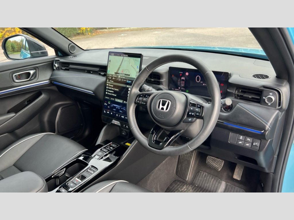 Honda E Ny1 150kW Advance 69kWh 5dr Auto 4 x front 4 x rear 4 x side parking sensors, Adaptive cruise control, Agile handling assist, Bluetooth hands free telephone connection, Drive mode (Econ, Sport, Normal), E-call, Econ mode, Electric power steering, Emergency stop signalling system, Forward collision warning, Handfree power tailgate with kick sensor and walk away close, Honda CONNECT with Navigation 15" touchscreen, AM/FM/DAB, Apple Carplay and Android Auto, Live traffic info, Honda parking pilot, Intelligent speed limiter, Lane departure warning system, Lane keep assist system, Lead car departure notification system, Low speed following, Multi view camera, Power meter, Road departure mitigation, Traffic jam assist, Traffic sign recognition, Wireless charging, 11kW on board charger, Vehicle stability assist, 2 Tweeters, 2 x rear USB ports, 4 speakers, Front USB connections (Type-A and Type-C), Pioneer premium audio, Steering wheel audio remote control, 3rd brake light, Auto dimming rear view mirror, Auto headlights, Auto wipers, Body colour door handles, Electrically adjustable and heated door mirrors, Electrically folding door mirrors, Front and rear electric windows, Front fog lights, Front LED Indicator lights, Headlight auto on/off timer, High beam assist, High gloss black window garnish, LED daytime running lights, LED Headlights, Panoramic glass sunroof, Privacy glass, Rain sensor, Rear honda badging in white, Rear roof spoiler, Rear side wing doors, Rear wiper, Shark fin antenna, Smoke and clear lens rear light, White headlight extension, 3 seat bench in 2nd row, 60/40 split one touch flat folding rear seats, 8 way electrically adjustable drivers seat, Air conditioning - Rear vent, Ambient lighting on roof, Black interior panels, Cargo net hooks, Chrome interior door handles, Courtesy lights, Driver and front passenger seat armrests, Driver seat back pocket, Driver/passenger sunvisors with illuminated vanity mirrors, Dual zone automatic climate control, Front map lights, Heated front seats, Heated steering wheel, I-Size ISO Fix Points, Leather steering wheel, Meter illumination, Normal pedals, Rear head restraints, Rear reading lights, Single front passenger seat, Synthetic leather upholstery, Tilt/telescopic adjustable steering wheel, Tonneau cover, Trunk light, Under trunk charging cable storage, 3 rear 3 point seatbelts, ABS/EBD, Brake assist function, Brake hold function, Child locks on rear doors, Collision mitigation braking system, Deflation warning system, Driver airbag, Driver SRS airbag (single stage inflation), Electronic parking brake with auto hold, Front and rear collision mitigation throttle control, Front and rear curtain airbags, Front passenger airbag, Front side airbags, Hill start assist, Passenger SRS airbag with cut off switch, Regenerative braking/deceleration paddle control, Whiplash lessening front headrests, Honda super locks, Immobiliser, Mirrors and windows key fob operation, Remote central locking with 2 key fobs, Security alarm, Smart entry + Smart start, Ultrasonic security sensor, Exclusive styling silver trim with blue lighting in door and dash, Flat tyre solution temper tyre/repair kit, White wheel covers