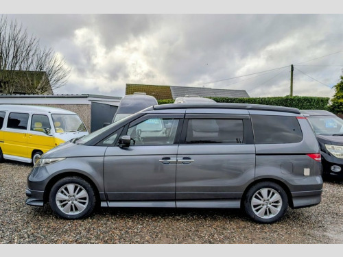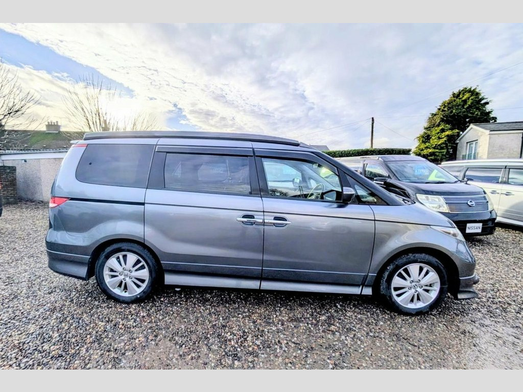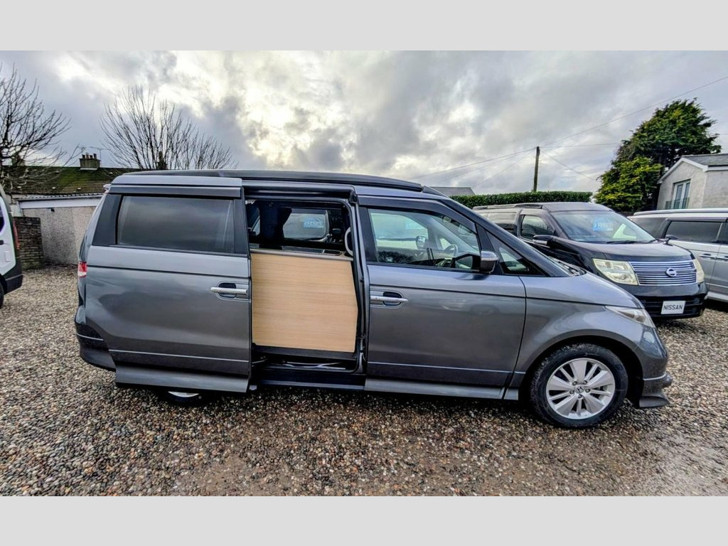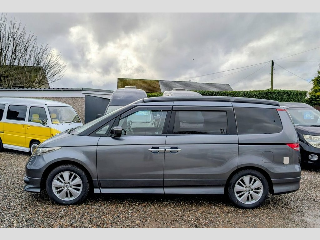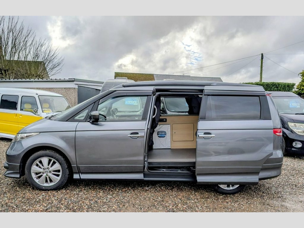 Are you looking for the perfect campervan for your next adventure? Replace your car today with this Honda Elysion converted campervan. Its ready to hit the road and make unforgettable memories. Whether you're day to day driving, planning a weekend getaway or a cross-country journey, this well-equipped vehicle will provide the comfort and convenience you need. With Honda's reputation for engineering excellence, the Elysion offers a smooth drive and handles much like a car making it an ideal daily driver. Its spacious interior, thoughtfully redesigned in a campervan conversion, provides a cozy living space with essential amenities including a foldable bed, compact kitchen, and storage compartments. Unlike larger motorhomes, the Elysion is compact enough to navigate urban environments while still delivering the freedom to explore remote destinations. Awnings, cycle carrier towbars or other accessories can be added, please contact us for details. Pop Top Roof, Sleeps 4, Seats 4, Passenger Swivel Seat, Kitchen area with fridge, a sink and 2 b, Built in Cupboards and clever storage so, Toilet Facilities: Port Potti Storage Cu, Finished Wood Surfaces, LED Lighting, 12v Leisure Battery System, 240v Mains Electric Hook Up, Gas Box, Freshwater System, Curtains, Pop Up Table, Silver Screens, Air Conditioning, Alloy Wheels, Tinted windows, Twin Sliding Doors, Rear Tailgate Door