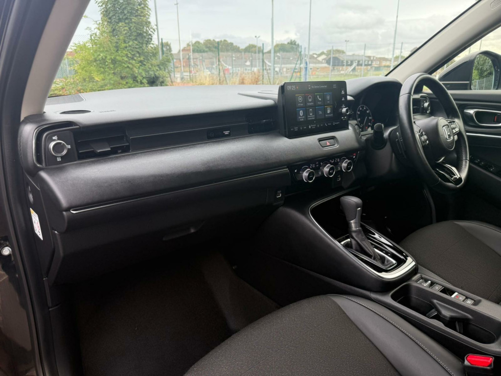 With only one previous owner, this 2023 Honda HR-V 1.5L Petrol Hybrid is a smart choice. As a Euro 6 compliant model in Advance trim, this HR-V h i-MMD Advance offers a blend of efficiency and modern features. Enjoy the comfort of heated front seats, and benefit from front and rear parking sensors that make navigating tight spots a breeze. The inclusion of Blind Spot Information with Cross Traffic Monitor enhances safety, while Wireless Apple CarPlay keeps you connected on the go. Adaptive Cruise Control makes long journeys more relaxing.This HR-V stands out with its fuel economy of 52 mpg, meaning fewer trips to the petrol station compared to similar vehicles. It also boasts low CO2 emissions, making it a more environmentally conscious choice.. 18in Alloy Wheels - Black Cut, 2x USB Rear, 3 Mode Drive System - Sport-Normal-Eco, ABS - Anti Lock Braking System, Accessory Socket - Front, Adjustable Speed Limiter, Agile Handle Assist, Air Conditioning - Rear Vent, Airbag - Driver SRS - Single Stage Inflation, Airbag - Front Driver and Passenger, Airbag - Front Side, Airbag - Passenger Cut Off Switch, Airbag - Passenger SRS, Airbag - Side Curtain - Front and Rear, Ambient Light - Roof, Auto Dimming Rear View Mirror, Auto Wipers, Automatic Climate Control - Dual Zone, Automatic Headlights, BA - Brake Assist, Blind Spot Information including Cross Traffic Monitor, Bluetooth Hands Free Telephone - HFT, Body Colour Grille, Brake Hold, Cargo Net Hook, Collision Mitigation Braking System - CMBS, Collision Mitigation Throttle Control, Courtesy Light, Cruise Control Adaptive - ACC, Daytime Running Lights - LED, Deflation Warning System - DWS, Digital Audio Broadcast - DAB, Door Handles - Body Coloured, Door Mirrors - Body Coloured, Door Mirrors - Exterior Mirror Tilt for Reverse, Driver Seat Manual Height Adjustment, Driver and Front Passenger Seat Armrest, Drivers Seat Back Pocket, EBD - Electronic Brakeforce Distribution, Electric Power Steering - EPS, Electric Power Steering with Variable Ratio, Electric Windows - Front and Rear, Electrically Folding Door Mirrors, Electronic Parking Brake with Automatic Brake Hold, Emergency Stop Signal, Flat Tyre Solution Temper - Tyre Repair Kit, Forward Collision Warning - FCW, Front Fog Lights - LED, Front Seats - Heated, Front Windshield De-icer - Wipers Area, Headlights - Auto On-Off Timer - Coming-Leaving Home Function, High Beam Support System - HSS, Hill Descent Control - HDC, Hill Start Assist - HSA, Honda CONNECT with Navigation, ISOFIX Fix Points - I-Size, Immobiliser System, Intelligent Speed Limiter, Interior Panels - Silver, Key Fob Operation includes Mirrors and Windows, LED Front Turn Lights with Sequential, LED Headlights, LED Rear Lights, Lane Keep Assist System, Low Speed Brake Function, Low Speed Following, Luggage Floor Box, MID - Multi Info Display, Magic Seats, Map Light - Front, Meter Illumination, Normal Pedals, Paddle Shift, Parking Sensors - Front x4 and Rear x4, Passenger Seat Back Pocket, Power Tailgate - Handsfree with Walkaway Close, Rear Bench Split - 60-40, Rear Light Units - Red and Clear, Rear Reading Light, Rear Seat Centre Armrest, Rear View Camera, Remote Central Locking with 2 Keys, Road Departure Mitigation, Security Alarm System, Selectable Door Unlock, Shark Fin Antenna, Silver Interior Door Handles, Speaker - Front Tweeter, Speakers x4, Spoiler, Steering Wheel - Heated, Steering Wheel - Leather, Steering Wheel - Remote Audio Controls, Steering Wheel - Tilt and Telescopic, Sunvisor Vanity Mirrors Illumination, Super Locking, Tonneau Cover, Traffic Sign Recognition - TSR, Trunk Light, USB Socket, USB Socket - Charge Only, VSA - Vehicle Stability Assist, Whiplash Lessening Front Headrests, Window Garnish - High Gloss, Wireless Apple Carplay, e-HEV Emblem.