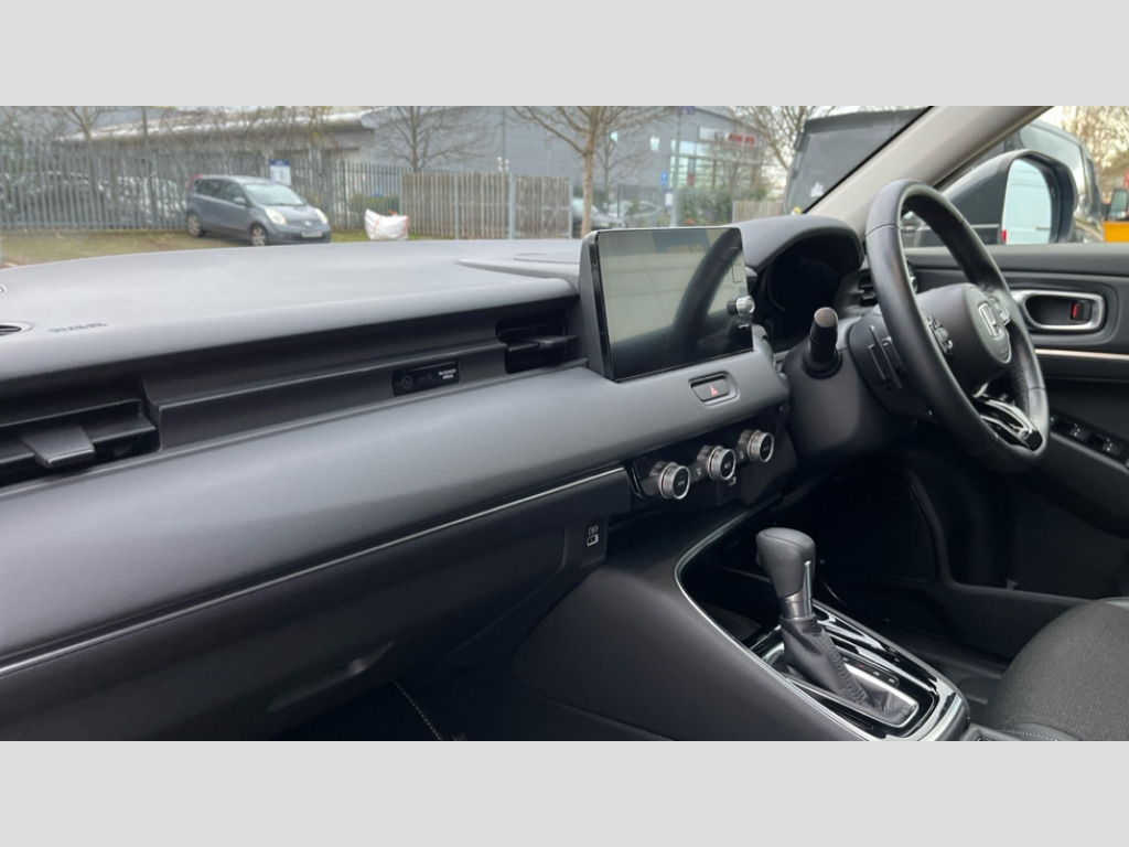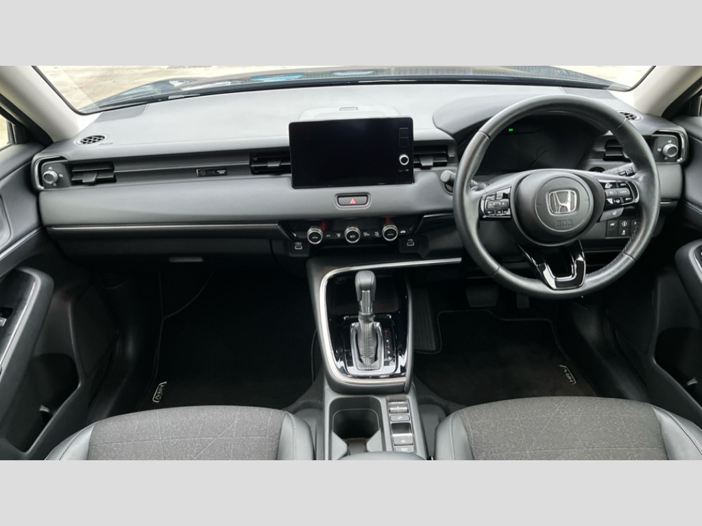 Honda HR-V 1.5 eHEV Advance 5dr CVT 7" TFT instrument cluster, Adaptive cruise control, Adjustable speed limiter, Agile handling assist, BLIS (Blind Spot Information System) with Cross Traffic Monitor, Bluetooth hands free telephone connection, Drive modes select (Eco, normal and sport), eCall emergency system, Electric power steering, Emergency stop signalling system, Forward collision warning, Front parking sensors, Handsfree power tailgate with walkaway close, Honda CONNECT with navigation, 9" touchscreen, AM/FM/DAB/Apple Carplay and android auto, Idle stop, Intelligent speed limiter, Lane departure warning, Lane keep assist, Low speed following, Multi info display, Power meter, Rear parking sensors and rear view camera, Road departure mitigation, Tachometer, Traffic sign recognition, WiFi connectivity, Vehicle stability assist, 'Shark fin' mobile antenna, 2 USB sockets in rear, 2x USB Front socket (1 data & 1 charge), 4 speakers + 2 tweeters, Steering wheel mounted remote controls, Auto dimming rear view mirror, Auto folding door mirrors, Auto high beam, Automatic coming home lighting, Automatic headlights, Automatic rain sensing wipers, Body colour bumpers, Body colour tailgate spoiler, Body coloured door handles, Electric front and rear windows, Electrically adjustable and heated door mirrors, Exclusive styling in lower bumper black,Fog garnish paint emblem gray black lower door garnish with silver accent,Bumper skid garnish sharp silver, Front sequential turn, Front wiper de-icer, Headlight washers, Heated front windscreen, Heated rear window, High gloss side window surrounds, High level third brake light, LED daytime running lights, LED front fog lights, LED headlamps, Manual headlight levelling, Rear side wing doors, Rear wiper, Red and clean lens LED rear lights, Retractable/reverse auto tilt door mirrors, Variable front intermittent wipers, Windscreen shadeband, 3 rear headrests, 3 seat bench in 2nd row, 60/40 split folding rear seat, Ambient interior lighting, Cargo net hooks, Courtesy lights, Driver seat back pocket, Driver's seat height adjustment, Driver/passenger sunvisors with illuminated vanity mirrors, Dual automatic air conditioning, Front and rear map reading lights, Front head restraints, Front seat armrests, Heated front seats, Heated steering wheel, Isofix points, Luggage area under floor storage box, Magic seat flexibility system, Manual height/reach adjust steering wheel, Meter illumination light, Paddle shift controls, Passenger seat back pocket, Rear centre armrest, Rear ventilation, Silver interior door handles, Silver interior panels, Single front passenger seat, Smooth leather steering wheel, Tonneau cover, Trunk light, 3x3 point rear seatbelts, ABS+EBD+Brake assist, Anti-whiplash front headrests, Auto hold function, Collision mitigation braking system, Collision mitigation throttle control, Deflation detection system, Dual front SRS airbags, Electric child locks, Electronic parking brake, Front and rear curtain airbags, Front and rear safety belts with Emergency Locking Retractor, Front side airbags, Hill descent control, Hill start assist, Low speed safety system, Paddle deceleration control, Passenger SRS airbag cut-off device, Regenerative braking system, Door deadlocks, Honda super locks, Immobiliser, Keyless smart entry with push button start, Mirrors and windows key fob operation, Remote central locking with 2 remote folding keys, Security alarm, 18" Black cut alloy wheels, Tyre repair kit