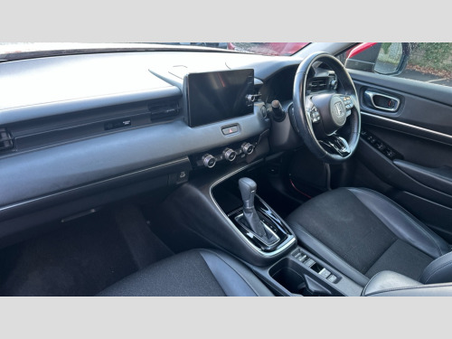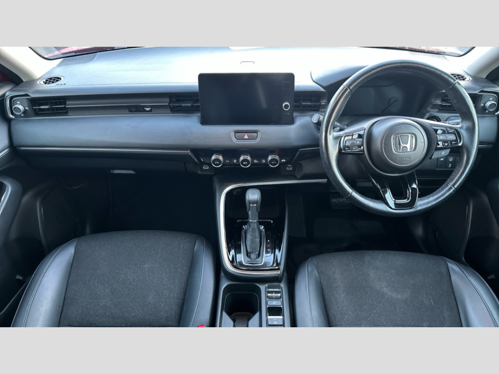Honda HR-V 1.5 eHEV Advance 5dr CVT 7" TFT instrument cluster, Adjustable speed limiter, Agile handling assist, BLIS (Blind Spot Information System) with Cross Traffic Monitor, Bluetooth hands free telephone connection, Drive modes select (Eco, normal and sport), eCall emergency system, Electric power steering, Emergency stop signalling system, Forward collision warning, Handsfree power tailgate with walkaway close, Honda CONNECT with navigation, 9" touchscreen, AM/FM/DAB/Apple Carplay and android auto, Honda sensing with blind spot information, adaptive cruise control and lane keep assist, Idle stop, Intelligent speed limiter, Low speed following, Rear parking sensors and rear view camera, Tachometer, Traffic sign recognition, WiFi connectivity, Vehicle stability assist, 'Shark fin' mobile antenna, 2 USB sockets in rear, 2x USB Front socket (1 data & 1 charge), 4 speakers, Steering wheel mounted remote controls, Auto dimming rear view mirror, Auto high beam, Automatic coming home lighting, Automatic headlights, Automatic rain sensing wipers, Body colour bumpers, Body colour tailgate spoiler, Body coloured door handles, Electric front and rear windows, Electrically adjustable and heated door mirrors, Front sequential turn, Front wiper de-icer, Headlight washers, Heated front windscreen, Heated rear window, High gloss side window surrounds, High level third brake light, LED daytime running lights, LED front fog lights, LED headlamps, Manual headlight levelling, Rear side wing doors, Rear wiper, Retractable/reverse auto tilt door mirrors, Variable front intermittent wipers, Windscreen shadeband, 3 rear headrests, 3 seat bench in 2nd row, 60/40 split folding rear seat, Ambient interior lighting, Cargo net hooks, Courtesy lights, Driver seat back pocket, Driver's seat height adjustment, Driver/passenger sunvisors with illuminated vanity mirrors, Dual automatic air conditioning, Front and rear map reading lights, Front head restraints, Front seat armrests, Heated front seats, Heated steering wheel, Isofix points, Luggage area under floor storage box, Magic seat flexibility system, Manual height/reach adjust steering wheel, Paddle shift controls, Passenger seat back pocket, Rear centre armrest, Rear ventilation, Single front passenger seat, Smooth leather steering wheel, Tonneau cover, Trunk light, 3x3 point rear seatbelts, ABS+EBD+Brake assist, Anti-whiplash front headrests, Collision mitigation braking system, Collision mitigation throttle control, Deflation detection system, Dual front SRS airbags, Electric child locks, Electronic parking brake, Front and rear curtain airbags, Front and rear safety belts with Emergency Locking Retractor, Front side airbags, Hill descent control, Hill start assist, Low speed safety system, Passenger SRS airbag cut-off device, Regenerative braking system, Door deadlocks, Immobiliser, Keyless smart entry with push button start, Mirrors and windows key fob operation, Remote central locking with 2 remote folding keys, Security alarm, 18" Black cut alloy wheels, Tyre repair kit