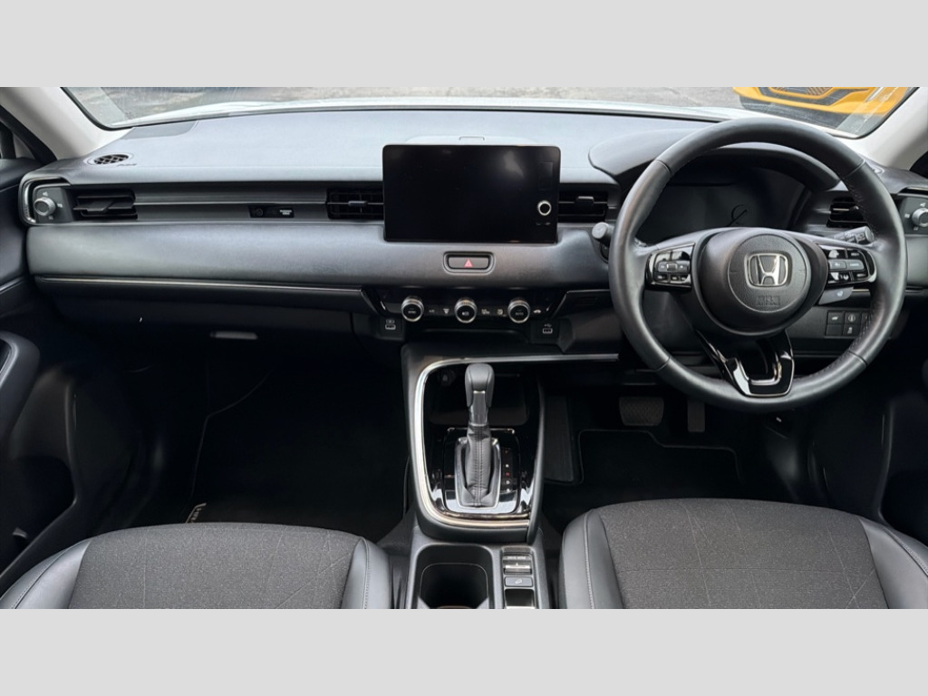 Honda HR-V 1.5 eHEV Advance 5dr CVT 7" TFT instrument cluster, Adaptive cruise control, Adjustable speed limiter, Agile handling assist, BLIS (Blind Spot Information System) with Cross Traffic Monitor, Bluetooth hands free telephone connection, Drive modes select (Eco, normal and sport), eCall emergency system, Electric power steering, Emergency stop signalling system, Forward collision warning, Front parking sensors, Handsfree power tailgate with walkaway close, Honda CONNECT with navigation, 9" touchscreen, AM/FM/DAB/Apple Carplay and android auto, Idle stop, Intelligent speed limiter, Lane departure warning, Lane keep assist, Low speed following, Multi info display, Power meter, Rear parking sensors and rear view camera, Road departure mitigation, Tachometer, Traffic sign recognition, WiFi connectivity, Vehicle stability assist, 'Shark fin' mobile antenna, 2 USB sockets in rear, 2x USB Front socket (1 data & 1 charge), 4 speakers + 2 tweeters, Steering wheel mounted remote controls, Auto dimming rear view mirror, Auto folding door mirrors, Auto high beam, Automatic coming home lighting, Automatic headlights, Automatic rain sensing wipers, Body colour bumpers, Body colour tailgate spoiler, Body coloured door handles, Body coloured door mirrors, Body coloured front grille, Electric front and rear windows, Electrically adjustable and heated door mirrors, Exclusive styling in lower bumper black,Fog garnish paint emblem gray black lower door garnish with silver accent,Bumper skid garnish sharp silver, Front sequential turn, Front wiper de-icer, Headlight washers, Heated front windscreen, Heated rear window, High gloss side window surrounds, High level third brake light, LED daytime running lights, LED front fog lights, LED headlamps, Manual headlight levelling, Rear side wing doors, Rear wiper, Red and clean lens LED rear lights, Retractable/reverse auto tilt door mirrors, Variable front intermittent wipers, Windscreen shadeband, 3 rear headrests, 3 seat bench in 2nd row, 60/40 split folding rear seat, Ambient interior lighting, Cargo net hooks, Courtesy lights, Driver seat back pocket, Driver's seat height adjustment, Driver/passenger sunvisors with illuminated vanity mirrors, Dual automatic air conditioning, Front and rear map reading lights, Front head restraints, Front seat armrests, Heated front seats, Heated steering wheel, Isofix points, Luggage area under floor storage box, Magic seat flexibility system, Manual height/reach adjust steering wheel, Meter illumination light, Paddle shift controls, Passenger seat back pocket, Rear centre armrest, Rear ventilation, Silver interior door handles, Silver interior panels, Single front passenger seat, Smooth leather steering wheel, Tonneau cover, Trunk light, 3x3 point rear seatbelts, ABS+EBD+Brake assist, Anti-whiplash front headrests, Auto hold function, Collision mitigation braking system, Collision mitigation throttle control, Deflation detection system, Dual front SRS airbags, Electric child locks, Electronic parking brake, Front and rear curtain airbags, Front and rear safety belts with Emergency Locking Retractor, Front side airbags, Hill descent control, Hill start assist, Low speed safety system, Paddle deceleration control, Passenger SRS airbag cut-off device, Regenerative braking system, Door deadlocks, Honda super locks, Immobiliser, Keyless smart entry with push button start, Mirrors and windows key fob operation, Remote central locking with 2 remote folding keys, Security alarm, 18" Black cut alloy wheels, Tyre repair kit