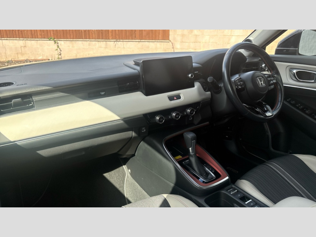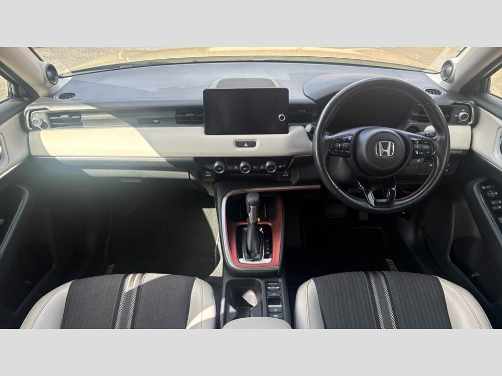 Honda HR-V 1.5 eHEV Advance Style 5dr CVT 7" TFT instrument cluster, Adjustable speed limiter, Agile handling assist, BLIS (Blind Spot Information System) with Cross Traffic Monitor, Bluetooth hands free telephone connection, Drive modes select (Eco, normal and sport), eCall emergency system, Electric power steering, Emergency stop signalling system, Forward collision warning, Handsfree power tailgate with walkaway close, Honda CONNECT with navigation, 9" touchscreen, AM/FM/DAB/Apple Carplay and android auto, Honda sensing with blind spot information, adaptive cruise control and lane keep assist, Idle stop, Intelligent speed limiter, Low speed following, Rear parking sensors and rear view camera, Tachometer, Traffic sign recognition, WiFi connectivity, Wireless charger, Vehicle stability assist, 'Shark fin' mobile antenna, 2 USB sockets in rear, 2x USB Front socket (1 data & 1 charge), Premium audio system, Steering wheel mounted remote controls, Auto dimming rear view mirror, Auto headlight levelling, Auto high beam, Automatic coming home lighting, Automatic headlights, Automatic rain sensing wipers, Body colour bumpers, Body colour tailgate spoiler, Body coloured door handles, Electric front and rear windows, Electrically adjustable and heated door mirrors, Exterior and interior unique colour scheme (orange, white & blue accents), Front sequential turn, Front wiper de-icer, Headlight washers, Heated front windscreen, Heated rear window, High gloss side window surrounds, High level third brake light, LED cornering lights, LED daytime running lights, LED front fog lights, LED headlamps, Rear side wing doors, Rear wiper, Retractable/reverse auto tilt door mirrors, Roof rails, Smoked tail lights, Two tone roof, Variable front intermittent wipers, Windscreen shadeband, 3 rear headrests, 3 seat bench in 2nd row, 60/40 split folding rear seat, Ambient interior lighting, Cargo net hooks, Courtesy lights, Driver seat back pocket, Driver's seat height adjustment, Driver/passenger sunvisors with illuminated vanity mirrors, Dual automatic air conditioning, Front and rear map reading lights, Front head restraints, Front seat armrests, Heated front seats, Heated steering wheel, Isofix points, Luggage area under floor storage box, Magic seat flexibility system, Manual height/reach adjust steering wheel, Paddle shift controls, Passenger seat back pocket, Rear centre armrest, Rear ventilation, Single front passenger seat, Smooth leather steering wheel, Tonneau cover, Trunk cargo band, Trunk light, 3x3 point rear seatbelts, ABS+EBD+Brake assist, Anti-whiplash front headrests, Collision mitigation braking system, Collision mitigation throttle control, Deflation detection system, Dual front SRS airbags, Electric child locks, Electronic parking brake, Front and rear curtain airbags, Front and rear safety belts with Emergency Locking Retractor, Front side airbags, Hill descent control, Hill start assist, Low speed safety system, Passenger SRS airbag cut-off device, Regenerative braking system, Door deadlocks, Immobiliser, Keyless smart entry with push button start, Mirrors and windows key fob operation, Remote central locking with 2 remote folding keys, Security alarm, 18" Black cut alloy wheels, Tyre repair kit