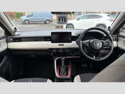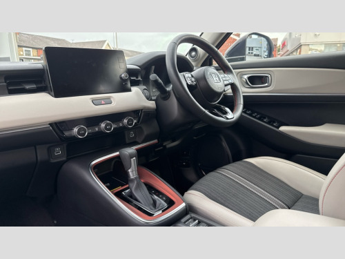 Honda HR-V 1.5 eHEV Advance Style 5dr CVT 7" TFT instrument cluster, Adaptive cruise control, Adjustable speed limiter, Agile handling assist, BLIS (Blind Spot Information System) with Cross Traffic Monitor, Bluetooth hands free telephone connection, Drive modes select (Eco, normal and sport), eCall emergency system, Electric power steering, Emergency stop signalling system, Forward collision warning, Front parking sensors, Handsfree power tailgate with walkaway close, Honda CONNECT with navigation, 9" touchscreen, AM/FM/DAB/Apple Carplay and android auto, Idle stop, Intelligent speed limiter, Lane departure warning, Lane keep assist, Low speed following, Multi info display, Power meter, Rear parking sensors and rear view camera, Road departure mitigation, Tachometer, Traffic sign recognition, WiFi connectivity, Wireless charger, Vehicle stability assist, 'Shark fin' mobile antenna, 2 USB sockets in rear, 2x USB Front socket (1 data & 1 charge), 4 speaker + 4 tweeters, Steering wheel mounted remote controls, Auto dimming rear view mirror, Auto folding door mirrors, Auto headlight levelling, Auto high beam, Automatic coming home lighting, Automatic headlights, Automatic rain sensing wipers, Body colour bumpers, Body colour tailgate spoiler, Body coloured door handles, Electric front and rear windows, Electrically adjustable and heated door mirrors, Exclusive styling in black lower bumper,lower door garnish with orange accent,Fog garnish paint pewter gray,Bumper skid garnish sharp silver, Exclusive Styling in orange front console garnish, orange stiches on steering wheel and seats, Exterior and interior unique colour scheme (orange, white & blue accents), Front sequential turn, Front wiper de-icer, Headlight washers, Heated front windscreen, Heated rear window, High gloss side window surrounds, High level third brake light, LED cornering lights, LED daytime running lights, LED front fog lights, LED headlamps, Rear side wing doors, Rear wiper, Retractable/reverse auto tilt door mirrors, Roof rails, Smoke and clean lens LED rear lights, Trio colour ornament on grille, Two tone roof, Variable front intermittent wipers, Windscreen shadeband, 3 rear headrests, 3 seat bench in 2nd row, 60/40 split folding rear seat, Ambient interior lighting, Cargo net hooks, Combi synthetic leather + fabric upholstery with accent, Courtesy lights, Driver seat back pocket, Driver's seat height adjustment, Driver/passenger sunvisors with illuminated vanity mirrors, Dual automatic air conditioning, Front and rear map reading lights, Front head restraints, Front seat armrests, Heated front seats, Heated steering wheel, Isofix points, Luggage area under floor storage box, Magic seat flexibility system, Manual height/reach adjust steering wheel, Meter illumination light, Paddle shift controls, Passenger seat back pocket, Rear centre armrest, Rear ventilation, Silver interior door handles, Silver interior panels, Single front passenger seat, Smooth leather steering wheel, Tonneau cover, Trunk cargo band, Trunk light, 3x3 point rear seatbelts, ABS+EBD+Brake assist, Anti-whiplash front headrests, Auto hold function, Collision mitigation braking system, Collision mitigation throttle control, Deflation detection system, Dual front SRS airbags, Electric child locks, Electronic parking brake, Front and rear curtain airbags, Front and rear safety belts with Emergency Locking Retractor, Front side airbags, Hill descent control, Hill start assist, Low speed safety system, Paddle deceleration control, Passenger SRS airbag cut-off device, Regenerative braking system, Door deadlocks, Honda super locks, Immobiliser, Keyless smart entry with push button start, Mirrors and windows key fob operation, Remote central locking with 2 remote folding keys, Security alarm, Tyre repair kit