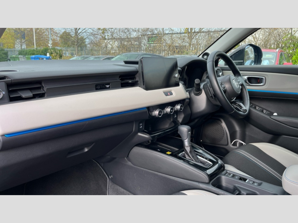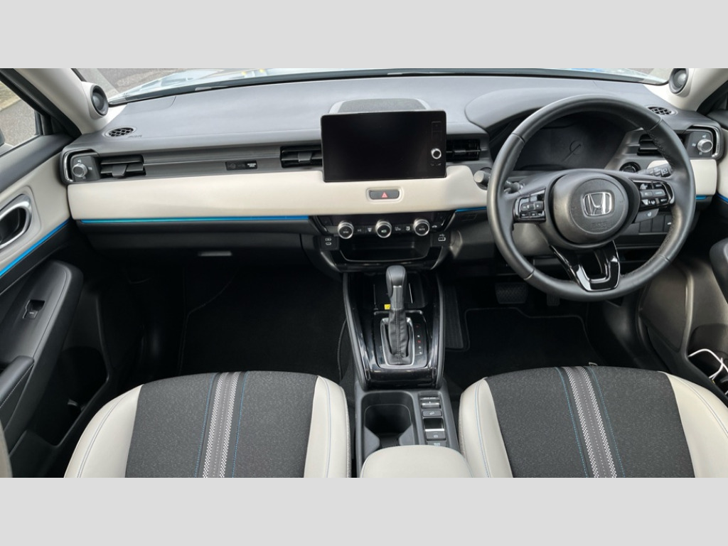 Honda HR-V 1.5 eHEV Advance Style 5dr CVT 7" TFT instrument cluster, Adaptive cruise control, Adjustable speed limiter, Agile handling assist, BLIS (Blind Spot Information System) with Cross Traffic Monitor, Bluetooth hands free telephone connection, Drive modes select (Eco, normal and sport), Driver attention monitoring system, eCall emergency system, Econ mode, Emergency stop signalling system, Forward collision warning, Front parking sensors, Handsfree power tailgate with walkaway close, Honda CONNECT with Navigation 9" touchscreen, AM/FM/DAB, Apple Carplay and Android Auto, live traffic info, Idle stop, Intelligent speed limiter, Lane departure warning, Lane keep assist, Low speed following, Multi info display, Multi view camera, Power meter, Rear parking sensors, Road departure mitigation, Tachometer, Traffic jam assist, Traffic sign recognition, Variable gear ratio electric power steering, WiFi connectivity, Wireless apple carplay, Wireless charger, Vehicle stability assist, 10 speakers includes premium audio, centre speaker, front tweeter and subwoofer, 2 USB sockets in rear, 2x USB Front socket (1 data & 1 charge), Steering wheel mounted remote controls, Adaptive driving beam, Auto dimming rear view mirror, Auto headlight adjuster, Automatic headlights, Automatic headlights with on/off timer, Coming/leaving home function, Automatic rain sensing wipers, Body colour bumpers, Body colour tailgate spoiler, Body coloured door handles, eHEV emblem, Electric front and rear windows, Electrically adjustable, heated and folding door mirrors, Exclusive styling in black lower bumper,fog garnish and bumper skid garnish, black lower door garnish with blue accent/trio colour oranment on grille, Exclusive styling in Piano black front console garnish, blue stripe garnish on door and instrument panel, blue stiches on seats, Exterior mirror tilt for reverse, Headlight washers, Heated front windscreen, Heated rear window, High gloss window garnish, LED 3rd brake light, LED cornering lights, LED daytime running lights, LED front fog lights, LED front sequential turn, LED headlamps, Light colour roof lining, Privacy glass, Rear side wing doors, Rear wiper, Red and clean lens LED rear lights, Roof rails, Shark fin antenna, Two tone roof, Variable front intermittent wipers, Windscreen shadeband, 3 rear headrests, 3 seat bench in 2nd row, 60/40 split folding rear seat, Accessory sockets in front, Ambient lighting on roof, Blue interior panels, Cargo net hooks, Courtesy lights, Driver seat back pocket, Driver's seat manual height adjust, Driver/passenger sunvisors with illuminated vanity mirrors, Dual automatic air conditioning, Front head restraints, Front map lights, Front seat armrests, Genuine leather shift knob, Genuine leather steering wheel, Heated front seats, Heated steering wheel, Isofix points, Luggage floor box, Magic seats, Meter illumination light, Normal pedals, Paddle shift controls, Passenger seat back pocket, Rear centre armrest, Rear reading lights, Rear ventilation, Silver interior door handles, Single front passenger seat, Synthetic leather and fabric upholstery, Tilt/telescopic adjustable steering wheel, Tonneau cover, Trunk light, 3x3 point rear seatbelts, ABS+EBD+Brake assist, Automatic brake hold, Collision mitigation braking system, Collision mitigation throttle control, Deflation detection system, Driver and front passenger airbags, Driver SRS airbag (single stage inflation), Electric child locks, Electronic parking brake, Front and rear curtain airbags, Front and rear safety belts with Emergency Locking Retractor, Front side airbags, Hill descent control, Hill start assist, Low speed brake system, Paddle deceleration control, Passenger SRS airbag cut-off device, Regenerative braking system, Whiplash lessening front headrests, Immobiliser, Mirrors and windows key fob operation, Remote central locking with 2 remote folding keys, Security alarm, Smart entry and start system, Superlocking, Tyre repair kit