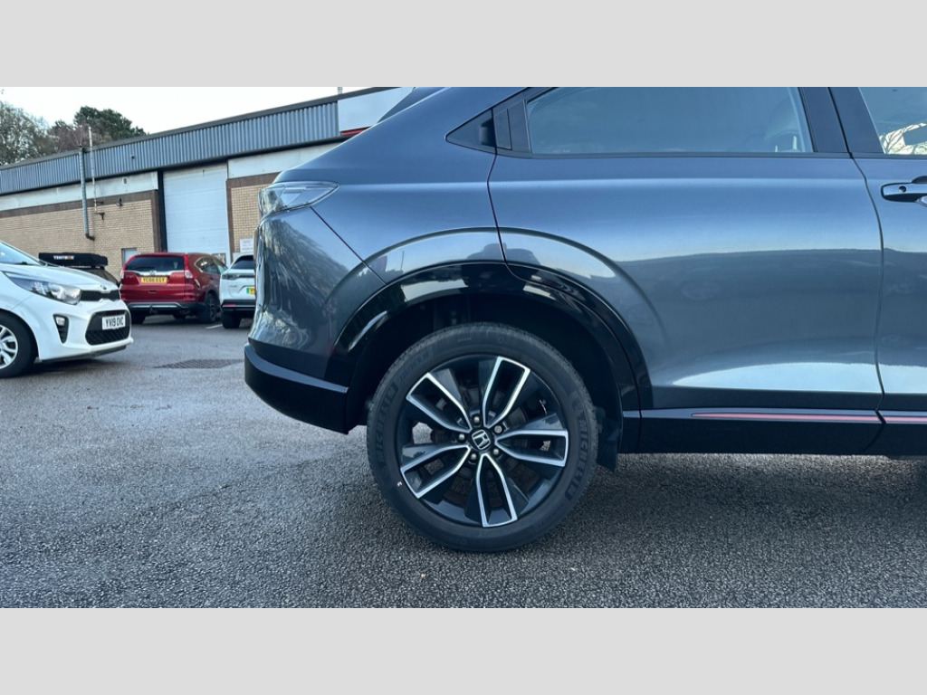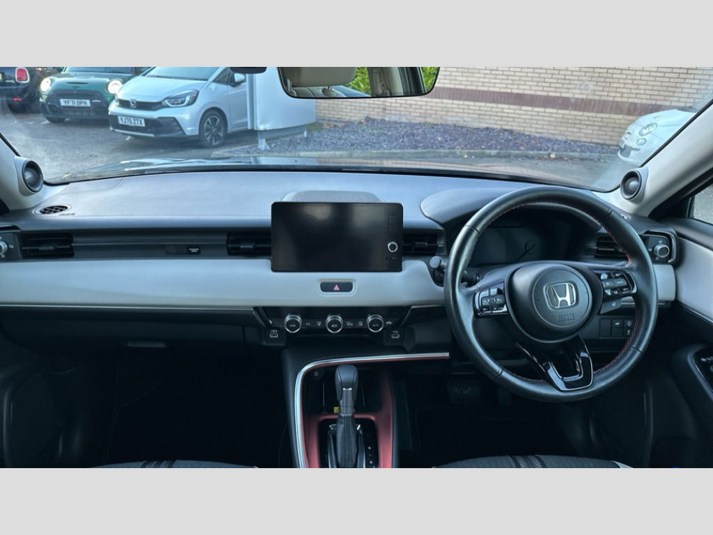 Honda HR-V 1.5 eHEV Advance Style 5dr CVT 7" TFT instrument cluster, Adjustable speed limiter, Agile handling assist, BLIS (Blind Spot Information System) with Cross Traffic Monitor, Bluetooth hands free telephone connection, Drive modes select (Eco, normal and sport), eCall emergency system, Electric power steering, Emergency stop signalling system, Forward collision warning, Handsfree power tailgate with walkaway close, Honda CONNECT with navigation, 9" touchscreen, AM/FM/DAB/Apple Carplay and android auto, Honda sensing with blind spot information, adaptive cruise control and lane keep assist, Idle stop, Intelligent speed limiter, Low speed following, Rear parking sensors and rear view camera, Tachometer, Traffic sign recognition, WiFi connectivity, Wireless charger, Vehicle stability assist, 'Shark fin' mobile antenna, 2 USB sockets in rear, 2x USB Front socket (1 data & 1 charge), Premium audio system, Steering wheel mounted remote controls, Auto dimming rear view mirror, Auto headlight levelling, Auto high beam, Automatic coming home lighting, Automatic headlights, Automatic rain sensing wipers, Body colour bumpers, Body colour tailgate spoiler, Body coloured door handles, Electric front and rear windows, Electrically adjustable and heated door mirrors, Exterior and interior unique colour scheme (orange, white & blue accents), Front sequential turn, Front wiper de-icer, Headlight washers, Heated front windscreen, Heated rear window, High gloss side window surrounds, High level third brake light, LED cornering lights, LED daytime running lights, LED front fog lights, LED headlamps, Rear side wing doors, Rear wiper, Retractable/reverse auto tilt door mirrors, Roof rails, Smoked tail lights, Two tone roof, Variable front intermittent wipers, Windscreen shadeband, 3 rear headrests, 3 seat bench in 2nd row, 60/40 split folding rear seat, Ambient interior lighting, Cargo net hooks, Courtesy lights, Driver seat back pocket, Driver's seat height adjustment, Driver/passenger sunvisors with illuminated vanity mirrors, Dual automatic air conditioning, Front and rear map reading lights, Front head restraints, Front seat armrests, Heated front seats, Heated steering wheel, Isofix points, Luggage area under floor storage box, Magic seat flexibility system, Manual height/reach adjust steering wheel, Paddle shift controls, Passenger seat back pocket, Rear centre armrest, Rear ventilation, Single front passenger seat, Smooth leather steering wheel, Tonneau cover, Trunk cargo band, Trunk light, 3x3 point rear seatbelts, ABS+EBD+Brake assist, Anti-whiplash front headrests, Collision mitigation braking system, Collision mitigation throttle control, Deflation detection system, Dual front SRS airbags, Electric child locks, Electronic parking brake, Front and rear curtain airbags, Front and rear safety belts with Emergency Locking Retractor, Front side airbags, Hill descent control, Hill start assist, Low speed safety system, Passenger SRS airbag cut-off device, Regenerative braking system, Door deadlocks, Immobiliser, Keyless smart entry with push button start, Mirrors and windows key fob operation, Remote central locking with 2 remote folding keys, Security alarm, 18" Black cut alloy wheels, Tyre repair kit