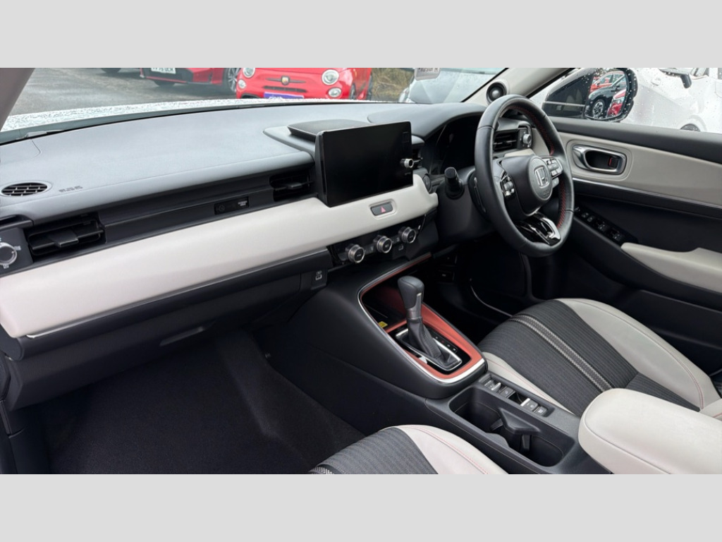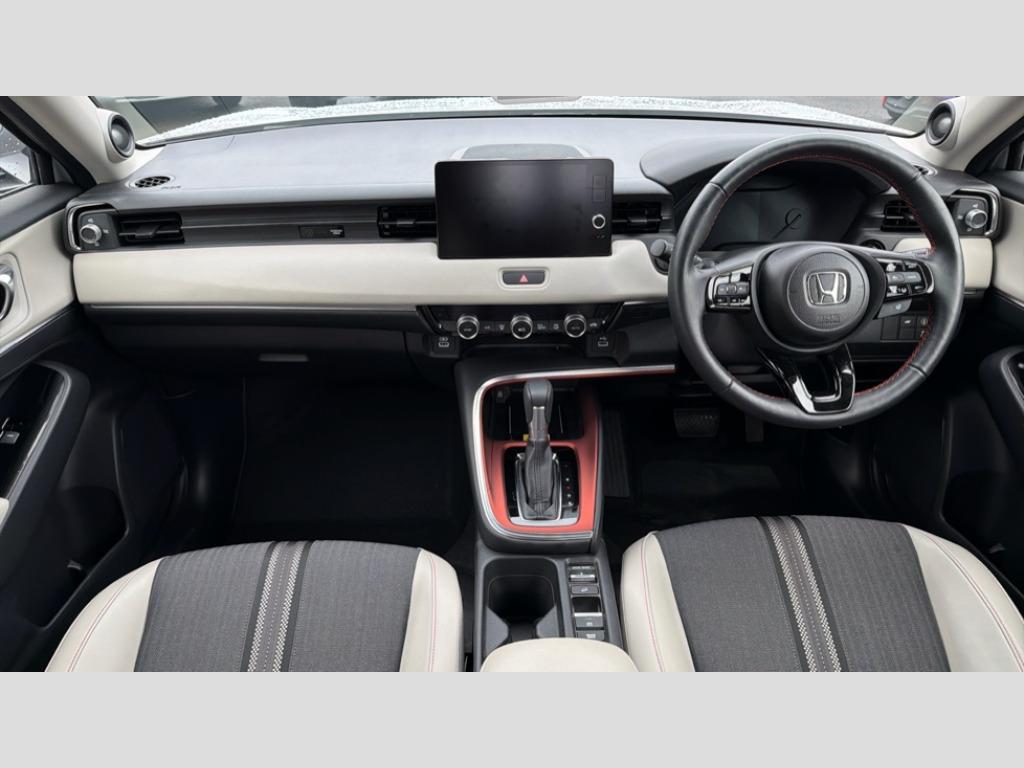 Honda HR-V 1.5 eHEV Advance Style 5dr CVT 7" TFT instrument cluster, Adaptive cruise control, Adjustable speed limiter, Agile handling assist, BLIS (Blind Spot Information System) with Cross Traffic Monitor, Bluetooth hands free telephone connection, Drive modes select (Eco, normal and sport), eCall emergency system, Electric power steering, Emergency stop signalling system, Forward collision warning, Front parking sensors, Handsfree power tailgate with walkaway close, Honda CONNECT with navigation, 9" touchscreen, AM/FM/DAB/Apple Carplay and android auto, Idle stop, Intelligent speed limiter, Lane departure warning, Lane keep assist, Low speed following, Multi info display, Power meter, Rear parking sensors and rear view camera, Road departure mitigation, Tachometer, Traffic sign recognition, WiFi connectivity, Wireless charger, Vehicle stability assist, 'Shark fin' mobile antenna, 2 USB sockets in rear, 2x USB Front socket (1 data & 1 charge), 4 speaker + 4 tweeters, Steering wheel mounted remote controls, Auto dimming rear view mirror, Auto folding door mirrors, Auto headlight levelling, Auto high beam, Automatic coming home lighting, Automatic headlights, Automatic rain sensing wipers, Body colour bumpers, Body colour tailgate spoiler, Body coloured door handles, Electric front and rear windows, Electrically adjustable and heated door mirrors, Exclusive styling in black lower bumper,lower door garnish with orange accent,Fog garnish paint pewter gray,Bumper skid garnish sharp silver, Exclusive Styling in orange front console garnish, orange stiches on steering wheel and seats, Exterior and interior unique colour scheme (orange, white & blue accents), Front sequential turn, Front wiper de-icer, Headlight washers, Heated front windscreen, Heated rear window, High gloss side window surrounds, High level third brake light, LED cornering lights, LED daytime running lights, LED front fog lights, LED headlamps, Rear side wing doors, Rear wiper, Retractable/reverse auto tilt door mirrors, Roof rails, Smoke and clean lens LED rear lights, Trio colour ornament on grille, Two tone roof, Variable front intermittent wipers, Windscreen shadeband, 3 rear headrests, 3 seat bench in 2nd row, 60/40 split folding rear seat, Ambient interior lighting, Cargo net hooks, Combi synthetic leather + fabric upholstery with accent, Courtesy lights, Driver seat back pocket, Driver's seat height adjustment, Driver/passenger sunvisors with illuminated vanity mirrors, Dual automatic air conditioning, Front and rear map reading lights, Front head restraints, Front seat armrests, Heated front seats, Heated steering wheel, Isofix points, Luggage area under floor storage box, Magic seat flexibility system, Manual height/reach adjust steering wheel, Meter illumination light, Paddle shift controls, Passenger seat back pocket, Rear centre armrest, Rear ventilation, Silver interior door handles, Silver interior panels, Single front passenger seat, Smooth leather steering wheel, Tonneau cover, Trunk cargo band, Trunk light, 3x3 point rear seatbelts, ABS+EBD+Brake assist, Anti-whiplash front headrests, Auto hold function, Collision mitigation braking system, Collision mitigation throttle control, Deflation detection system, Dual front SRS airbags, Electric child locks, Electronic parking brake, Front and rear curtain airbags, Front and rear safety belts with Emergency Locking Retractor, Front side airbags, Hill descent control, Hill start assist, Low speed safety system, Paddle deceleration control, Passenger SRS airbag cut-off device, Regenerative braking system, Door deadlocks, Honda super locks, Immobiliser, Keyless smart entry with push button start, Mirrors and windows key fob operation, Remote central locking with 2 remote folding keys, Security alarm, Tyre repair kit