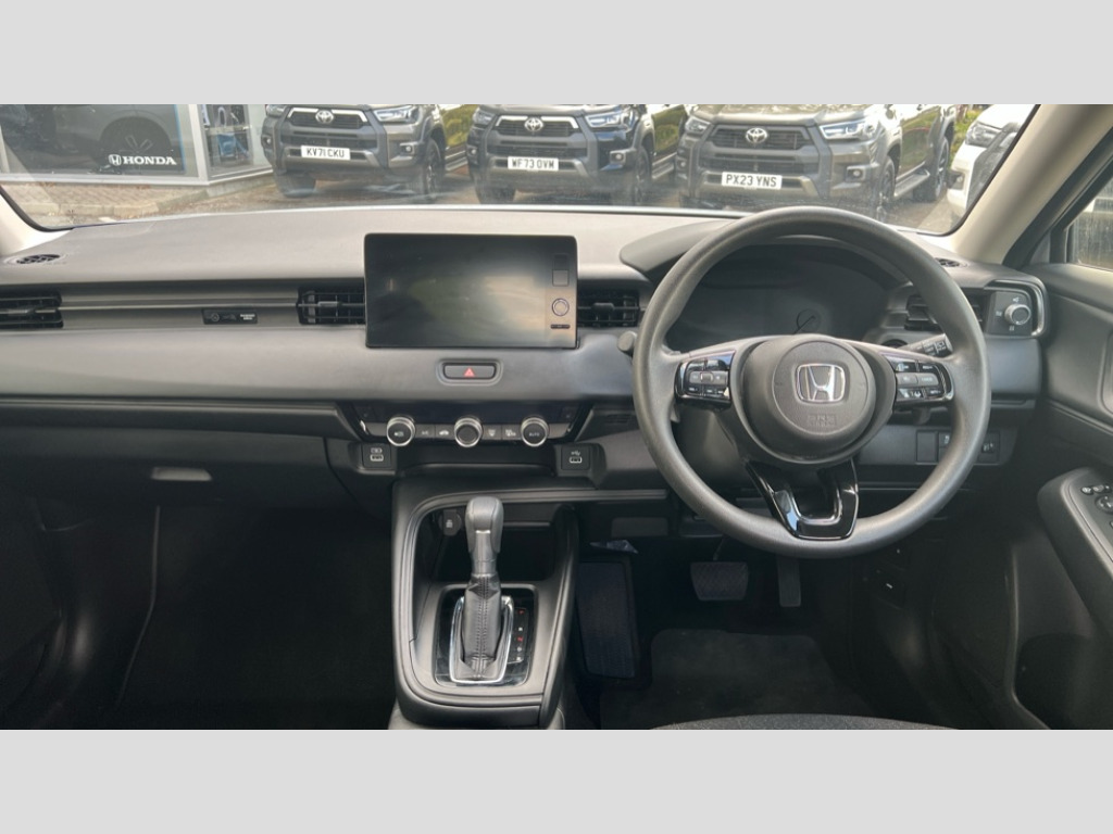 Honda HR-V 1.5 eHEV Elegance 5dr CVT 7" TFT instrument cluster, Adjustable speed limiter, Agile handling assist, Bluetooth hands free telephone connection, Drive modes select (Eco, normal and sport), eCall emergency system, Electric power steering, Emergency stop signalling system, Forward collision warning, Honda CONNECT with navigation, 9" touchscreen, AM/FM/DAB/Apple Carplay and android auto, Honda sensing with blind spot information, adaptive cruise control and lane keep assist, Idle stop, Intelligent speed limiter, Low speed following, Rear parking sensors and rear view camera, Tachometer, Tailgate, Traffic sign recognition, WiFi connectivity, Vehicle stability assist, 'Shark fin' mobile antenna, 2x USB Front socket (1 data & 1 charge), 4 speakers, Steering wheel mounted remote controls, Auto high beam, Automatic coming home lighting, Automatic headlights, Automatic rain sensing wipers, Body colour bumpers, Body colour tailgate spoiler, Body coloured door handles, Electric front and rear windows, Electrically adjustable and heated door mirrors, Front sequential turn, Headlight washers, Heated front windscreen, Heated rear window, High level third brake light, LED daytime running lights, LED headlamps, Manual headlight levelling, Rear side wing doors, Rear wiper, Variable front intermittent wipers, Windscreen shadeband, 3 rear headrests, 3 seat bench in 2nd row, 60/40 split folding rear seat, Ambient interior lighting, Automatic air conditioning, Cargo net hooks, Courtesy lights, Driver seat back pocket, Driver's seat height adjustment, Driver/passenger sunvisors with illuminated vanity mirrors, Front and rear map reading lights, Front head restraints, Front seat armrests, Heated front seats, Isofix points, Luggage area under floor storage box, Magic seat flexibility system, Manual height/reach adjust steering wheel, Paddle shift controls, Rear centre armrest, Rear ventilation, Single front passenger seat, Tonneau cover, Trunk light, 3x3 point rear seatbelts, ABS+EBD+Brake assist, Anti-whiplash front headrests, Collision mitigation braking system, Collision mitigation throttle control, Deflation detection system, Dual front SRS airbags, Electric child locks, Electronic parking brake, Front and rear curtain airbags, Front and rear safety belts with Emergency Locking Retractor, Front side airbags, Hill descent control, Hill start assist, Low speed safety system, Passenger SRS airbag cut-off device, Regenerative braking system, Door deadlocks, Immobiliser, Keyless smart entry with push button start, Mirrors and windows key fob operation, Remote central locking with 2 remote folding keys, Security alarm, 18" Black cut alloy wheels, Tyre repair kit