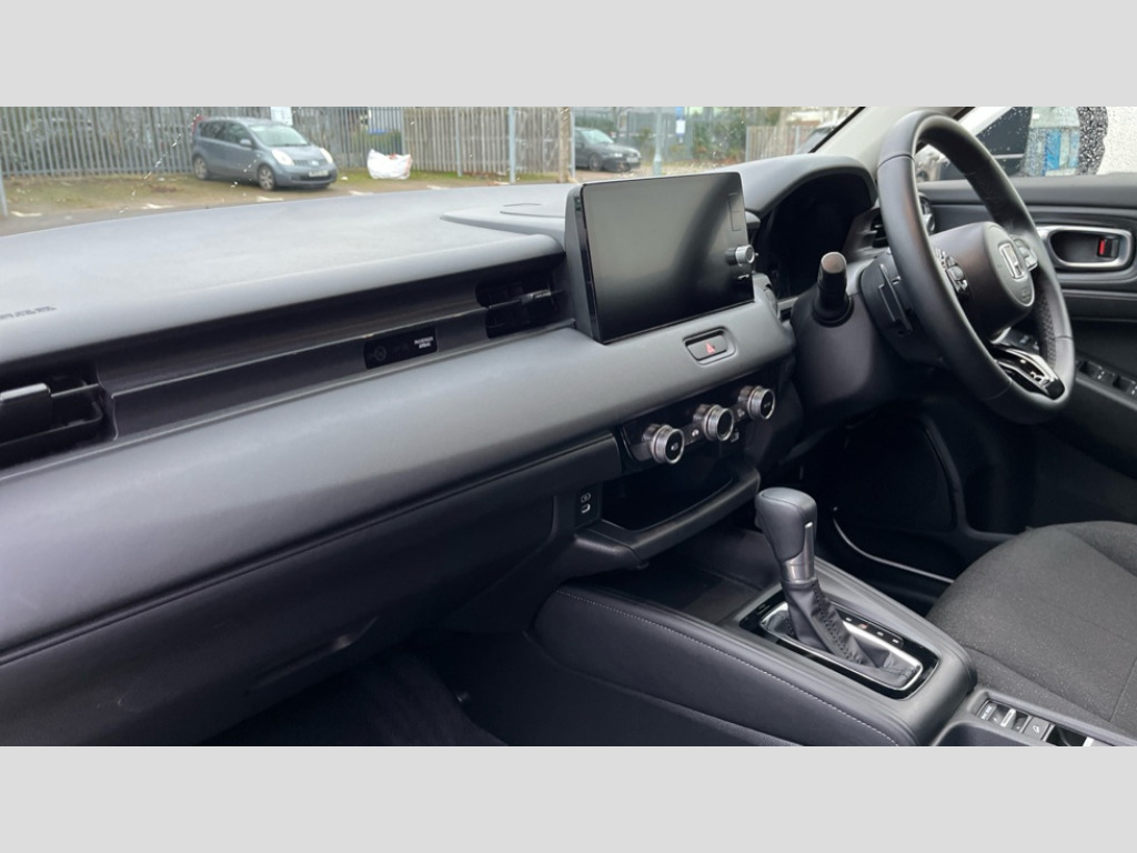 Honda HR-V 1.5 eHEV Elegance 5dr CVT 7" TFT instrument cluster, Adaptive cruise control, Adjustable speed limiter, Agile handling assist, Bluetooth hands free telephone connection, Drive modes select (Eco, normal and sport), Driver attention monitoring system, eCall emergency system, Econ mode, Emergency stop signalling system, Forward collision warning, Front parking sensors, Honda CONNECT with Navigation 9" touchscreen, AM/FM/DAB, Apple Carplay and Android Auto, live traffic info, Idle stop, Intelligent speed limiter, Lane departure warning, Lane keep assist, Low speed following, Multi info display, Power meter, Rear parking sensors, Rear view camera, Road departure mitigation, Tachometer, Traffic jam assist, Traffic sign recognition, Variable gear ratio electric power steering, WiFi connectivity, Wireless apple carplay, Vehicle stability assist, 2x USB Front socket (1 data & 1 charge), 4 speakers, Steering wheel mounted remote controls, Auto high beam, Automatic headlights, Automatic headlights with on/off timer, Coming/leaving home function, Automatic rain sensing wipers, Body colour bumpers, Body colour tailgate spoiler, Body coloured door handles, eHEV emblem, Electric front and rear windows, Electrically adjustable, heated and folding door mirrors, Exclusive styling in black front console garnish, black garnish on door and instrument panel, Exclusive styling in lower bumper non painting black,fog garnish black, non paint black lower door garnish, bumper skid garnish non paint silver, Headlight washers, Heated front windscreen, Heated rear window, LED 3rd brake light, LED daytime running lights, LED front sequential turn, LED headlamps, Light colour roof lining, Low gloss window garnish, Privacy glass, Rear side wing doors, Rear wiper, Red and clean lens LED rear lights, Shark fin antenna, Variable front intermittent wipers, Windscreen shadeband, 3 rear headrests, 3 seat bench in 2nd row, 60/40 split folding rear seat, Accessory sockets in front, Ambient lighting on roof, Automatic air conditioning, Black interior panels, Cargo net hooks, Courtesy lights, Driver's seat manual height adjust, Driver/passenger sunvisors with illuminated vanity mirrors, Fabric upholstery, Front head restraints, Front map lights, Front seat armrests, Genuine leather shift knob, Genuine leather steering wheel, Heated front seats, Isofix points, Luggage floor box, Magic seats, Meter illumination light, Normal pedals, Paddle shift controls, Passenger seat back pocket, Rear centre armrest, Rear reading lights, Rear ventilation, Silver interior door handles, Single front passenger seat, Tilt/telescopic adjustable steering wheel, Tonneau cover, Trunk light, 3x3 point rear seatbelts, ABS+EBD+Brake assist, Automatic brake hold, Collision mitigation braking system, Collision mitigation throttle control, Deflation detection system, Driver and front passenger airbags, Driver SRS airbag (single stage inflation), Electric child locks, Electronic parking brake, Front and rear curtain airbags, Front and rear safety belts with Emergency Locking Retractor, Front side airbags, Hill descent control, Hill start assist, Low speed brake system, Paddle deceleration control, Passenger SRS airbag cut-off device, Regenerative braking system, Whiplash lessening front headrests, Immobiliser, Remote central locking with 2 remote folding keys, Security alarm, Smart entry and start system, Superlocking, Tyre repair kit