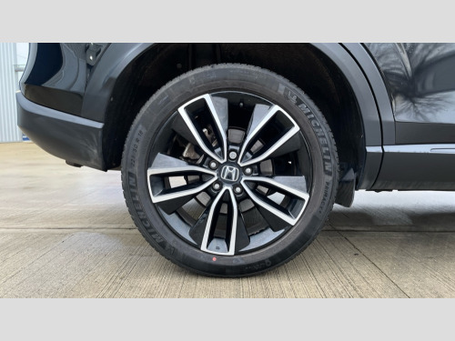 Honda HR-V 1.5 eHEV Elegance 5dr CVT 7" TFT instrument cluster, Adaptive cruise control, Adjustable speed limiter, Agile handling assist, Bluetooth hands free telephone connection, Drive modes select (Eco, normal and sport), eCall emergency system, Electric power steering, Emergency stop signalling system, Forward collision warning, Front parking sensors, Honda CONNECT with navigation, 9" touchscreen, AM/FM/DAB/Apple Carplay and android auto, Idle stop, Intelligent speed limiter, Lane departure warning, Lane keep assist, Low speed following, Multi info display, Power meter, Rear parking sensors and rear view camera, Road departure mitigation, Tachometer, Tailgate, Traffic sign recognition, WiFi connectivity, Vehicle stability assist, 'Shark fin' mobile antenna, 2x USB Front socket (1 data & 1 charge), 4 speakers, Steering wheel mounted remote controls, Auto folding door mirrors, Auto high beam, Automatic coming home lighting, Automatic headlights, Automatic rain sensing wipers, Body colour bumpers, Body colour tailgate spoiler, Body coloured door handles, Electric front and rear windows, Electrically adjustable and heated door mirrors, Exclusive styling in lower bumper non painting black,Fog garnish non paint gloss black,lower door garnish bumper skid garnish non paint silver, Front sequential turn, Headlight washers, Heated front windscreen, Heated rear window, High level third brake light, LED daytime running lights, LED headlamps, Low gloss window garnish, Manual headlight levelling, Rear side wing doors, Rear wiper, Red and clean lens LED rear lights, Variable front intermittent wipers, Windscreen shadeband, 3 rear headrests, 3 seat bench in 2nd row, 60/40 split folding rear seat, Ambient interior lighting, Automatic air conditioning, Cargo net hooks, Courtesy lights, Driver's seat height adjustment, Driver/passenger sunvisors with illuminated vanity mirrors, Front and rear map reading lights, Front head restraints, Front seat armrests, Heated front seats, Isofix points, Luggage area under floor storage box, Magic seat flexibility system, Manual height/reach adjust steering wheel, Meter illumination light, Paddle shift controls, Passenger seat back pocket, Rear centre armrest, Rear ventilation, Silver interior door handles, Single front passenger seat, Tonneau cover, Trunk light, 3x3 point rear seatbelts, ABS+EBD+Brake assist, Anti-whiplash front headrests, Auto hold function, Collision mitigation braking system, Collision mitigation throttle control, Deflation detection system, Dual front SRS airbags, Electric child locks, Electronic parking brake, Front and rear curtain airbags, Front and rear safety belts with Emergency Locking Retractor, Front side airbags, Hill descent control, Hill start assist, Low speed safety system, Paddle deceleration control, Passenger SRS airbag cut-off device, Regenerative braking system, Door deadlocks, Honda super locks, Immobiliser, Keyless smart entry with push button start, Remote central locking with 2 remote folding keys, Security alarm, Windows key fob operation, Tyre repair kit