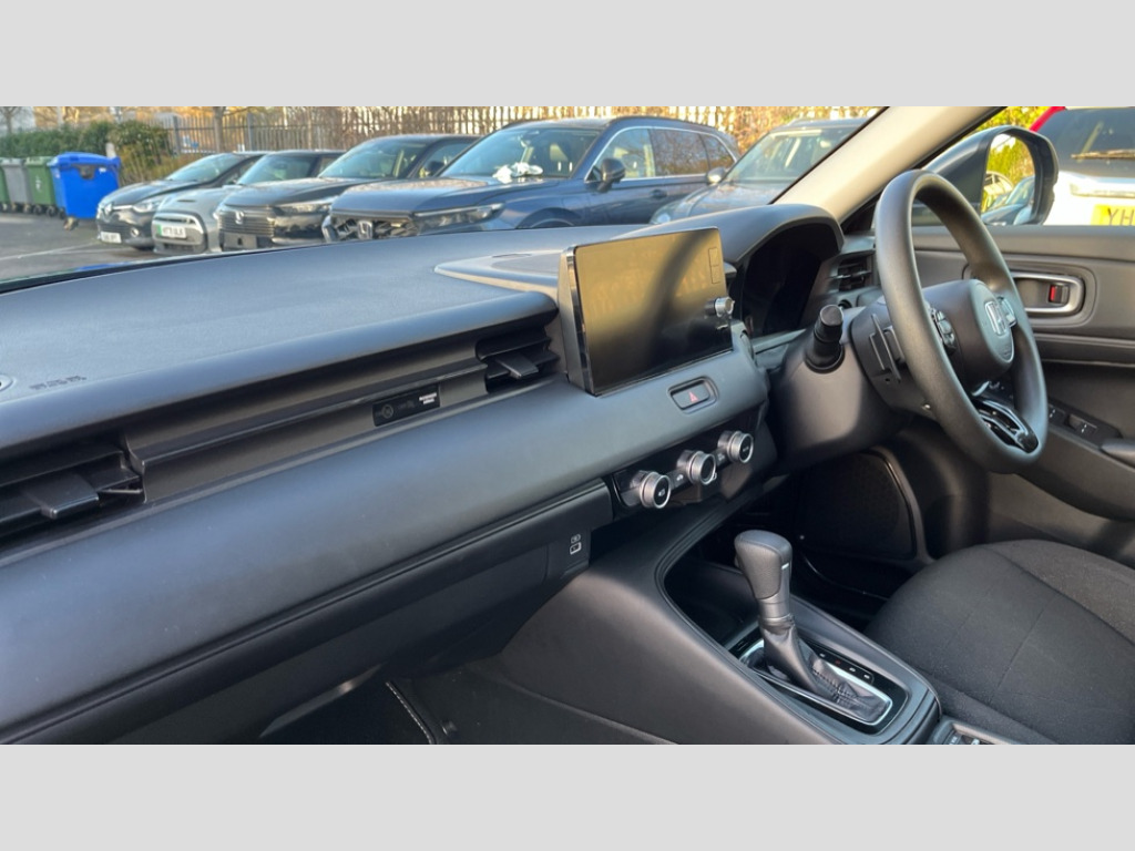 Honda HR-V 1.5 eHEV Elegance 5dr CVT 7" TFT instrument cluster, Adaptive cruise control, Adjustable speed limiter, Agile handling assist, Bluetooth hands free telephone connection, Drive modes select (Eco, normal and sport), eCall emergency system, Electric power steering, Emergency stop signalling system, Forward collision warning, Front parking sensors, Honda CONNECT with navigation, 9" touchscreen, AM/FM/DAB/Apple Carplay and android auto, Idle stop, Intelligent speed limiter, Lane departure warning, Lane keep assist, Low speed following, Multi info display, Power meter, Rear parking sensors and rear view camera, Road departure mitigation, Tachometer, Tailgate, Traffic sign recognition, WiFi connectivity, Vehicle stability assist, 'Shark fin' mobile antenna, 2x USB Front socket (1 data & 1 charge), 4 speakers, Steering wheel mounted remote controls, Auto folding door mirrors, Auto high beam, Automatic coming home lighting, Automatic headlights, Automatic rain sensing wipers, Body colour bumpers, Body colour tailgate spoiler, Body coloured door handles, Electric front and rear windows, Electrically adjustable and heated door mirrors, Exclusive styling in lower bumper non painting black,Fog garnish non paint gloss black,lower door garnish bumper skid garnish non paint silver, Front sequential turn, Headlight washers, Heated front windscreen, Heated rear window, High level third brake light, LED daytime running lights, LED headlamps, Low gloss window garnish, Manual headlight levelling, Rear side wing doors, Rear wiper, Red and clean lens LED rear lights, Variable front intermittent wipers, Windscreen shadeband, 3 rear headrests, 3 seat bench in 2nd row, 60/40 split folding rear seat, Ambient interior lighting, Automatic air conditioning, Cargo net hooks, Courtesy lights, Driver's seat height adjustment, Driver/passenger sunvisors with illuminated vanity mirrors, Front and rear map reading lights, Front head restraints, Front seat armrests, Heated front seats, Isofix points, Luggage area under floor storage box, Magic seat flexibility system, Manual height/reach adjust steering wheel, Meter illumination light, Paddle shift controls, Passenger seat back pocket, Rear centre armrest, Rear ventilation, Silver interior door handles, Single front passenger seat, Tonneau cover, Trunk light, 3x3 point rear seatbelts, ABS+EBD+Brake assist, Anti-whiplash front headrests, Auto hold function, Collision mitigation braking system, Collision mitigation throttle control, Deflation detection system, Dual front SRS airbags, Electric child locks, Electronic parking brake, Front and rear curtain airbags, Front and rear safety belts with Emergency Locking Retractor, Front side airbags, Hill descent control, Hill start assist, Low speed safety system, Paddle deceleration control, Passenger SRS airbag cut-off device, Regenerative braking system, Door deadlocks, Honda super locks, Immobiliser, Keyless smart entry with push button start, Remote central locking with 2 remote folding keys, Security alarm, Windows key fob operation, Tyre repair kit