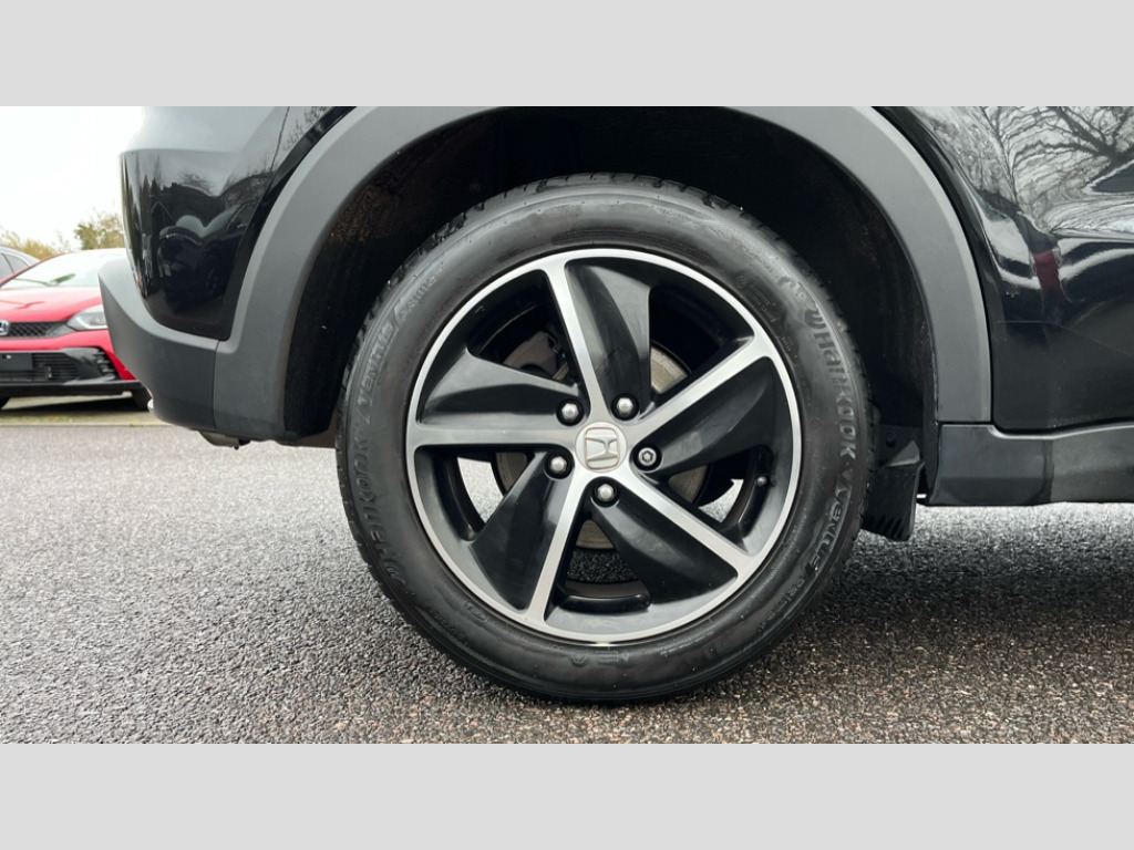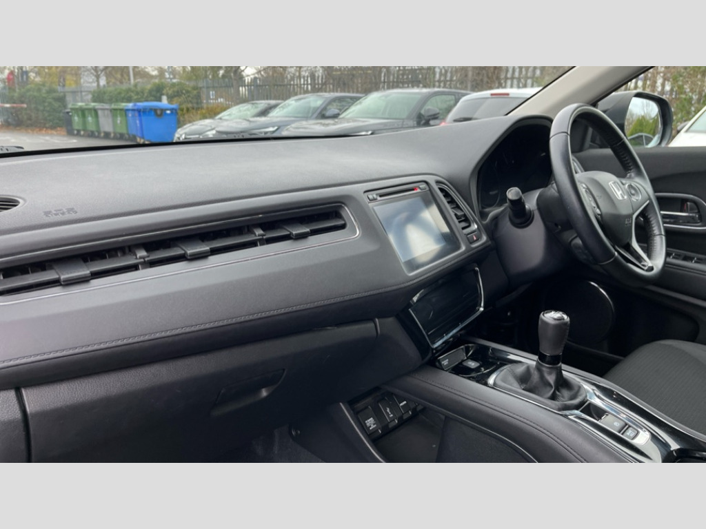 Honda HR-V 1.5 i-VTEC SE 5dr Adaptive motion for electric power steering, Bluetooth hands free telephone connection, Cruise control + speed limiter, Economy mode, Electric power steering, Emergency stop signalling system, Forward collision warning, Front and rear parking sensors, Honda CONNECT with GARMIN Navigation + 7" touchscreen, DAB Digital radio, AM/FM/CD/MP3, Aha app integration and internet browsing, Idle stop, Intelligent speed assist, Lane departure warning system, Multi function display, Rear view camera with Wide View and Dynamic Guideline, Service interval indicator, Traffic sign recognition, Trip computer, Vehicle stability assist, 'Shark fin' mobile antenna, 6 speakers, Steering wheel mounted remote controls, Automatic coming/leaving home lighting function, Automatic headlights with dusk sensor, Automatic rain sensing wipers, Body colour bumpers, Chrome exterior door handles, Door mirrors tilt when reversing, Electric folding door mirrors, Electric front windows/one touch facility, Electric rear windows + one touch facility, Electrically adjustable and heated door mirrors, Front fog lights, High beam assist, LED daytime running lights, LED Headlights, LED high level brake lights, LED indicator lights, LED Rear comb light turn case gray effect with black inner bar, Rear privacy glass, Rear wiper with intermittent and reverse linked, Remote window closing, 3 rear headrests, 60/40 split folding rear seat, Accessory socket in luggage area, Accessory sockets, Ambient interior lighting, Centre console accessory socket, Chrome interior door handles, Courtesy lights, Driver's seat height adjustment, Driver/passenger sunvisors with illuminated vanity mirrors, Dual climate control air conditioning system, Front and rear map reading lights, Front centre armrest, Front head restraints, Gear shift indicator, Isofix child seat preparation, Isofix points, Leather steering wheel and gear knob, Magic seat flexibility system, Passenger seat back pocket, Pocket light, Rear centre armrest, Sub trunk compartment with lid, Tilt/telescopic adjustable steering wheel, Tonneau cover, Trunk light, 15" solid rear disc brakes, 16" Vented front disk brakes, 3 rear three point seatbelts, ABS+EBD+Brake assist, Anti-whiplash front headrests, City safety braking system, Deflation detection system, Dual front SRS airbags, Electronic parking brake, Front and rear curtain airbags, Front and rear safety belts with Emergency Locking Retractor, Front side airbags, Hill start assist, Passenger SRS airbag cut-off device, Seatbelt warning, Honda super locks, Immobiliser, Remote central locking with 2 remote folding keys, Security alarm, Ultrasonic security sensor, Tyre repair kit