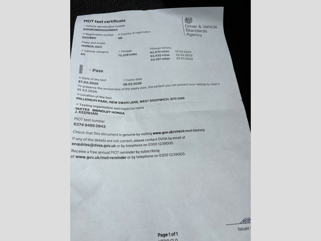 This 2017 Honda Jazz i VTEC SE is a superb example, having been cherished by only two owners from new. Powered by an efficient 1.3 litre petrol engine, this Euro 6 compliant model offers a compelling blend of practicality and modern convenience. The SE trim level comes equipped with a host of useful features designed to enhance your driving experience, including Bluetooth Hands Free Telephone for seamless connectivity, automatic dusk sensing headlights for improved visibility, and front and rear parking sensors to assist with manoeuvring. Manual air conditioning ensures a comfortable cabin environment in all conditions.The Honda Jazz is renowned for its clever design, and this particular model excels with its impressively large boot space, offering ample room for shopping, luggage, or hobbies. You'll also appreciate the excellent fuel economy, achieving a remarkable 59 miles per gallon, which indicates it is more economical than many other vehicles in its class. Furthermore, its low CO2 emissions highlight its environmental consideration, making it a sensible choice for the conscious driver. bric - black, 15in alloy wheels, 2x usb jack and hdmi jack, abs - anti lock braking system, accessory socket - front, aha - app integration, air conditioning - manual, airbag - dual front supplemental restraint system - srs - driver, airbag - dual front supplemental restraint system - srs - passenger, airbag - dual side supplement restraint system - srs, airbag - passenger cut off switch, alarm system, bluetooth hands free telephone - hft, boot light, brake assist, cd player, city brake active system - ctba, courtesy light - front and rear, cruise control with speed limiter, dasp - driver assist safety pack, daytime running lights - led, deflate warning system - dws, digital audio broadcast - dab, door handles - body coloured, door mirrors - electric - retractable with indicator, driver seat manual height adjustment, driver vanity mirror, ebd - electronic brakeforce distribution, electric windows - dr one touch up-down, electric windows - front and rear, emergency stop signal, forward collision warning - fcw, halogen headlights, headlights - auto on-off timer - coming-leaving home function, headlights - dusk sensor, high beam support system - hss, high mount brake light - led, hill start assist - hsa, honda connect with cd player, isa - intelligent speed assist, isofix points, immobiliser system, internet browsing, internet radio, lane departure warning - ldw, mid - multi info display, map light, paddle shift gear selector - cvt, parking sensors - front, parking sensors - rear, passenger seat back pocket, passenger vanity mirror, power assisted steering - electric, rain sensing windscreen wipers, rear parcel shelf, reclining rear seat, remote central locking with 2 jack knife keys, seats - magic flexibility system, shark fin antenna, shift indicator light, side curtain airbags, speakers x4, steering wheel - remote audio controls, steering wheel - tilt and telescopic adjustment, super locking, touchscreen 7in, traffic sign recognition - tsr, tyre repair kit, vsa - vehicle stability assist, whiplash lessening front headrests