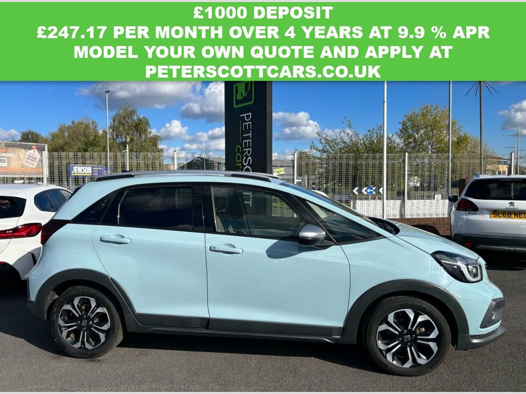 Stunning, high specification Honda Jazz Crosstar finished in the desirable Surf Blue with Satellite navigation, Rear view camera, Heated front seats, Power folding mirrors, Front & rear parking sensors, Bluetooth audio and much more. Lovingly cared for low mileage example. Maintained to a very high standard with a 5 stamp service history, last serviced at Holdcroft Honda, Warrington on the 22/07/25 at a mileage of 28,719. This Honda Jazz automatic Petrol Hybrid has been independently inspected by the AA for your added peace of mind. Visit www.peterscottcars.co.uk, to reserve this car and apply for finance. Low rate finance available. Please ask for a personal quote or use the finance calculators on our website before submitting a full application. All finance can be arranged and signed remotely. Comes with both keys, service history all documentation full clear Gold HPI Report, 128 point AA Inspection Report carried out by AA engineers including a 5 mile test drive before issuing the 'Pass' certificate and the 5 page inspection report. AA History Check Reprt and 12 months AA Breakdown Cover included. Please call or message if you require further information or to make an arrangement to view. 16in Alloy Wheels - Berlina Black, 2x USB Front, 2x USB Rear - Charge Only, ABS - Anti Lock Braking System, Accessory Socket - Front, Adaptive Cruise Control, Adjustable Speed Limiter, Airbag - Drivers Knee, Airbag - Front Centre, Airbag - Front Driver and Passenger, Airbag - Front Side, Airbag - Passenger SRS with Cut Off Swit, Airbag - Rear Side, Airbag - Side Curtain - Front and Rear, Automatic Headlights, Automatic Wipers, BA - Brake Assist, Black Grille, Bluetooth Hands Free Telephone - HFT, Body Colour Exterior Door Handles, Climate Control Air Conditioning, Collision Mitigation Braking System - CM, Courtesy Light - Front, Daytime Running Lights - LED, Deflation Warning System - DWS -