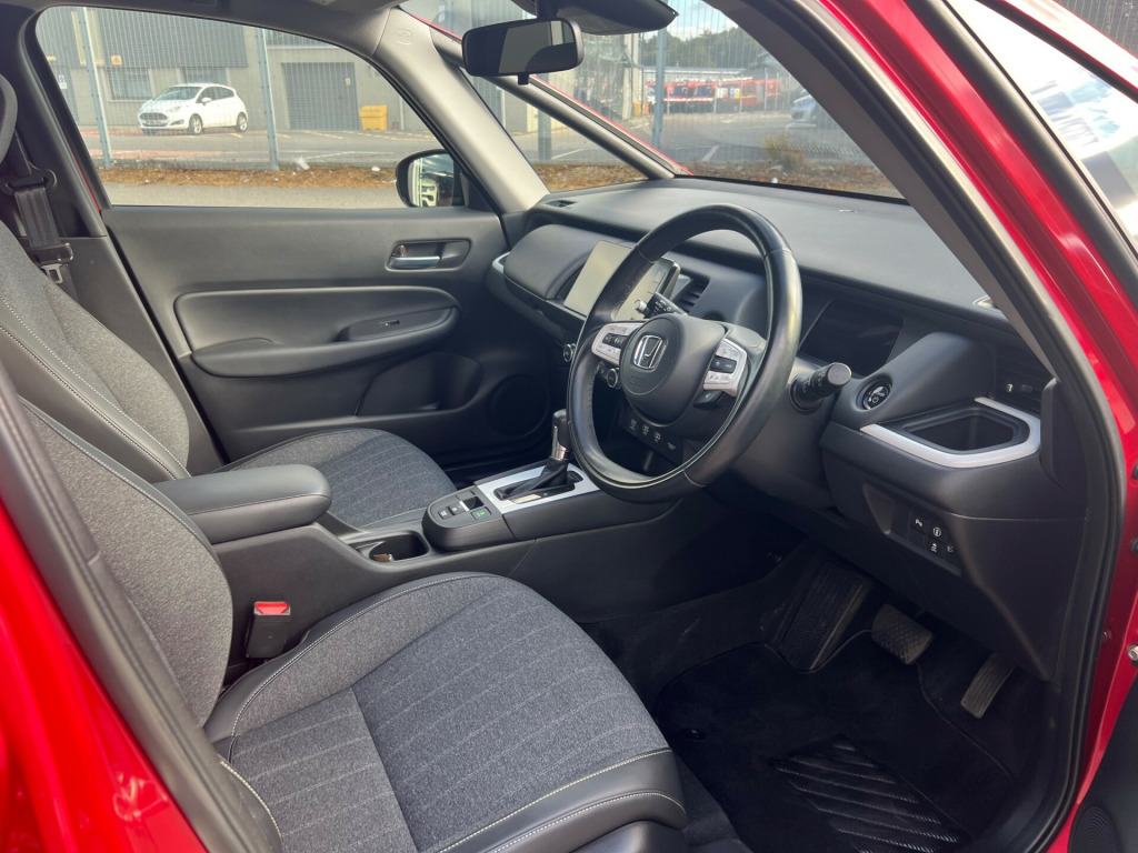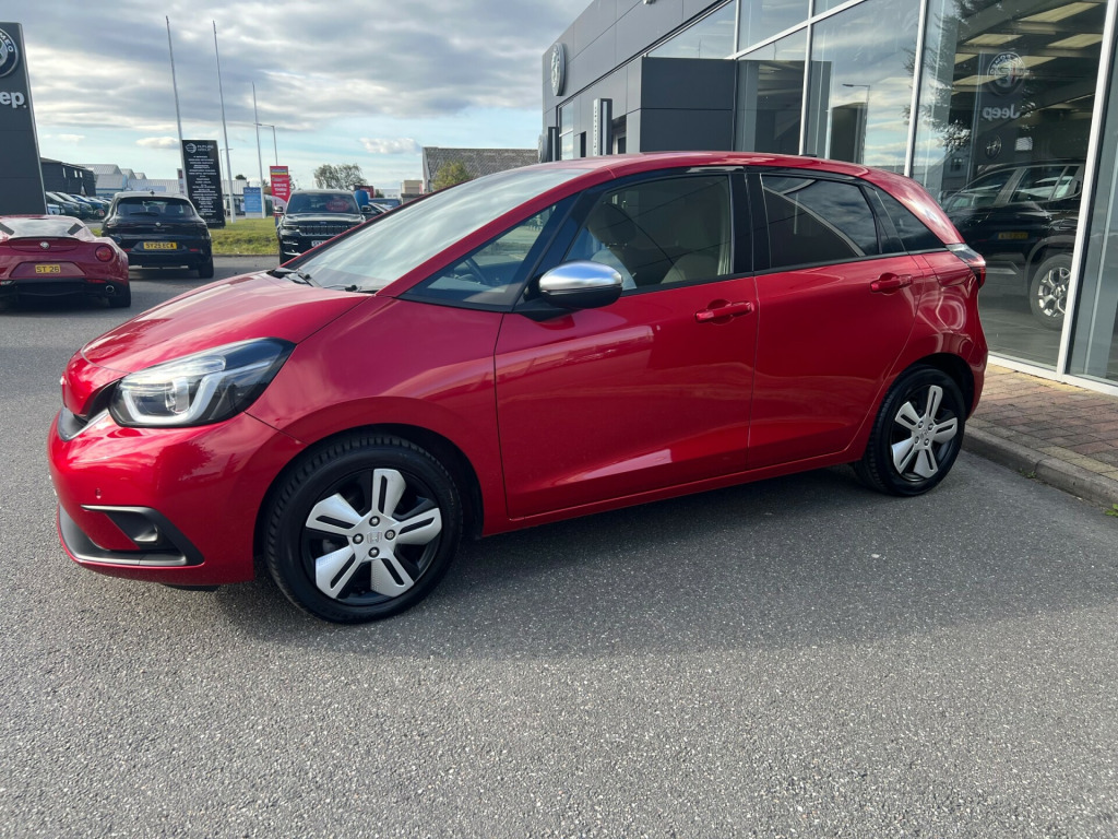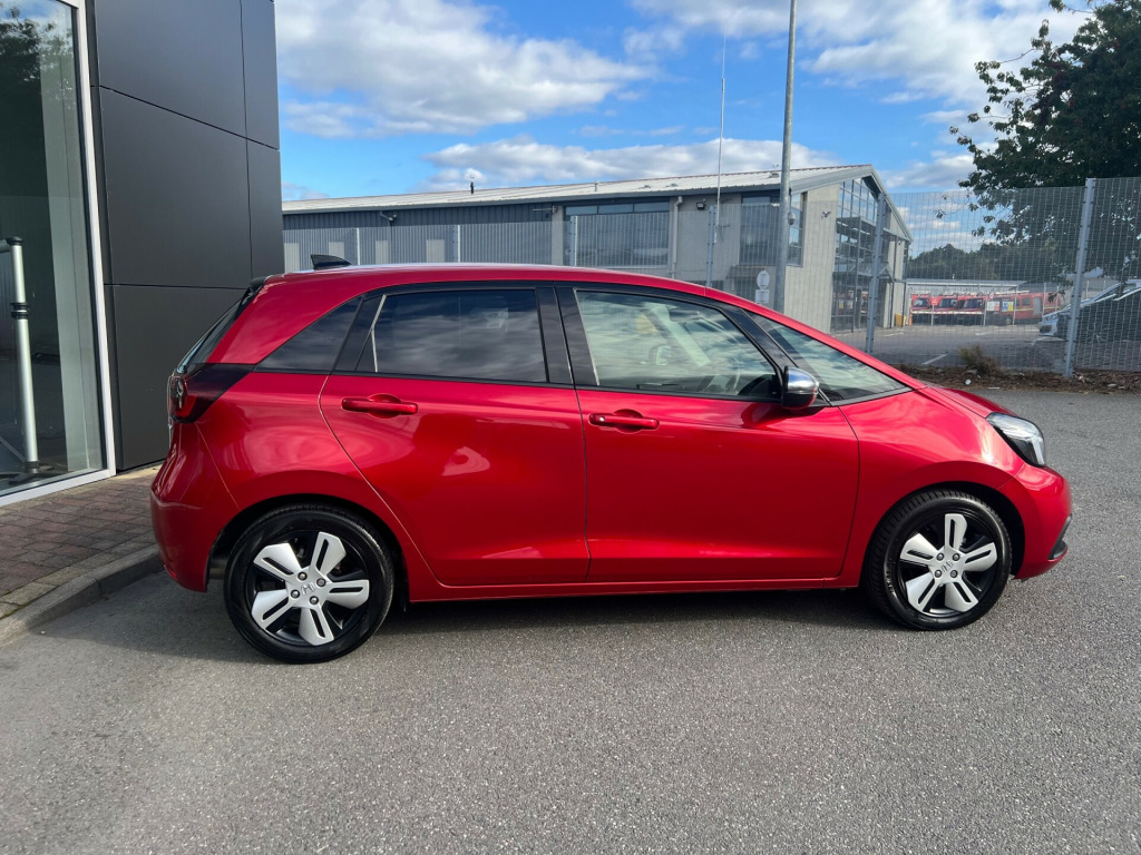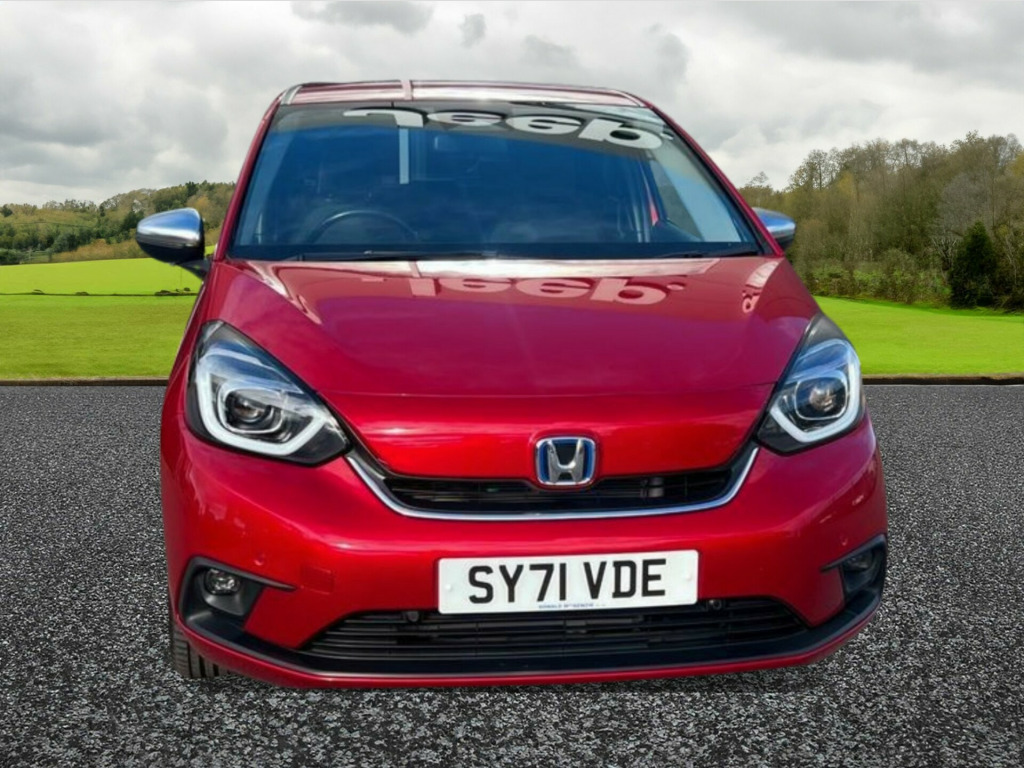 This 2021 Honda Jazz 1.5 h i-MMD EX Hatchback in striking red with only 26547 miles is a sleek and efficient choice for anyone in the market for a reliable vehicle. As a Petrol Hybrid, it is not only eco-friendly but also boasts an impressive fuel economy. With MOT valid until 28/12/2025, this 5-door Hatchback comfortably seats 5 passengers and is ULEZ compliant, offering peace of mind for city driving. The innovative eCVT Euro 6 (s/s) engine delivers 109 ps, ensuring a smooth and powerful ride. Whether you're commuting to work or embarking on a family road trip, this Honda Jazz offers the perfect combination of style, comfort, and environmental responsibility. r conditioning, bluetooth connection, colour satnav, half leather, rain-sensing wipers, satellite navigation, usb/ipod interface