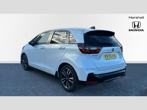 Honda Jazz 1.5 i-MMD Hybrid Advance Sport 5dr eCVT Adaptive cruise control, Adjustable speed limiter, Agile handling assist, BLIS (Blind Spot Information System) with Cross Traffic Monitor, Bluetooth hands free telephone connection, Drive mode (Econ, Sport, Normal), Driver attention monitoring system, eCall emergency call system - ecall functionality is subject to 2G/3G network availability, Electric power steering wheel with variable gear ratio steering, Emergency stop signalling system, Forward collision warning, Front and rear parking sensors, Honda CONNECT with Navigation 9" touchscreen, AM/FM/DAB, Apple Carplay and Android Auto, live traffic info, Idle stop, Intelligent speed limiter, Lane departure warning system, Lane keep assist system, Low speed following, Multi-information display, Rear view camera, Road departure mitigation, Tailgate, Traffic jam assist, Traffic sign recognition, Wireless apple carplay, Vehicle stability assist, 'Shark fin' mobile antenna, 180w Power audio system with 4 speakers, 2 USB-C connectors rear, 2x USB Front socket (1 data & 1 charge), Remote audio controls on steering wheel, Aspheric door mirrors, Auto wipers, Automatic headlights with on/off timer, Coming/leaving home function, Black headlight extension, Body colour door handles, eHEV emblem, Electric adjustable door mirrors, Electrically folding door mirrors, Exclusive styling includes front and rear bumper in gloss black finish, Front and rear electric windows, Heated door mirrors, High beam assist, LED 3rd brake light, LED daytime running lights, LED Headlights, LED rear lights, Manual headlight levelling, Privacy glass, Rear side wing doors, Rear wiper, Single exhaust tailpipe with finisher, Sport grille, 3 seat bench in 2nd row, 60/40 split rear bench seat, Cargo net hooks, Climate control air conditioning, Driver and front passenger seat armrests, Driver and passenger front seat pockets, Driver's seat height adjustment, Fabric/suede leather upholstery, Front accessory power socket, Front head restraints, Front map lights, Front/rear courtesy lights, Heated front seats, Heated steering wheel, Isofix points, Leather 3-spoke steering wheel, Leather gearshift knob, Magic seat flexibility system, Plating interior door handles, Rear head restraints, Single front passenger seat, Sport pedals, Sunvisors with vanity mirrors, Tilt/telescopic adjustable steering wheel, Tonneau cover, Trunk light, Vanity mirror illumination, 3x3 point rear seatbelts, Anti-lock braking system (ABS), Brake assist function, Brake hold function, Child locks on rear doors, Collision mitigation braking system, Deflation warning system, Driver knee airbag, Driver SRS airbag (single stage inflation), Driver/Front Passenger airbags, Electronic parking brake with auto hold, Front and rear seat belt with emergency locking retractor, Front and rear side curtain airbag, Front centre airbag, Front side airbags, Hill start assist, Paddle deceleration control, Passenger SRS airbag cut-off device, Rear side airbags, Regenerative braking system, Whiplash lessening front headrests, Honda super locks, Immobiliser, Mirrors and windows key fob operation, Remote central locking with 2 remote folding keys, Security alarm, Smart entry + Smart start, Soft pad leather interior panels, Tyre repair kit