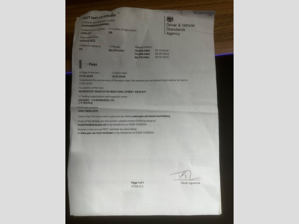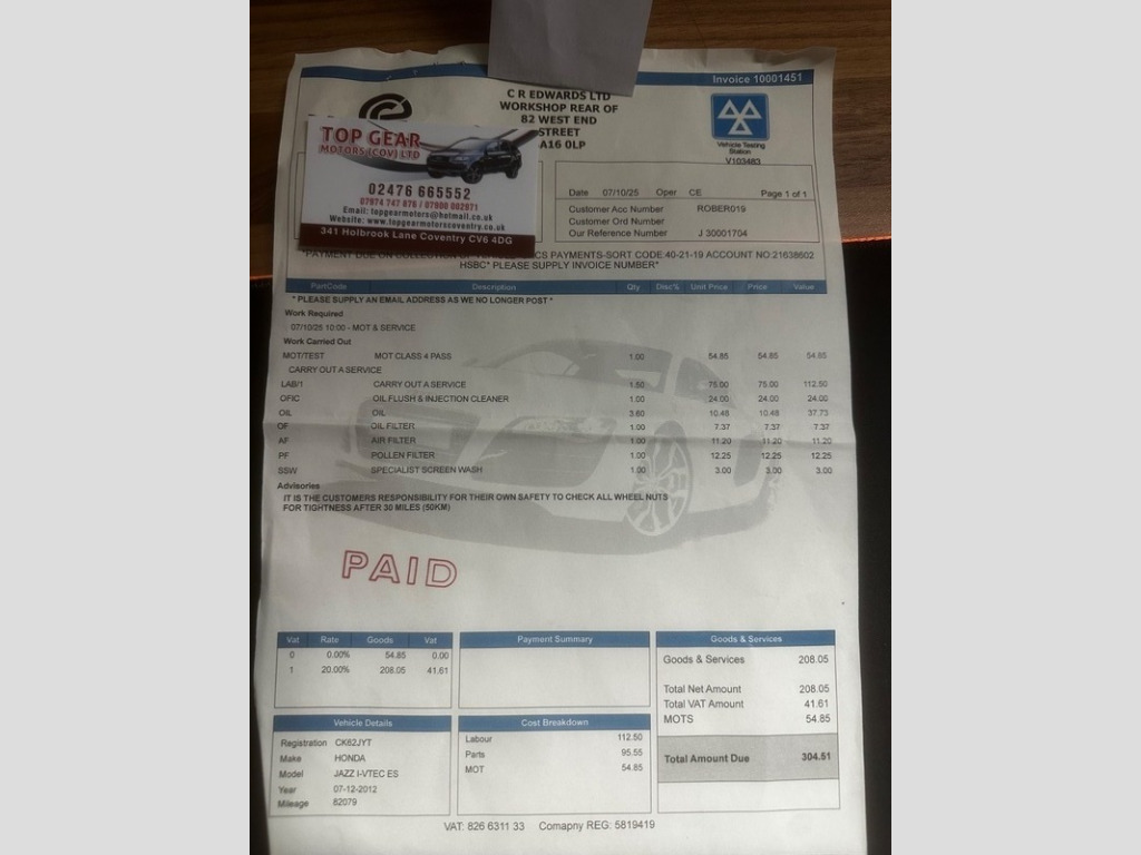 Service History, Last serviced at 82079, Next MOT: 10/10/2026, 3 Months Warranty, Spare Key, hpi clear