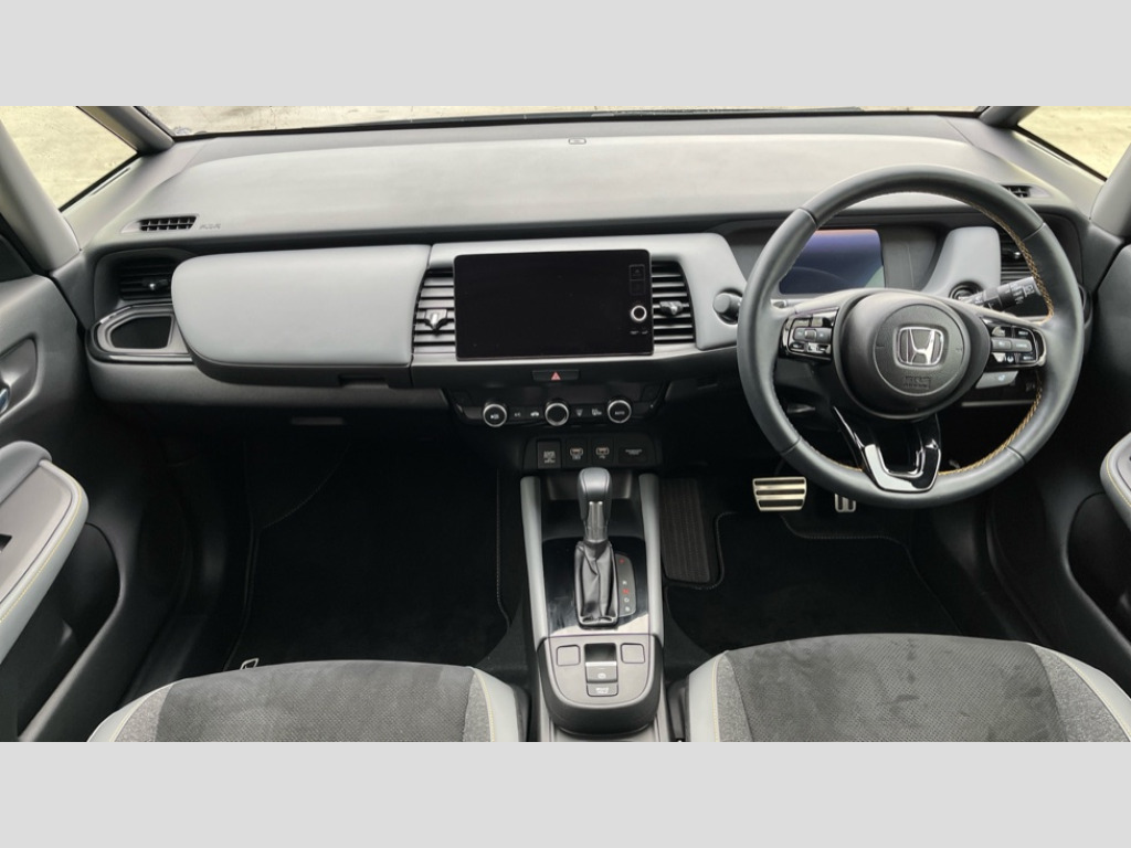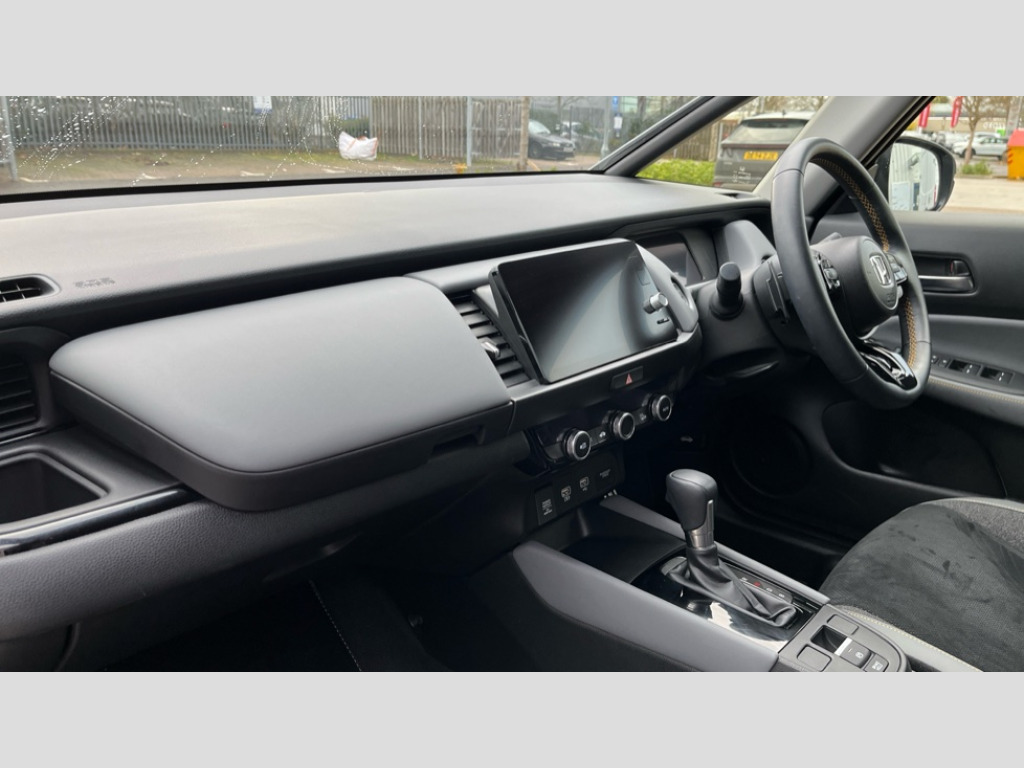 Honda Jazz 1.5 i-MMD Hybrid Advance Sport 5dr eCVT Adaptive cruise control, Adjustable speed limiter, Agile handling assist, BLIS (Blind Spot Information System) with Cross Traffic Monitor, Bluetooth hands free telephone connection, Drive mode (Econ, Sport, Normal), Driver attention monitoring system, eCall emergency call system - ecall functionality is subject to 2G/3G network availability, Electric power steering wheel with variable gear ratio steering, Emergency stop signalling system, Forward collision warning, Front and rear parking sensors, Honda CONNECT with Navigation 9" touchscreen, AM/FM/DAB, Apple Carplay and Android Auto, live traffic info, Idle stop, Intelligent speed limiter, Lane departure warning system, Lane keep assist system, Low speed following, Multi-information display, Rear view camera, Road departure mitigation, Tailgate, Traffic jam assist, Traffic sign recognition, Wireless apple carplay, Vehicle stability assist, 'Shark fin' mobile antenna, 180w Power audio system with 4 speakers, 2 USB-C connectors rear, 2x USB Front socket (1 data & 1 charge), Remote audio controls on steering wheel, Aspheric door mirrors, Auto wipers, Automatic headlights with on/off timer, Coming/leaving home function, Black headlight extension, Body colour door handles, eHEV emblem, Electric adjustable door mirrors, Electrically folding door mirrors, Exclusive styling includes front and rear bumper in gloss black finish, Front and rear electric windows, Heated door mirrors, High beam assist, LED 3rd brake light, LED daytime running lights, LED Headlights, LED rear lights, Manual headlight levelling, Privacy glass, Rear side wing doors, Rear wiper, Single exhaust tailpipe with finisher, Sport grille, 3 seat bench in 2nd row, 60/40 split rear bench seat, Cargo net hooks, Climate control air conditioning, Driver and front passenger seat armrests, Driver and passenger front seat pockets, Driver's seat height adjustment, Fabric/suede leather upholstery, Front accessory power socket, Front head restraints, Front map lights, Front/rear courtesy lights, Heated front seats, Heated steering wheel, Isofix points, Leather 3-spoke steering wheel, Leather gearshift knob, Magic seat flexibility system, Plating interior door handles, Rear head restraints, Single front passenger seat, Sport pedals, Sunvisors with vanity mirrors, Tilt/telescopic adjustable steering wheel, Tonneau cover, Trunk light, Vanity mirror illumination, 3x3 point rear seatbelts, Anti-lock braking system (ABS), Brake assist function, Brake hold function, Child locks on rear doors, Collision mitigation braking system, Deflation warning system, Driver knee airbag, Driver SRS airbag (single stage inflation), Driver/Front Passenger airbags, Electronic parking brake with auto hold, Front and rear seat belt with emergency locking retractor, Front and rear side curtain airbag, Front centre airbag, Front side airbags, Hill start assist, Paddle deceleration control, Passenger SRS airbag cut-off device, Rear side airbags, Regenerative braking system, Whiplash lessening front headrests, Honda super locks, Immobiliser, Mirrors and windows key fob operation, Remote central locking with 2 remote folding keys, Security alarm, Smart entry + Smart start, Soft pad leather interior panels, Tyre repair kit