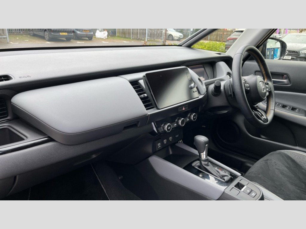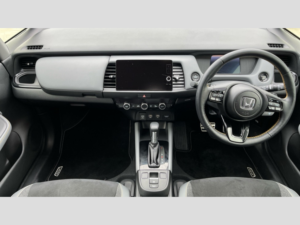 Honda Jazz 1.5 i-MMD Hybrid Advance Sport 5dr eCVT Adaptive cruise control, Adjustable speed limiter, Agile handling assist, BLIS (Blind Spot Information System) with Cross Traffic Monitor, Bluetooth hands free telephone connection, Drive mode (Econ, Sport, Normal), Driver attention monitoring system, eCall emergency call system - ecall functionality is subject to 2G/3G network availability, Electric power steering wheel with variable gear ratio steering, Emergency stop signalling system, Forward collision warning, Front and rear parking sensors, Honda CONNECT with Navigation 9" touchscreen, AM/FM/DAB, Apple Carplay and Android Auto, live traffic info, Idle stop, Intelligent speed limiter, Lane departure warning system, Lane keep assist system, Low speed following, Multi-information display, Rear view camera, Road departure mitigation, Tailgate, Traffic jam assist, Traffic sign recognition, Wireless apple carplay, Vehicle stability assist, 'Shark fin' mobile antenna, 180w Power audio system with 4 speakers, 2 USB-C connectors rear, 2x USB Front socket (1 data & 1 charge), Remote audio controls on steering wheel, Aspheric door mirrors, Auto wipers, Automatic headlights with on/off timer, Coming/leaving home function, Black headlight extension, Body colour door handles, eHEV emblem, Electric adjustable door mirrors, Electrically folding door mirrors, Exclusive styling includes front and rear bumper in gloss black finish, Front and rear electric windows, Heated door mirrors, High beam assist, LED 3rd brake light, LED daytime running lights, LED Headlights, LED rear lights, Manual headlight levelling, Privacy glass, Rear side wing doors, Rear wiper, Single exhaust tailpipe with finisher, Sport grille, 3 seat bench in 2nd row, 60/40 split rear bench seat, Cargo net hooks, Climate control air conditioning, Driver and front passenger seat armrests, Driver and passenger front seat pockets, Driver's seat height adjustment, Fabric/suede leather upholstery, Front accessory power socket, Front head restraints, Front map lights, Front/rear courtesy lights, Heated front seats, Heated steering wheel, Isofix points, Leather 3-spoke steering wheel, Leather gearshift knob, Magic seat flexibility system, Plating interior door handles, Rear head restraints, Single front passenger seat, Sport pedals, Sunvisors with vanity mirrors, Tilt/telescopic adjustable steering wheel, Tonneau cover, Trunk light, Vanity mirror illumination, 3x3 point rear seatbelts, Anti-lock braking system (ABS), Brake assist function, Brake hold function, Child locks on rear doors, Collision mitigation braking system, Deflation warning system, Driver knee airbag, Driver SRS airbag (single stage inflation), Driver/Front Passenger airbags, Electronic parking brake with auto hold, Front and rear seat belt with emergency locking retractor, Front and rear side curtain airbag, Front centre airbag, Front side airbags, Hill start assist, Paddle deceleration control, Passenger SRS airbag cut-off device, Rear side airbags, Regenerative braking system, Whiplash lessening front headrests, Honda super locks, Immobiliser, Mirrors and windows key fob operation, Remote central locking with 2 remote folding keys, Security alarm, Smart entry + Smart start, Soft pad leather interior panels, Tyre repair kit