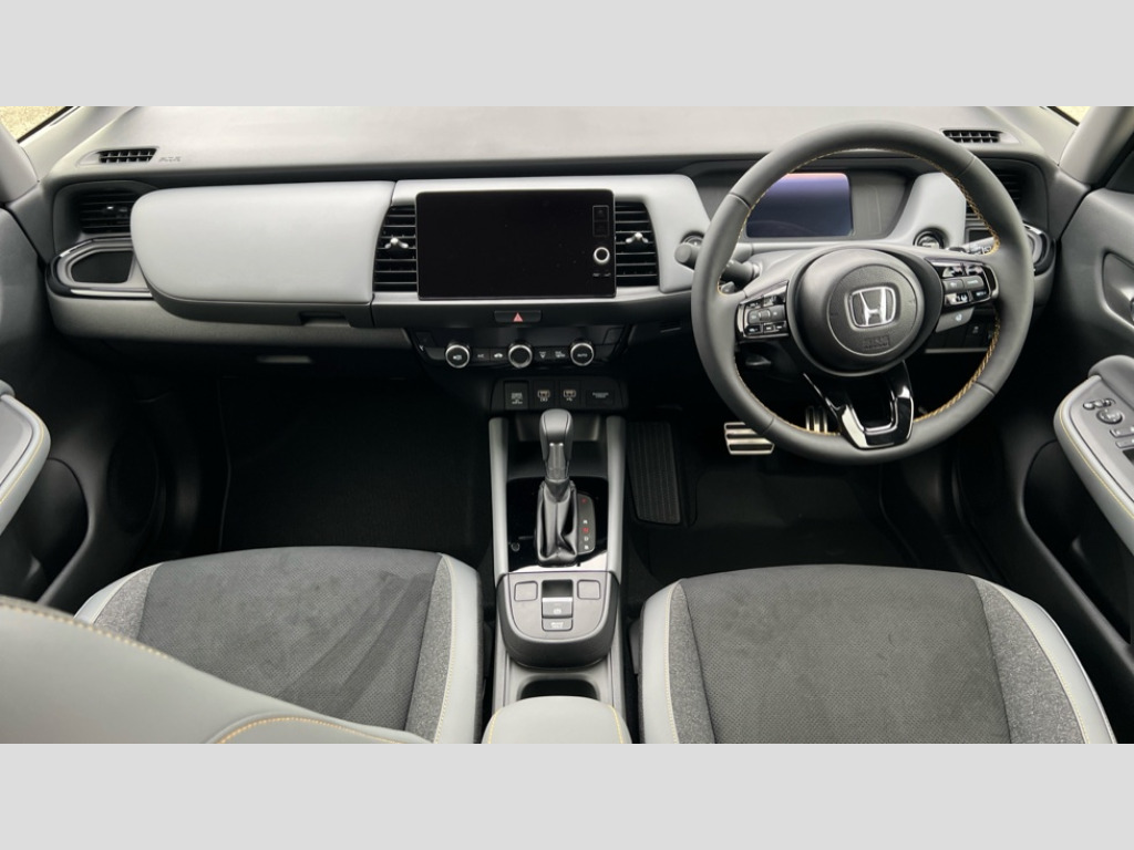 Honda Jazz 1.5 i-MMD Hybrid Advance Sport 5dr eCVT Adaptive cruise control, Adjustable speed limiter, Agile handling assist, BLIS (Blind Spot Information System) with Cross Traffic Monitor, Bluetooth hands free telephone connection, Drive mode (Econ, Sport, Normal), Driver attention monitoring system, eCall emergency call system - ecall functionality is subject to 2G/3G network availability, Electric power steering wheel with variable gear ratio steering, Emergency stop signalling system, Forward collision warning, Front and rear parking sensors, Honda CONNECT with Navigation 9" touchscreen, AM/FM/DAB, Apple Carplay and Android Auto, live traffic info, Idle stop, Intelligent speed limiter, Lane departure warning system, Lane keep assist system, Low speed following, Multi-information display, Rear view camera, Road departure mitigation, Tailgate, Traffic jam assist, Traffic sign recognition, Wireless apple carplay, Vehicle stability assist, 'Shark fin' mobile antenna, 180w Power audio system with 4 speakers, 2 USB-C connectors rear, 2x USB Front socket (1 data & 1 charge), Remote audio controls on steering wheel, Aspheric door mirrors, Auto wipers, Automatic headlights with on/off timer, Coming/leaving home function, Black headlight extension, Body colour door handles, eHEV emblem, Electric adjustable door mirrors, Electrically folding door mirrors, Exclusive styling includes front and rear bumper in gloss black finish, Front and rear electric windows, Heated door mirrors, High beam assist, LED 3rd brake light, LED daytime running lights, LED Headlights, LED rear lights, Manual headlight levelling, Privacy glass, Rear side wing doors, Rear wiper, Single exhaust tailpipe with finisher, Sport grille, 3 seat bench in 2nd row, 60/40 split rear bench seat, Cargo net hooks, Climate control air conditioning, Driver and front passenger seat armrests, Driver and passenger front seat pockets, Driver's seat height adjustment, Fabric/suede leather upholstery, Front accessory power socket, Front head restraints, Front map lights, Front/rear courtesy lights, Heated front seats, Heated steering wheel, Isofix points, Leather 3-spoke steering wheel, Leather gearshift knob, Magic seat flexibility system, Plating interior door handles, Rear head restraints, Single front passenger seat, Sport pedals, Sunvisors with vanity mirrors, Tilt/telescopic adjustable steering wheel, Tonneau cover, Trunk light, Vanity mirror illumination, 3x3 point rear seatbelts, Anti-lock braking system (ABS), Brake assist function, Brake hold function, Child locks on rear doors, Collision mitigation braking system, Deflation warning system, Driver knee airbag, Driver SRS airbag (single stage inflation), Driver/Front Passenger airbags, Electronic parking brake with auto hold, Front and rear seat belt with emergency locking retractor, Front and rear side curtain airbag, Front centre airbag, Front side airbags, Hill start assist, Paddle deceleration control, Passenger SRS airbag cut-off device, Rear side airbags, Regenerative braking system, Whiplash lessening front headrests, Honda super locks, Immobiliser, Mirrors and windows key fob operation, Remote central locking with 2 remote folding keys, Security alarm, Smart entry + Smart start, Soft pad leather interior panels, Tyre repair kit