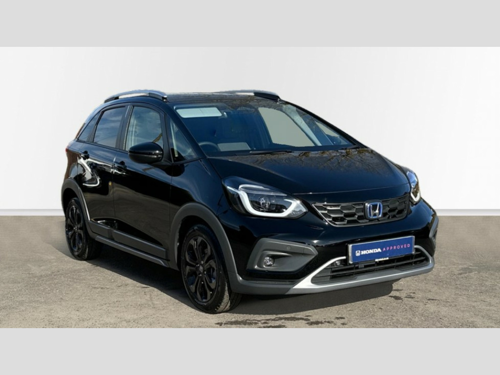 Honda Jazz 1.5 i-MMD Hybrid Crosstar Advance 5dr eCVT Adaptive cruise control, Adjustable speed limiter, Agile handling assist, Bluetooth hands free telephone connection, Driver attention monitoring system, eCall emergency call system - ecall functionality is subject to 2G/3G network availability, Econ mode, Electric power steering wheel with variable gear ratio steering, Emergency stop signalling system, Forward collision warning, Front and rear parking sensors, Honda CONNECT with Navigation 9" touchscreen, AM/FM/DAB, Apple Carplay and Android Auto, live traffic info, Idle stop, Intelligent speed limiter, Lane departure warning system, Lane keep assist system, Low speed following, Multi-information display, Rear view camera, Road departure mitigation, Tailgate, Traffic jam assist, Traffic sign recognition, Wireless apple carplay, Vehicle stability assist, 'Shark fin' mobile antenna, 180w Power audio system with 4 speakers, 2 USB-C connectors rear, 2x USB Front socket (1 data & 1 charge), Remote audio controls on steering wheel, Aspheric door mirrors, Auto wipers, Automatic headlights with on/off timer, Coming/leaving home function, Black door handles, Black door mirrors, Black headlight extension, Body coloured front grille, eHEV emblem, Electric adjustable door mirrors, Electrically folding door mirrors, Exclusive styling includes front and rear bumper, front fog garnish, silver fender, side sill garnish, Front and rear electric windows, Heated door mirrors, High beam assist, LED 3rd brake light, LED daytime running lights, LED front fog lights, LED Headlights, LED rear lights, Manual headlight levelling, Privacy glass, Rear side wing doors, Rear wiper, Roof rails, Single exhaust tailpipe, 3 seat bench in 2nd row, 60/40 split rear bench seat, Cargo net hooks, Climate control air conditioning, Driver and front passenger seat armrests, Driver and passenger front seat pockets, Driver's seat height adjustment, Fabric/Water repellent upholstery, Front accessory power socket, Front head restraints, Front map lights, Front/rear courtesy lights, Heated front seats, Heated steering wheel, Isofix points, Leather gearshift knob, Leather steering wheel, Magic seat flexibility system, Plating interior door handles, Rear head restraints, Single front passenger seat, Sunvisors with vanity mirrors, Tilt/telescopic adjustable steering wheel, Tonneau cover, Trunk light, Vanity mirror illumination, 3x3 point rear seatbelts, Anti-lock braking system (ABS), Brake assist function, Brake hold function, Child locks on rear doors, Collision mitigation braking system, Deflation warning system, Driver knee airbag, Driver SRS airbag (single stage inflation), Driver/Front Passenger airbags, Electronic parking brake with auto hold, Front and rear seat belt with emergency locking retractor, Front and rear side curtain airbag, Front centre airbag, Front side airbags, Hill start assist, Passenger SRS airbag cut-off device, Rear side airbags, Whiplash lessening front headrests, Honda super locks, Immobiliser, Mirrors and windows key fob operation, Remote central locking with 2 remote folding keys, Security alarm, Smart entry + Smart start, Soft pad leather interior panels, 16" 3D chrome H centre cap alloy wheels, Tyre repair kit
