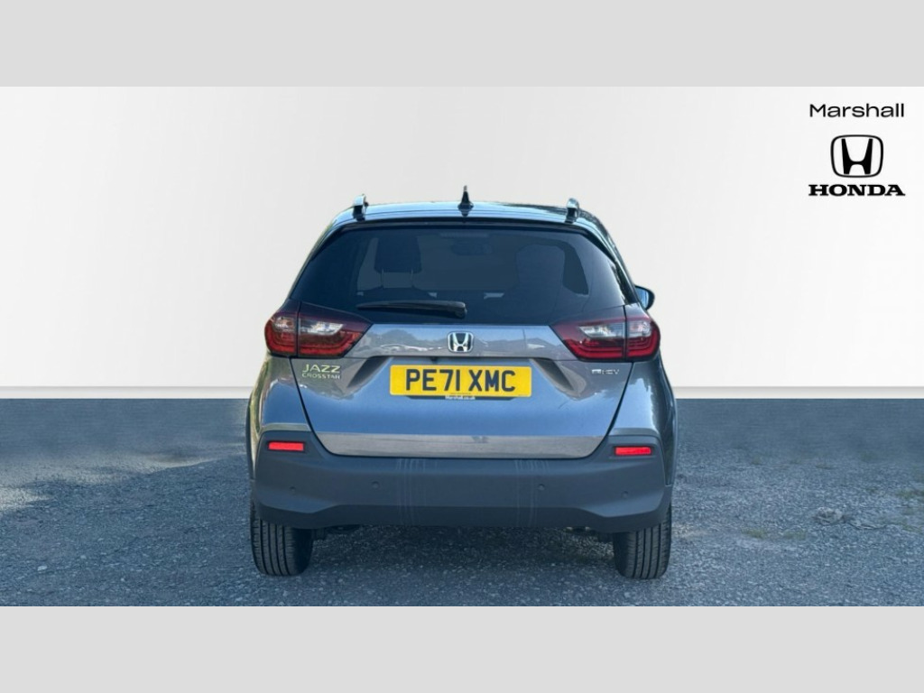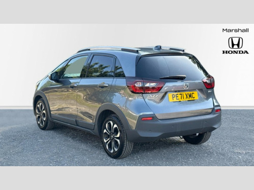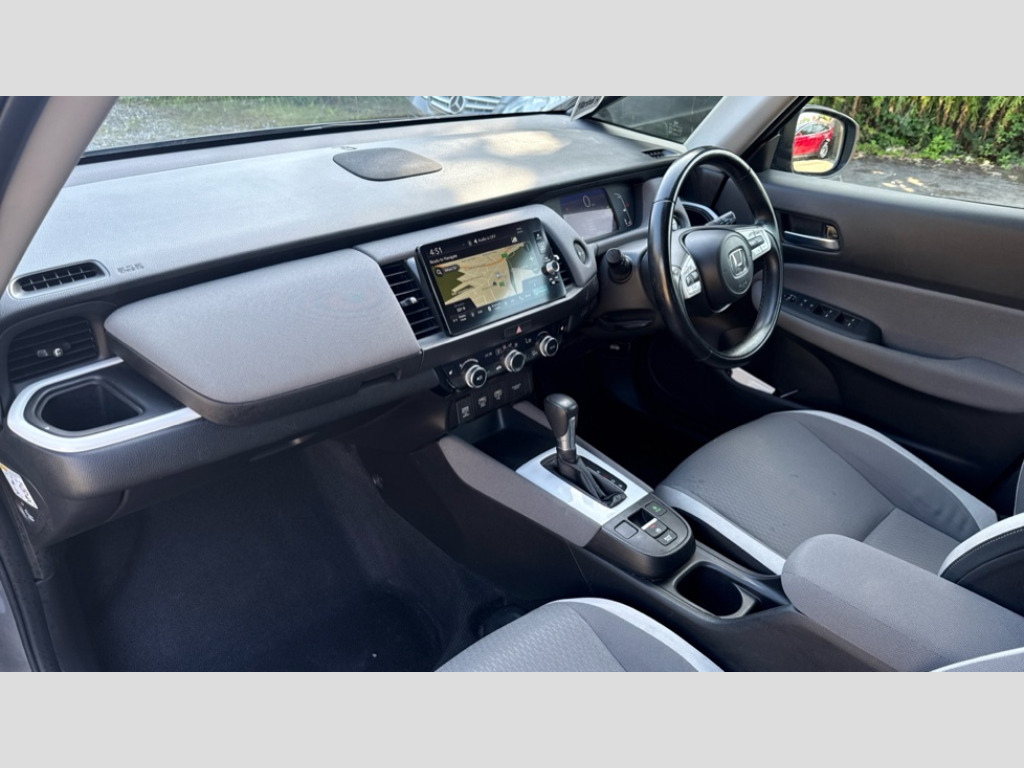 Honda Jazz 1.5 i-MMD Hybrid Crosstar EX 5dr eCVT Adaptive cruise control, Adjustable speed limiter, Agile handling assist, Bluetooth hands free telephone connection, Econ mode, Electric power steering wheel with variable gear ratio steering, Emergency stop signalling system, Forward collision warning, Front and rear parking sensors, Honda CONNECT with HERE Navigation + 9" touchscreen, AM/FM/DAB/Apple Carplay and android auto, Idle stop, Intelligent speed limiter, Lane departure warning system, Lane keep assist system, Low speed following, Multi-information display, Rear view camera, Road departure mitigation, Traffic sign recognition, Vehicle stability assist, 'Shark fin' mobile antenna, 2 USB sockets in rear, 2x USB Front socket (1 data & 1 charge), Premium audio with 8 speakers, front tweeter, centre speaker, Remote audio controls on steering wheel, Subwoofer, Aspheric door mirrors, Auto wipers, Automatic headlights with on/off timer, Coming/leaving home function, Body colour door handles, eHEV emblem, Electric adjustable door mirrors, Electrically folding door mirrors, Exclusive styling includes Front and rear bumper, Front fog garnish, Black fender, side sill garnish, Front and rear electric windows, Heated door mirrors, High beam assist, LED daytime running lights, LED front fog lights, LED Headlights, LED rear lights, Privacy glass, Roof rails, Silver door mirrors, Single exhaust tailpipe, 60/40 split rear bench seat, Cargo net hooks, Climate control air conditioning, Driver and front passenger seat armrests, Driver and passenger front seat pockets, Driver's seat height adjustment, Fabric/Water repellent upholstery, Front accessory power socket, Front head restraints, Front map lights, Front/rear courtesy lights, Heated front seats, Isofix child seat restraint mechanism, Isofix points, Leather gearshift knob, Leather steering wheel, Magic seat flexibility system, Paddle shift controls, Plating interior door handles, Rear head restraints, Rear parcel shelf, Sunvisors with vanity mirrors, Tilt/telescopic adjustable steering wheel, Tonneau cover, Trunk light, 3x3 point rear seatbelts, Anti-lock braking system (ABS), Brake assist function, Brake hold function, Collision mitigation braking system, Deflation warning system, Driver knee airbag, Driver SRS airbag (single stage inflation), Driver/Front Passenger airbags, Electric parking brake, Front and rear side curtain airbag, Front side airbags, Hill start assist, Passenger SRS airbag cut-off device, Rear side airbags, Whiplash lessening front headrests, Front seat belt with emergency locking retractor, Honda super locks, Immobiliser, Mirrors and windows key fob operation, Remote central locking with 2 remote folding keys, Security alarm, Smart entry + Smart start, Soft pad mesh interior panels, 16" AL Crosstar alloy wheels in mat berlina black, Tyre repair kit