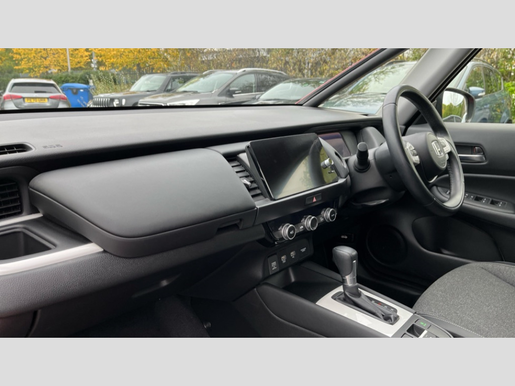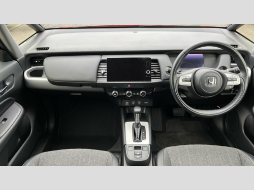 Honda Jazz 1.5 i-MMD Hybrid EX 5dr eCVT Adaptive cruise control, Adjustable speed limiter, Agile handling assist, BLIS (Blind Spot Information System) with Cross Traffic Monitor, Bluetooth hands free telephone connection, eCall emergency call system, Econ mode, Electric power steering wheel with variable gear ratio steering, Emergency stop signalling system, Forward collision warning, Front and rear parking sensors, Honda CONNECT with HERE Navigation + 9" touchscreen, AM/FM/DAB/Apple Carplay and android auto, Idle stop, Intelligent speed limiter, Lane departure warning system, Lane keep assist system, Low speed following, Multi-information display, Rear view camera, Road departure mitigation, Traffic sign recognition, Vehicle stability assist, 'Shark fin' mobile antenna, 2 USB sockets in rear, 2x USB Front socket (1 data & 1 charge), 4 speakers, Remote audio controls on steering wheel, Aspheric door mirrors, Auto wipers, Automatic headlights with on/off timer, Coming/leaving home function, Body colour door handles, Body coloured bumpers, eHEV emblem, Electric adjustable door mirrors, Electrically folding door mirrors, Front and rear electric windows, Heated door mirrors, High beam assist, LED daytime running lights, LED front fog lights, LED Headlights, LED rear lights, Privacy glass, Rear side wing doors, Rear wiper, Single exhaust tailpipe, Third brake light, 3 seat bench in 2nd row, 60/40 split rear bench seat, Cargo net hooks, Climate control air conditioning, Driver and front passenger seat armrests, Driver and passenger front seat pockets, Driver's seat height adjustment, Fabric/leather upholstery, Front accessory power socket, Front head restraints, Front map lights, Front/rear courtesy lights, Heated front seats, Heated steering wheel, Isofix child seat restraint mechanism, Isofix points, Leather gearshift knob, Leather steering wheel, Magic seat flexibility system, Paddle shift controls, Plating interior door handles, Rear head restraints, Rear parcel shelf, Single front passenger seat, Sunvisors with vanity mirrors, Tilt/telescopic adjustable steering wheel, Tonneau cover, Trunk light, 3x3 point rear seatbelts, Anti-lock braking system (ABS), Brake assist function, Brake hold function, Child locks on rear doors, Collision mitigation braking system, Deflation warning system, Driver knee airbag, Driver SRS airbag (single stage inflation), Driver/Front Passenger airbags, Electric parking brake, Front and rear side curtain airbag, Front side airbags, Hill start assist, Passenger SRS airbag cut-off device, Rear side airbags, Whiplash lessening front headrests, Front seat belt with emergency locking retractor, Honda super locks, Immobiliser, Mirrors and windows key fob operation, Remote central locking with 2 remote folding keys, Security alarm, Smart entry + Smart start, Soft pad leather interior panels, 16" Multi apperance alloy wheels in mat berlina black, Tyre repair kit