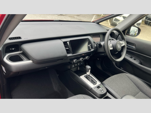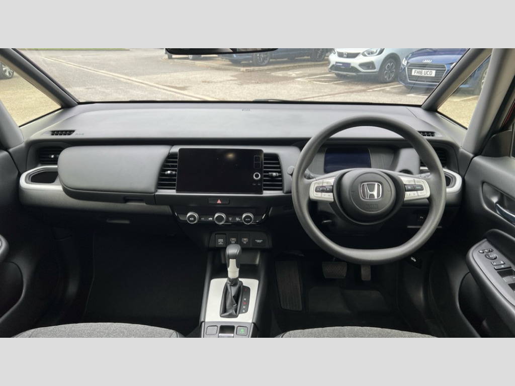 Honda Jazz 1.5 i-MMD Hybrid SR 5dr eCVT Adaptive cruise control, Adjustable speed limiter, Agile handling assist, Bluetooth hands free telephone connection, Econ mode, Electric power steering wheel with variable gear ratio steering, Emergency stop signalling system, Forward collision warning, Front and rear parking sensors, Honda CONNECT with 9" touchscreen, AM/FM/DAB/Apple Carplay and android auto, Idle stop, Intelligent speed limiter, Lane departure warning system, Lane keep assist system, Low speed following, Multi-information display, Road departure mitigation, Traffic sign recognition, Vehicle stability assist, 'Shark fin' mobile antenna, 2x USB Front socket (1 data & 1 charge), 4 speakers, Remote audio controls on steering wheel, Aspheric door mirrors, Auto wipers, Automatic headlights with on/off timer, Coming/leaving home function, Body colour door handles, Body colour door mirrors, Body coloured bumpers, eHEV emblem, Electric adjustable door mirrors, Electric front windows, Electrically folding door mirrors, Heated door mirrors, High beam assist, LED daytime running lights, LED Headlights, LED rear lights, Single exhaust tailpipe, 60/40 split rear bench seat, Cargo net hooks, Climate control air conditioning, Driver and front passenger seat armrests, Driver and passenger front seat pockets, Driver's seat height adjustment, Fabric/leather upholstery, Front accessory power socket, Front head restraints, Front map lights, Front/rear courtesy lights, Isofix child seat restraint mechanism, Isofix points, Magic seat flexibility system, Plating interior door handles, Rear head restraints, Rear parcel shelf, Sunvisors with vanity mirrors, Tilt/telescopic adjustable steering wheel, Tonneau cover, Trunk light, 3x3 point rear seatbelts, Anti-lock braking system (ABS), Brake assist function, Brake hold function, Collision mitigation braking system, Deflation warning system, Driver knee airbag, Driver SRS airbag (single stage inflation), Driver/Front Passenger airbags, Electric parking brake, Front and rear side curtain airbag, Front side airbags, Hill start assist, Passenger SRS airbag cut-off device, Rear side airbags, Whiplash lessening front headrests, Front seat belt with emergency locking retractor, Honda super locks, Immobiliser, Mirrors key fob operation, Remote central locking with 2 remote folding keys, Security alarm, Soft pad leather interior panels, 15" Multi apperance alloy wheels in mat berlina black, Tyre repair kit
