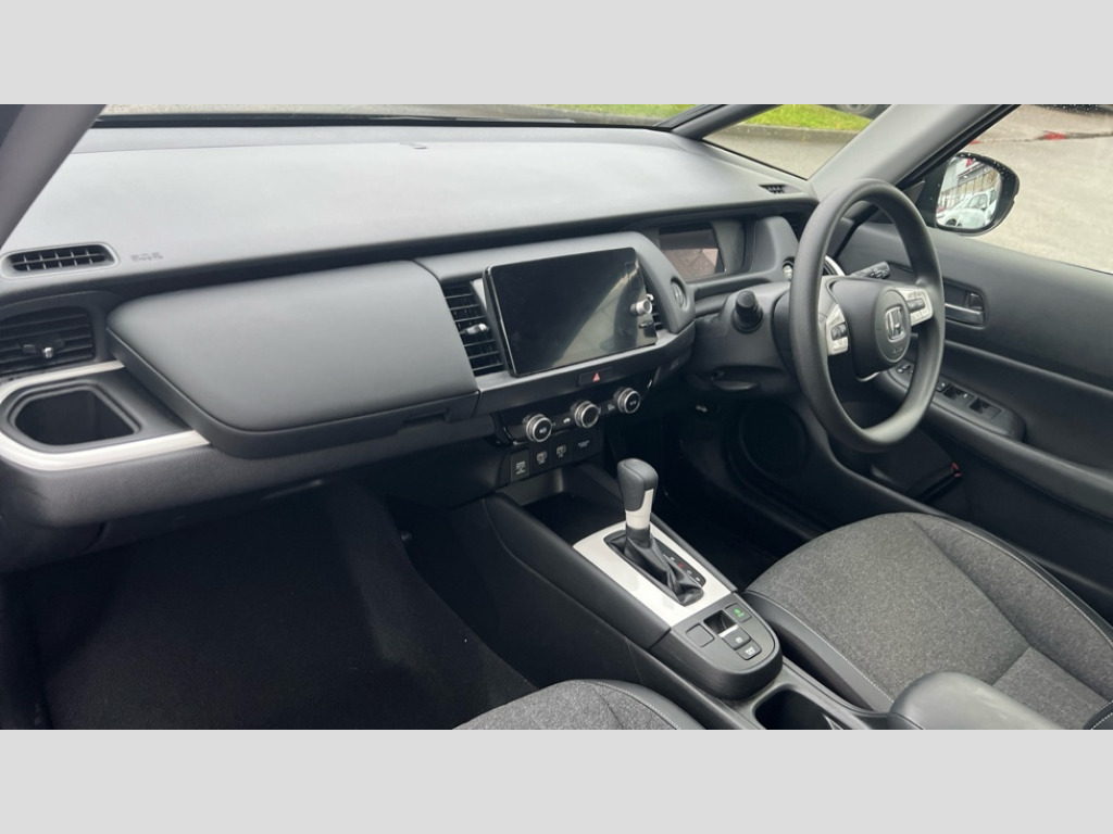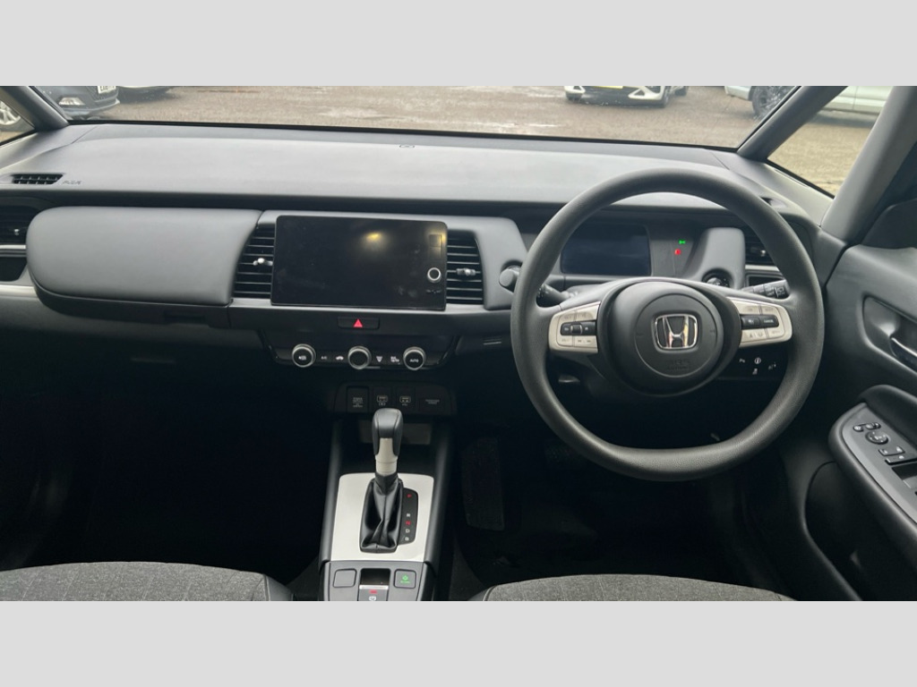Honda Jazz 1.5 i-MMD Hybrid SR 5dr eCVT Adaptive cruise control, Adjustable speed limiter, Agile handling assist, Bluetooth hands free telephone connection, eCall emergency call system, Econ mode, Electric power steering wheel with variable gear ratio steering, Emergency stop signalling system, Forward collision warning, Front and rear parking sensors, Honda CONNECT with 9" touchscreen, AM/FM/DAB/Apple Carplay and android auto, Idle stop, Intelligent speed limiter, Lane departure warning system, Lane keep assist system, Low speed following, Multi-information display, Road departure mitigation, Traffic sign recognition, Vehicle stability assist, 'Shark fin' mobile antenna, 180w Power audio system with 6 speakers, 2x USB Front socket (1 data & 1 charge), Remote audio controls on steering wheel, Aspheric door mirrors, Auto wipers, Automatic headlights with on/off timer, Coming/leaving home function, Body colour door handles, Body coloured bumpers, eHEV emblem, Electric adjustable door mirrors, Electric front windows, Electrically folding door mirrors, Heated door mirrors, High beam assist, LED daytime running lights, LED Headlights, LED rear lights, Rear side wing doors, Rear wiper, Silver headlight extension, Single exhaust tailpipe, Third brake light, 3 seat bench in 2nd row, 60/40 split rear bench seat, Cargo net hooks, Climate control air conditioning, Driver and front passenger seat armrests, Driver and passenger front seat pockets, Driver's seat height adjustment, Fabric/leather upholstery, Front accessory power socket, Front head restraints, Front map lights, Front/rear courtesy lights, Isofix child seat restraint mechanism, Isofix points, Magic seat flexibility system, Plating interior door handles, Rear head restraints, Rear parcel shelf, Single front passenger seat, Sunvisors with vanity mirrors, Tilt/telescopic adjustable steering wheel, Tonneau cover, Trunk light, 3x3 point rear seatbelts, Anti-lock braking system (ABS), Brake assist function, Brake hold function, Child locks on rear doors, Collision mitigation braking system, Deflation warning system, Driver knee airbag, Driver SRS airbag (single stage inflation), Driver/Front Passenger airbags, Electric parking brake, Front and rear seat belt with emergency locking retractor, Front and rear side curtain airbag, Front centre airbag, Front side airbags, Hill start assist, Passenger SRS airbag cut-off device, Rear side airbags, Whiplash lessening front headrests, Honda super locks, Immobiliser, Mirrors key fob operation, Remote central locking with 2 remote folding keys, Security alarm, Soft pad leather interior panels, 15" Multi apperance alloy wheels in mat berlina black, Tyre repair kit