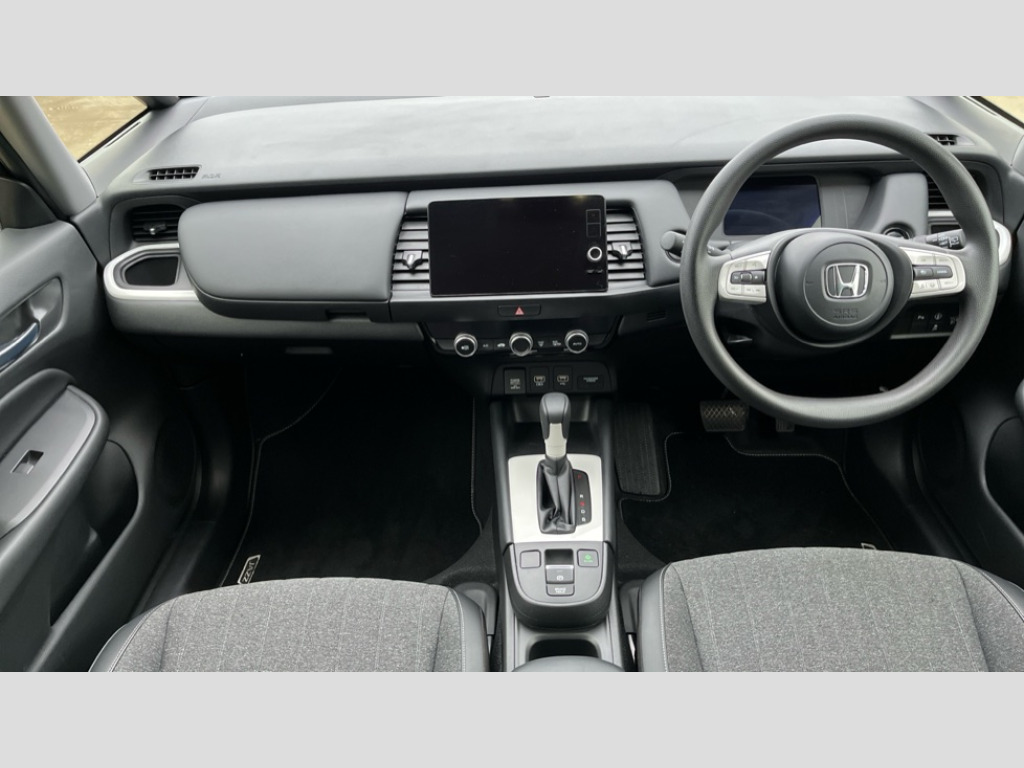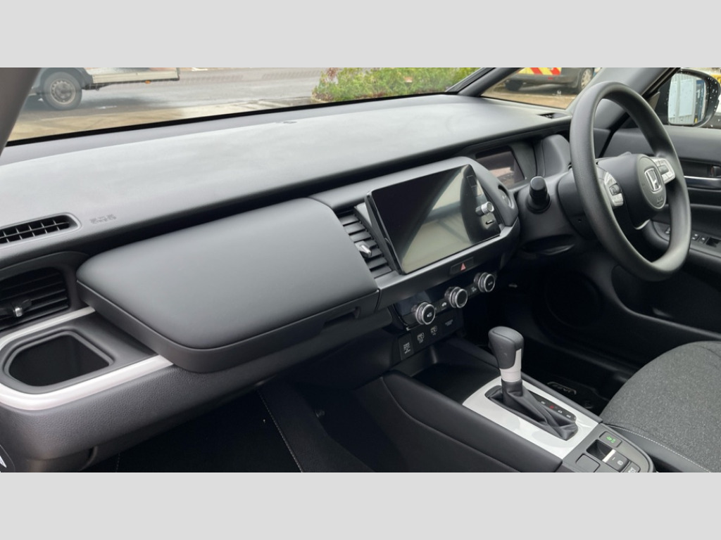 Honda Jazz 1.5 i-MMD Hybrid SR 5dr eCVT Adaptive cruise control, Adjustable speed limiter, Agile handling assist, Bluetooth hands free telephone connection, eCall emergency call system, Econ mode, Electric power steering wheel with variable gear ratio steering, Emergency stop signalling system, Forward collision warning, Front and rear parking sensors, Honda CONNECT with 9" touchscreen, AM/FM/DAB/Apple Carplay and android auto, Idle stop, Intelligent speed limiter, Lane departure warning system, Lane keep assist system, Low speed following, Multi-information display, Road departure mitigation, Traffic sign recognition, Vehicle stability assist, 'Shark fin' mobile antenna, 180w Power audio system with 6 speakers, 2x USB Front socket (1 data & 1 charge), Remote audio controls on steering wheel, Aspheric door mirrors, Auto wipers, Automatic headlights with on/off timer, Coming/leaving home function, Body colour door handles, Body coloured bumpers, eHEV emblem, Electric adjustable door mirrors, Electric front windows, Electrically folding door mirrors, Heated door mirrors, High beam assist, LED daytime running lights, LED Headlights, LED rear lights, Rear side wing doors, Rear wiper, Silver headlight extension, Single exhaust tailpipe, Third brake light, 3 seat bench in 2nd row, 60/40 split rear bench seat, Cargo net hooks, Climate control air conditioning, Driver and front passenger seat armrests, Driver and passenger front seat pockets, Driver's seat height adjustment, Fabric/leather upholstery, Front accessory power socket, Front head restraints, Front map lights, Front/rear courtesy lights, Isofix child seat restraint mechanism, Isofix points, Magic seat flexibility system, Plating interior door handles, Rear head restraints, Rear parcel shelf, Single front passenger seat, Sunvisors with vanity mirrors, Tilt/telescopic adjustable steering wheel, Tonneau cover, Trunk light, 3x3 point rear seatbelts, Anti-lock braking system (ABS), Brake assist function, Brake hold function, Child locks on rear doors, Collision mitigation braking system, Deflation warning system, Driver knee airbag, Driver SRS airbag (single stage inflation), Driver/Front Passenger airbags, Electric parking brake, Front and rear seat belt with emergency locking retractor, Front and rear side curtain airbag, Front centre airbag, Front side airbags, Hill start assist, Passenger SRS airbag cut-off device, Rear side airbags, Whiplash lessening front headrests, Honda super locks, Immobiliser, Mirrors key fob operation, Remote central locking with 2 remote folding keys, Security alarm, Soft pad leather interior panels, 15" Multi apperance alloy wheels in mat berlina black, Tyre repair kit