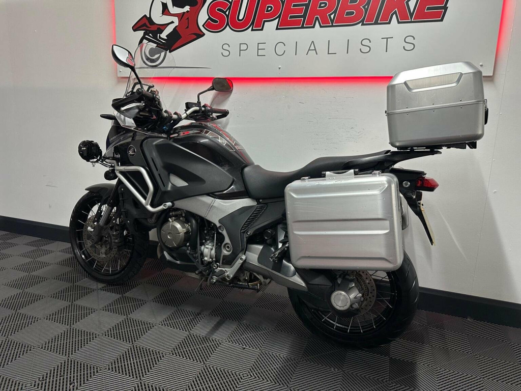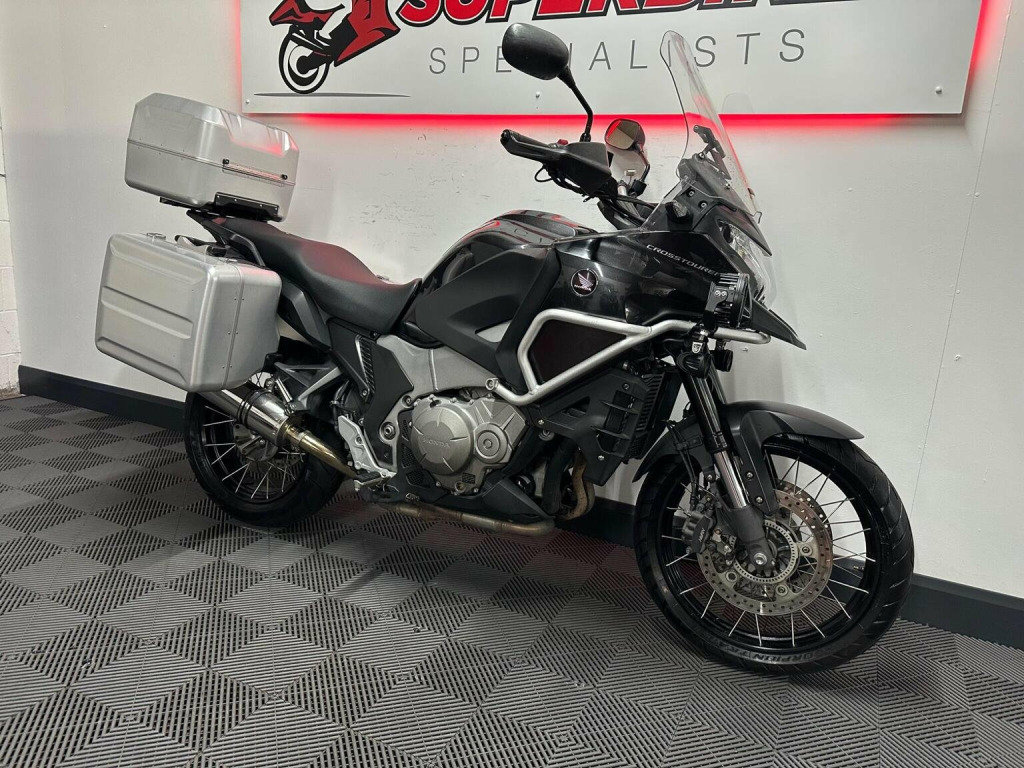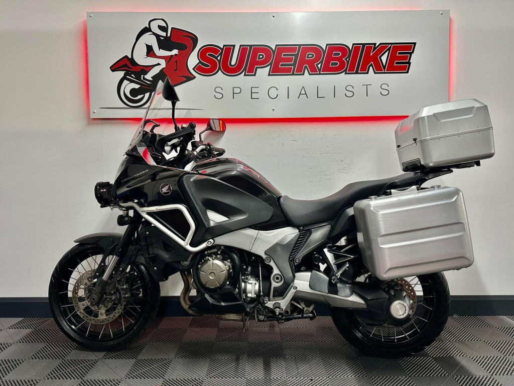 The Honda VFR1200X Crosstourer is an adventure-touring motorcycle featuring a powerful V4 engine with a focus on strong low-to-mid-range torque, advanced Torque Control system for stability, while the bikes rugged chassis, spoked wheels, and adjustable suspension are designed to handle diverse road surfaces and long journeys in comfort. , , Great example that has clearly been maintained with 5 service stamps and self maintenance receipts, all keys, panniers, Delkevic exhaust and Front fogs/ heated grips. , || At Superbike Specialists, we offer a top selection of HPI-clear used motorcycles (unless stated). Our bikes are mechanically prepared by passionate onsite mechanics, with a focus on exceptional customer service. Every bike includes a 30-day warranty, with options to extend to 6 & 12 months from £150.