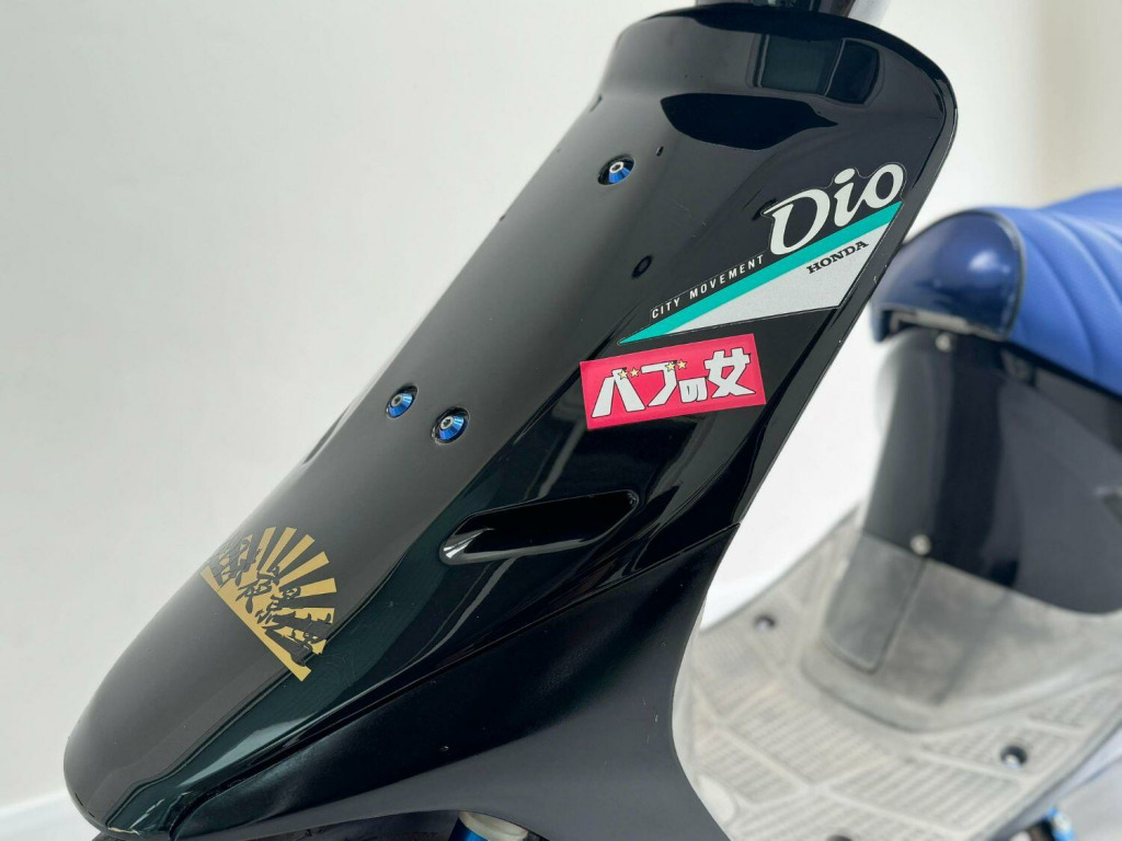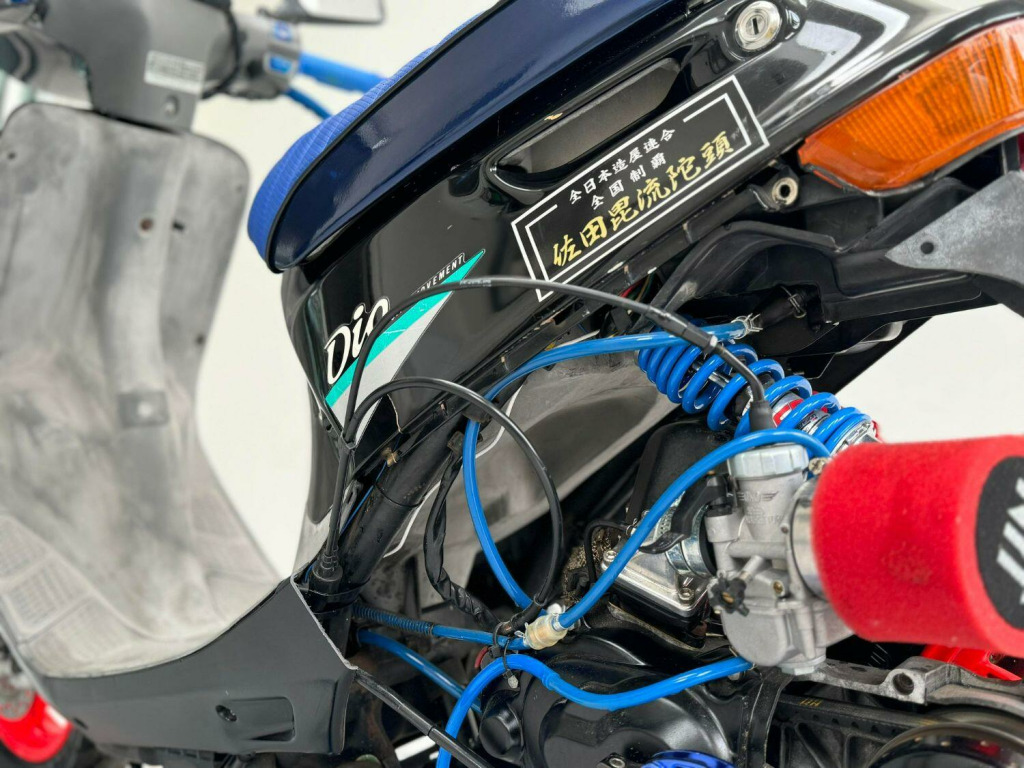 , June 1988 Honda DIO AF18 2 Stroke , , Many modifications, , Description directly from the original owner in Japan , , AF28 Super DIO ZX Engine Replacement Aluminium Bore Up, Kit (78cc) Dedicated, Cylinder Head OKO28mm, [Cylindrical Valve] Carb Oil Pump Flow, , Increase Processing Long engine hanger, Machined aluminium front fork, YSS shock 270mm , AF35 Genuine wheel lamps, Full LED conversion , Seat Reupholstery, KOSO Voltmeter, Tachometer , Napoleon mirror and more , , More modifications that we have likely missed out. Looks and sounds incredible, very impressive performance ,