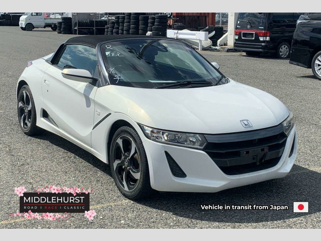 Vehicle in transit from Japan - Due February 2026 , Middlehurst Road Race & Classic present this 2015 Honda S660 Alpha finished in Premium Star White Pearl with only 77,701 km from new. (48,281 miles). This superb targa top sports Kei Car has a turbocharged 660cc 3 cylinder engine paired with a 7 speed CVT automatic gearbox with paddle shift. This particular example is a Japanese auction grade 4.5b and is in immaculate condition both inside and out. It has a set of black & red leather seat covers fitted which can be easily removed if the owner prefers the original black half leather seats. As you can see from the pictures the underside is in amazing rust free condition. — To register your interest or to reserve this lovely little Honda S660 before it arrives in the UK, please speak to our Car Sales Department today. Here at Middlehurst Road Race & Classic, we source the highest quality import vehicles from Japan and have been doing so for over 30 years since the launch of the Nissan Skyline R33 GT-R, in 1995. If you are looking for a particular car in Japan, we will do our absolute best to source it for you.