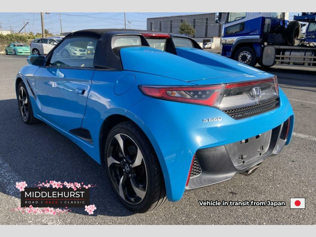 Vehicle in transit from Japan - Due February 2026, Middlehurst Road Race & Classic present this 2017 Honda S660 Alpha finished in Premium Beach Blue Pearl with only 49,737 km from new. (30,905 miles). This superb targa top sports Kei Car has a turbocharged 660cc 3 cylinder engine paired with a 7 speed CVT automatic gearbox with paddle shift. This particular example is a Japanese auction grade 4 and is in immaculate condition both inside and out. As you can see from the pictures the underside is in amazing rust free condition. — To register your interest or to reserve this lovely little Honda S660 before it arrives in the UK, please speak to our Car Sales Department today. Here at Middlehurst Road Race & Classic, we source the highest quality import vehicles from Japan and have been doing so for over 30 years since the launch of the Nissan Skyline R33 GT-R, in 1995. If you are looking for a particular car in Japan, we will do our absolute best to source it for you.