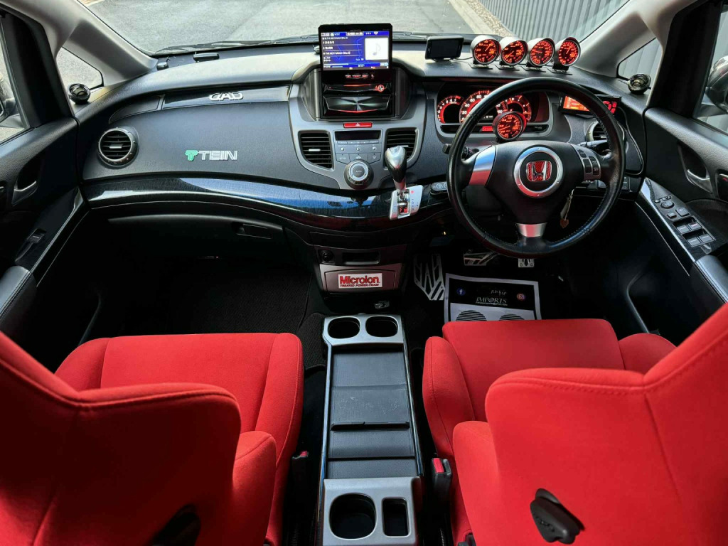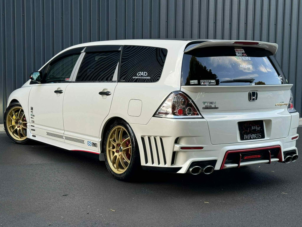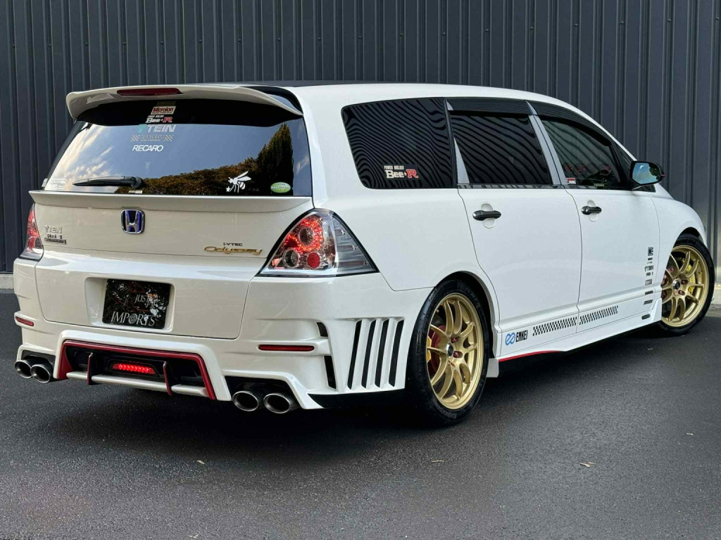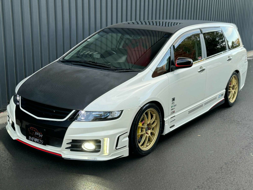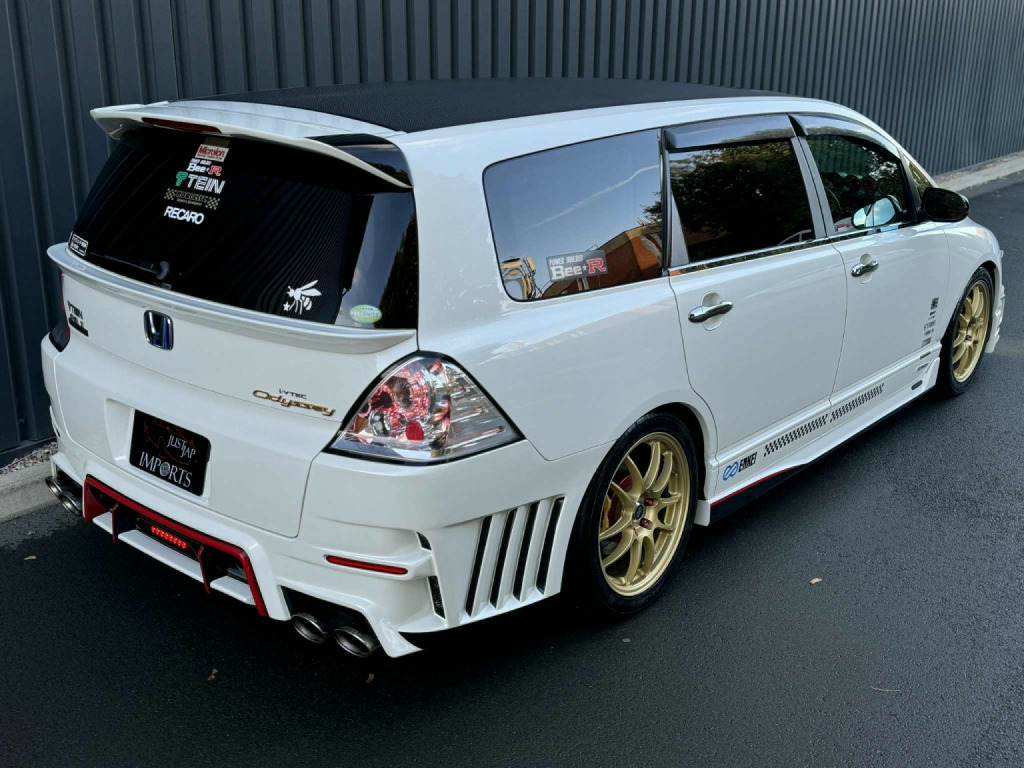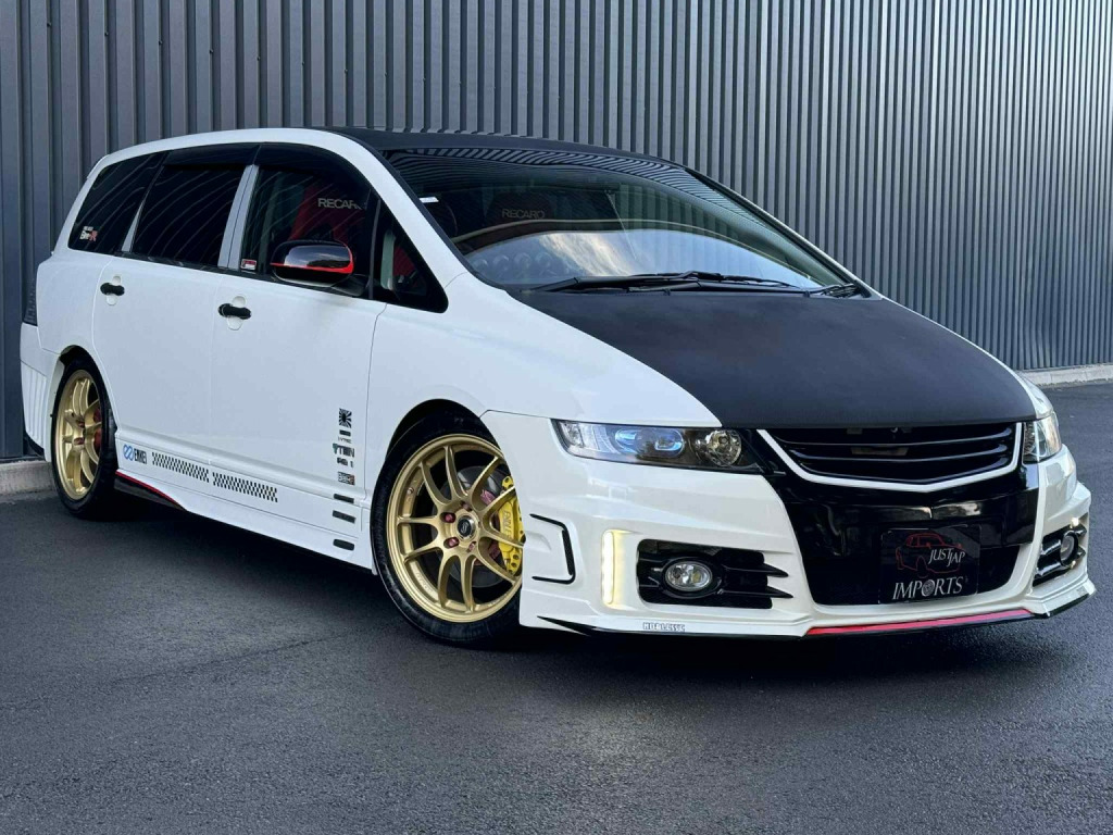 Fresh Import just in from Japan, fully UK registered!, , July 2004 Honda Odyssey RB1 Absolute, , A very rare chance to own a very unique Odyssey RB1. Built with no expense spared, thousands spent on modifications from renowned tuning companies in Japan. , Auction grade 4/B, **One owner car from new**, Full-service history, Reliable K24A engine with auto gearbox, High Spec Absolute model, Genuine 85,000 kms (53,000 miles), 7-Seater (Rear seats fold into the floor for extra boot space), Optional electric sunroof, , Exterior Modifications on this RB1 include:, , Full aero from Noblesse A renowned VIP tuning and aero specialist company in Japan, , Complete Noblesse front bumper with Noblesse optional front lip (gloss black centre and foglight surrounds) Daytime running lights operated from a switch inside the vehicle, , Noblesse front grill in gloss black, , Optional Honda Modulo side skirts, , Complete Noblesse rear bumper with centre diffuser. Centre brake light which acts as a fog light operated from a switch, , Dry carbon wrapped bonnet and roof, , Mirrors in gloss black with red highlights to match the aero, , Crystal LED rear tail lights, , Illuminating rear Honda Badge, , Genuine 18 Enkei PF01 alloy wheels finished in gold. Enkei centre caps and Enkei wheel nuts. Wrapped in matching Bridgestone Potenza semi slicks all round, , Various decals/badges on the exterior which can be removed if not to your taste, , Engine and suspension:, , Factory low mileage K24A engine and auto gearbox (optional manual mode from the gear selector), , HKS air intake kit, , Blitz radiator cap, , Cusco front tower brace, , Tein adjustable coilovers (rides nice and smooth), , Endless big brake conversion! Twin pot front calipers with floating discs. Centres colour coordinated with the wheel nuts. Calipers finished in yellow, , Endless front and rear brake pads, , Full Noblesse quad exit stainless exhaust system. Noblesse engraved rear tips. , Interior changes and accessories:, , Absolute model black interior trim and gloss black inserts, , Genuine Red Recaro front seats on Recaro seat rails. (Seats are sliding and reclining), , Rear seats fitted with red leather seat covers (properly done, looks the part), , Complete Defi gauge install (5 gauges in total with defi link controller), , Defi water temp gauge, Defi oil temp gauge, Defi oil pressure gauge, Defi fuel pressure gauge, Defi intake pressure gauge, , Blitz electronic throttle controller, , Apexi RFC neo (fuel management controller), The AFC Neo is designed to fine tune and squeeze power out of existing engine setups by allowing the user to modify the fuel curve with precision accuracy, , Complete Pioneer/Carrozzeria audio set up including headunit, tweeters, speakers, rear sub and amplifier. , Other factory spec includes:, , Factory privacy rear glass, Factory wind deflectors, Climate control and rear heaters, Factory HIDs, Cruise control, Steering buttons/controls, Usual extras include central locking, A/C, electric folding heated mirrors etc, , Overall, a truly stunning RB1 odyssey that has had a fortune spent on it by the previous owner in Japan who owned this since new. It is very difficult to find modified low mileage examples like this where the work has been carried out to such a high standard using quality parts from brands that are highly spoken of here in the UK. This is one for the Honda enthusiasts with a growing family or simply for someone who is looking for a unique MPV which offers day to day practicality and a true show car for the weekends. , Needs to be seen to be appreciated, you will not find another like this. Not only it is in exceptional condition throughout, it also retains a complete paperwork file with full-service history and X2 keys. Barely any imperfections to report and completely rust-free underneath. , Many more detailed pictures available including a full walk around video. More pictures also on our website, , Delivery service available throughout the UK, please provide us your postcode for an instant quote (full payment required beforehand), , £360 road tax per year, , All our vehicles can be secured with a 10% deposit, , Genuine enquires only, please no dreamers/timewasters, contact 07973138080 or send us an email, , Viewing strictly by appointment only