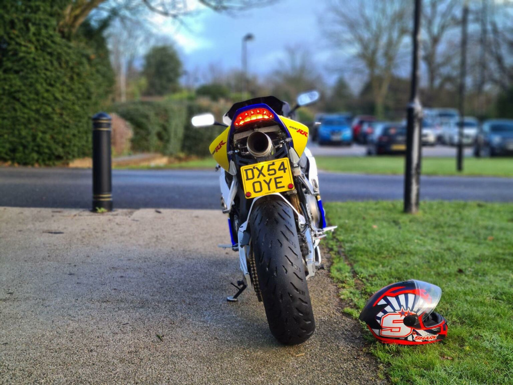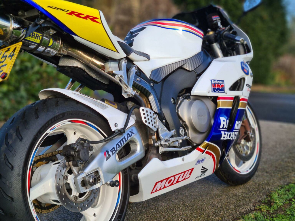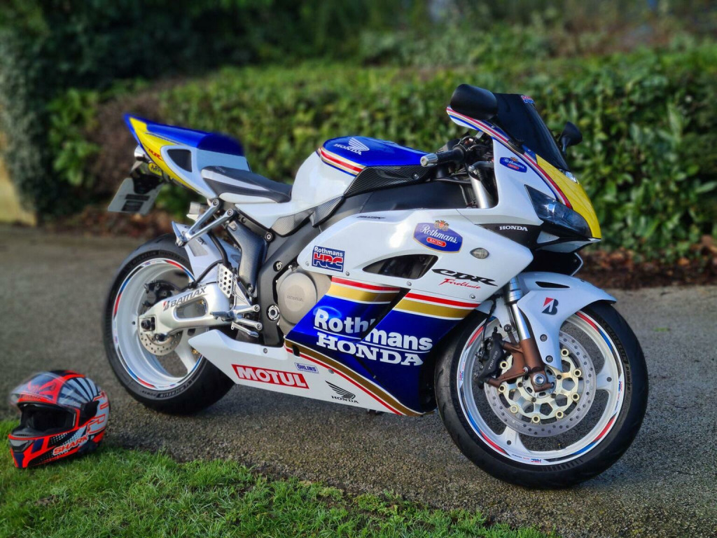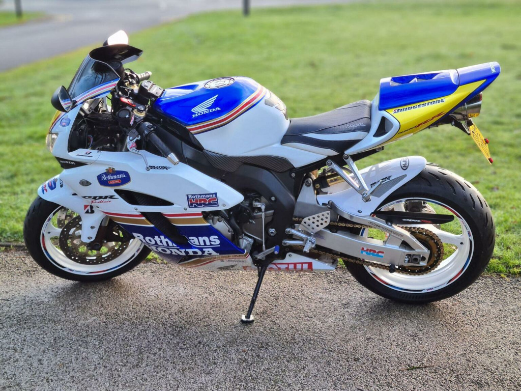 WHATSAPP US ANYTIME 07392672530!, , * FINANCE FROM ONLY £25.14 A WEEK * NATIONWIDE DELIVERY AVAILABLE. This ABSOLUTELY IMMACULATE AND ULTRA RARE 2004 Honda CBR1000RR FIREBLADE ROTHMANS is our favourite superbike to stock here at Atec Garage Motorcycles! , I cant stress enough how clean this bike is, It looks like it is brand new!!, And is one serious head turner!. The RR5 fireblade needs no introduction, and is absolutely LEGENDARY, and its easy to see why!, evolved from the first superbike of the 90s, Honda have been making the blade for years and have seriously perfected every inch of it. The blade is stunning to look at, Has more power and torque than you can ever use, Rides like a superbike and tourer combined and has a superior build quality that is second to one, as an owner of one myself, i can say, These Fireblades are the top of the superbike tree!. So this bike has only covered 17k miles from new and comes with SERVICE HISTORY (inc valve clearances at 16k), 2 KEYS, A COMPREHENSIVE 6 MONTH WARRANTY AND A FULL 12 MONTH MOT, The CBR has also just been serviced by ourselves and is fitted with NEW MICHELIN PILOT POWER 5 TYRES so its already to ride away today. On the road the Honda is simply perfect, The clutch is light, the brakes are sharp, it goes like a rocketship and the bike handles like its on rails. The bodywork is in AS NEW condition and finished in RARE ROTHMAN DECALS with FRESH POWDER COATED WHITE WHEELS!. The Blade has more extras than i have ever seen including : CARBON FIBRE TRIMS, UPGRADED HID HEADLIGHTS, LED INDICATORS, AFTERMARKET EXHAUST, SMOKED SCREEN, CUSTOM SEATS, NEW GRIPS AND BAR ENDS, ADJUSTABLE LEVERS AND GEAR INDICATOR. You seriously will not find a better example than this one, And i dont think it will be here for long!. !!Check out the VIDEO tab at the top!!, MORE PICS AND INFO ON OUR WEBSITE AT WWW.ATECGARAGE.CO.UK.---OUR STOCK ROTATES ON AND OFF AUTOTRADER WEEKLY---- SO PLEASE CHECK OUR WEBSITE IF THE BIKE YOU WANT ISNT ON AUTOTRADER AS IT STILL MAY BE FOR SALE ----LOTS MORE STOCK AT WWW.ATECGARAGE.CO.UK