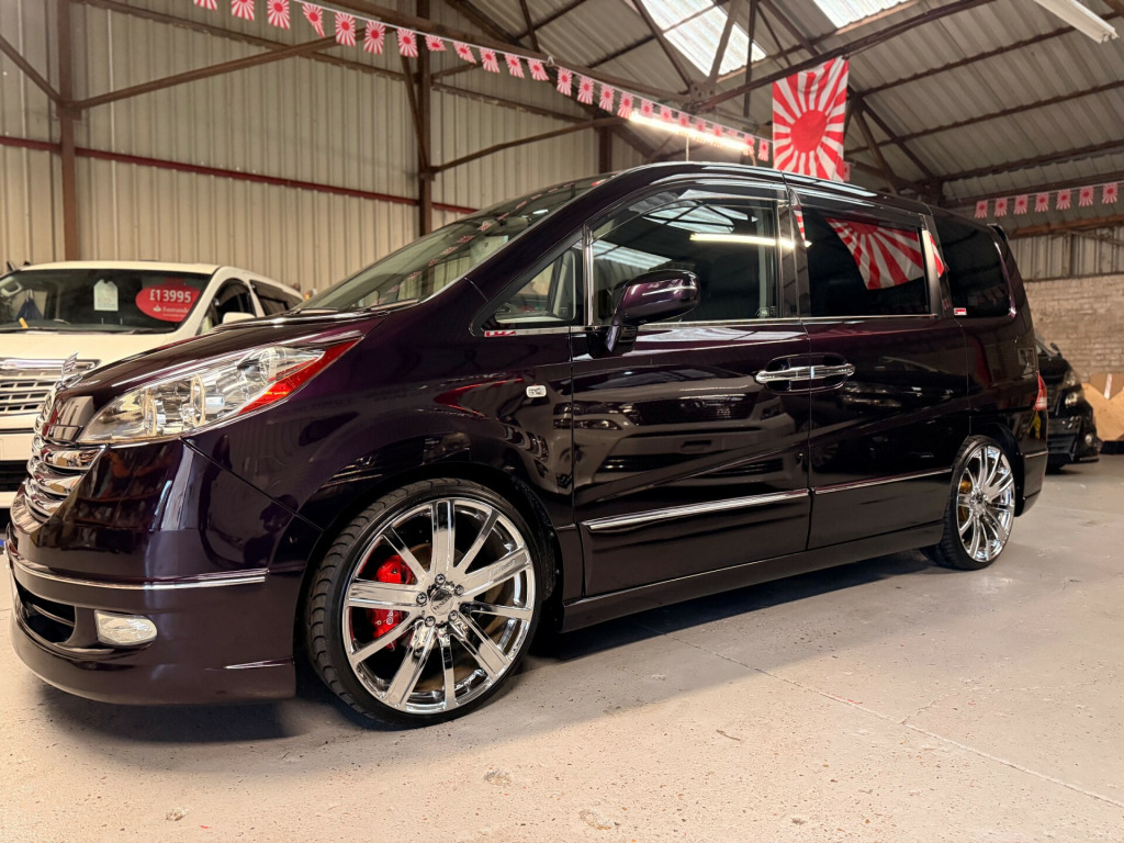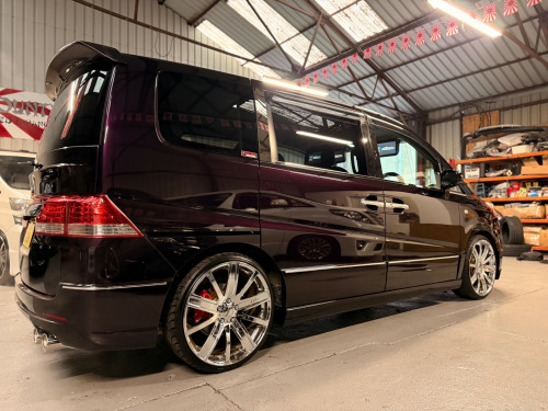 Honda Stepwagon 2.0 IVTEC Automatic G.L.S, Finished in Stunning Unmarked Metallic Purple Paintwork, Full Aero body kit including front and rear spoilers, side door mouldings and boot spoiler, Full l.e.d light conversion including front Angel light headlights, Rear full l.e.d lights, Unmarked 20'' Venerdi Chrome Alloys, Full Air Ride Suspension. Brembo brake covers, Bonnet spoiler, Noblesse Quad Exhaust System, Full chrome pack including door rubbers and door mouldings, Only Covered 13,000 Miles From New, 8 Seater, 8 unmarked black leather look seat covers, Full In-car entertainment system including Kenwood speakers and sub, Front sun blinds have been changed to twin monitors, headrest monitors, UK Stereo system, Full dark wood pack including dash and door covers, This Stepwgn has been a show car in Japan, only covering 13,000 Miles, All the standard new parts come with the car including Front and Rear Lights, Full Standard Suspension, Sun blinds, Exceptional Condition The cleanest RG Stepwagon in the U.KNationwide Delivery Service Available 13,000 Miles r conditioning, bluetooth connection, climate control, colour satnav, door mirrors electrically foldable, full leather, satellite navigation, usb/ipod interface, xenon headlamps, parking camera, abs, air bag, child locks, isofix child seat anchor points, passenger airbag, twin air bags, alarm, anti-theft system, central locking, keyless entry, privacy glass, remote central locking, electric front windows, electric mirrors, electric sliding doors, electric windows, rear electric windows, 3rd party sound system, cd player, radio, video entertainment system, front armrest, front head restraints, height adjustable drivers seat, folding rear seats, rear armrest, rear headrests, 2 zone climate control, alloy wheels, auto lighting, body coloured bumpers, colour coded body, led 3rd brake light, led foglights, led headlights, led indicator lights, led rear lights, metallic paintwork, rear spoiler, tyre repair kit