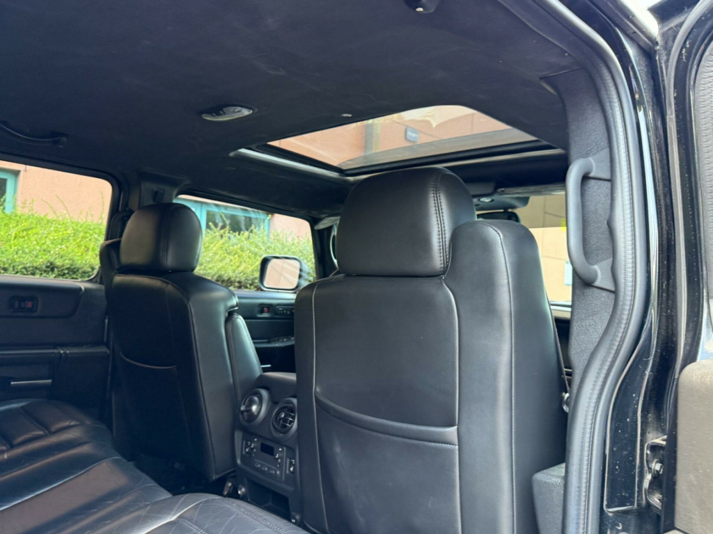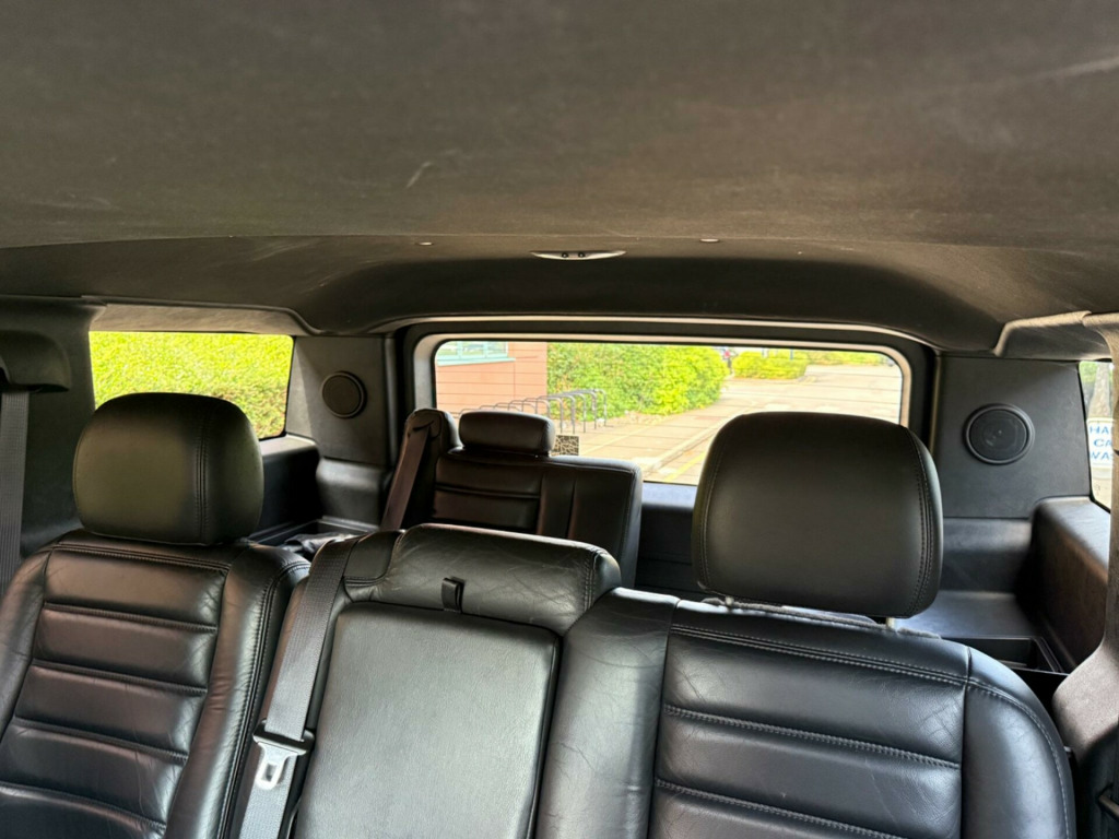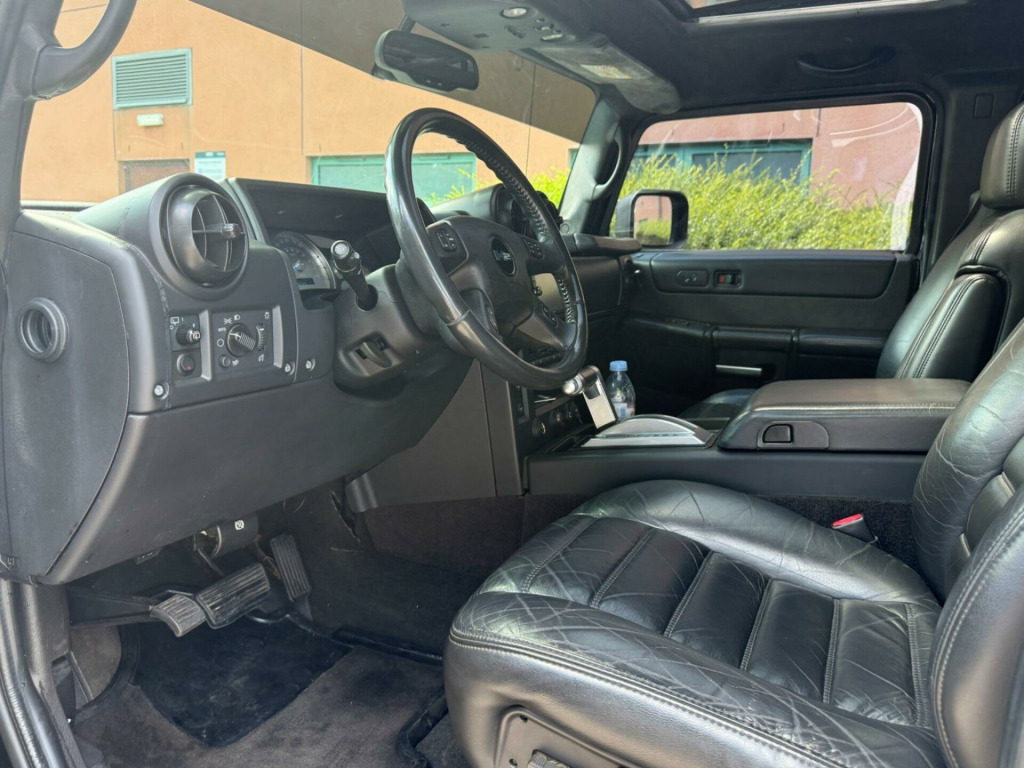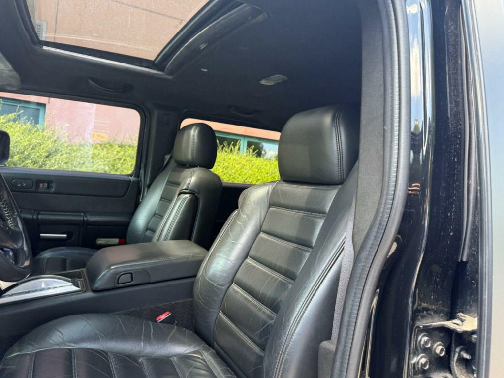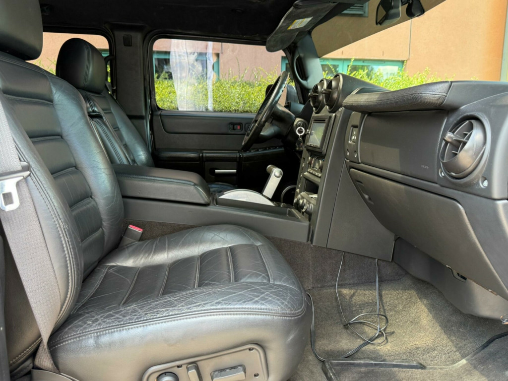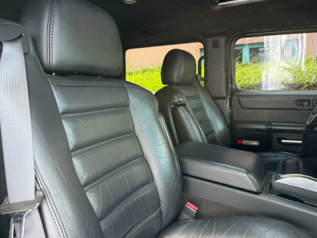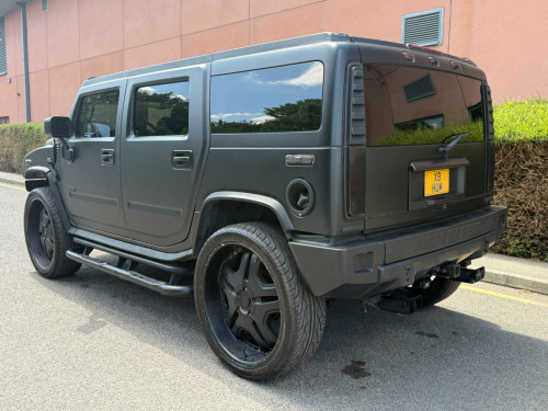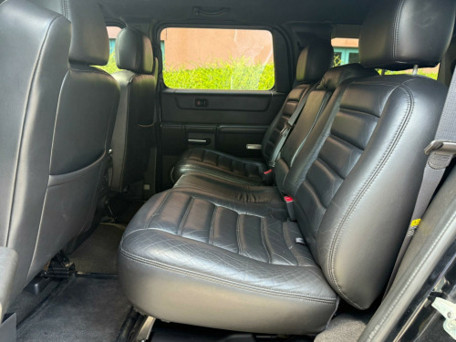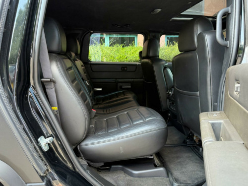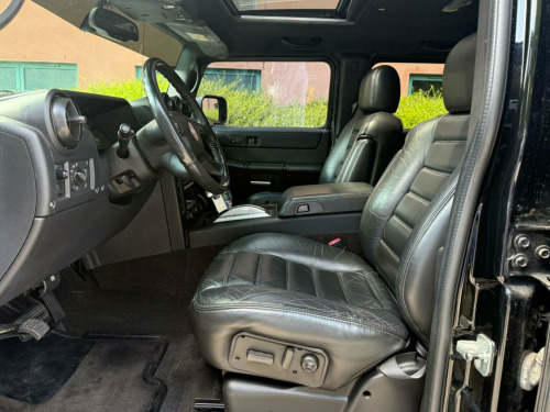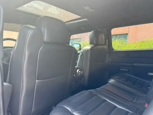 The 2004 Hummer H2 V8 Adventure is a robust four-wheel-drive vehicle. With its 6.2L petrol engine, this Hummer H2 Adventure trim offers a blend of ruggedness and distinctive styling.The Hummer H2's design makes it stand out on the road. The four-wheel-drive system enhances its capability on various terrains. This vehicle is a unique choice for those who appreciate a bold presence and dependable performance. justable steering column/wheel, air bag driver, air bag passenger, alarm, alloy wheels (17in), anti-lock brakes, armrest, ashtray/lighter, bumpers, central door locking, centre rear seat belt, child locks, climate control, cruise control, electric windows (front/rear), electronic stability programme, head air bags, head restraints, immobiliser, in car entertainment (radio/cd/mp3/dvd), mirrors external (electric/heated/folding/auto dimming), mirrors internal, power socket, power-assisted steering, seat - isofix anchorage point, seat belt pre-tensioners, seat height adjustment (electric driver/passenger), seats heated (driver/passenger/rear), seats split rear, spare wheel (full size), speakers, steering wheel leather, steering wheel mounted controls (audio), sunroof electric, traction control system, trip computer, upholstery leather