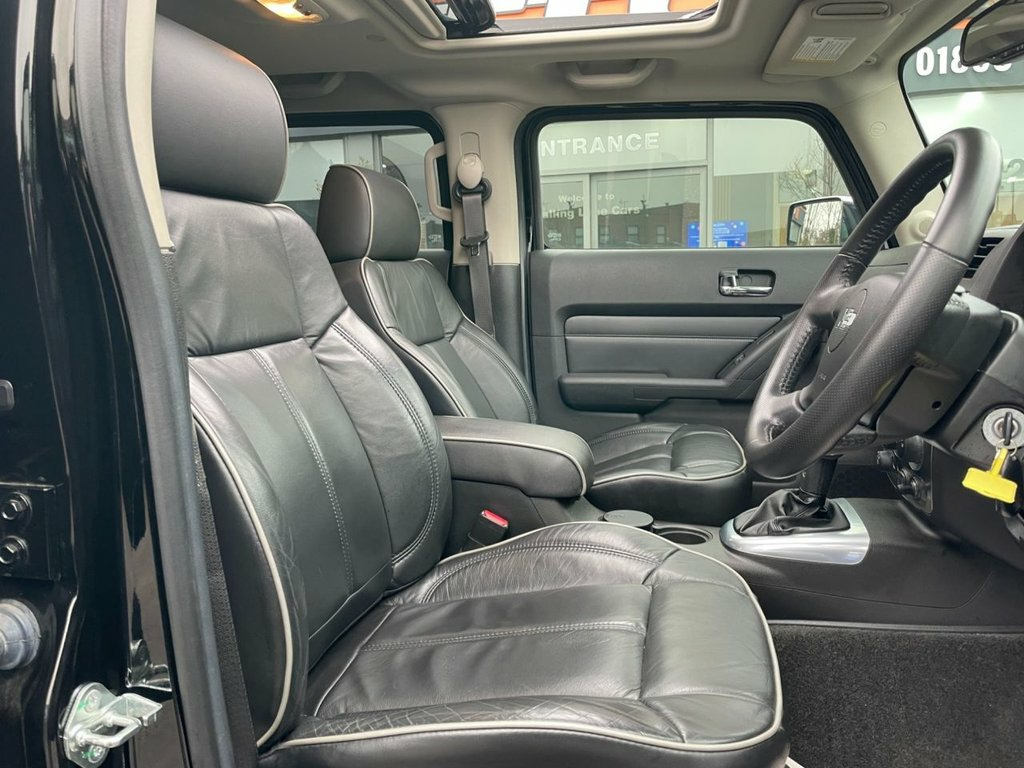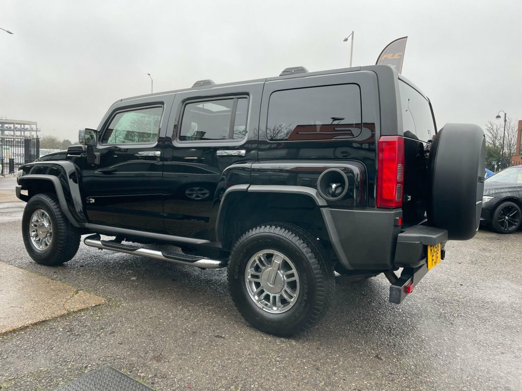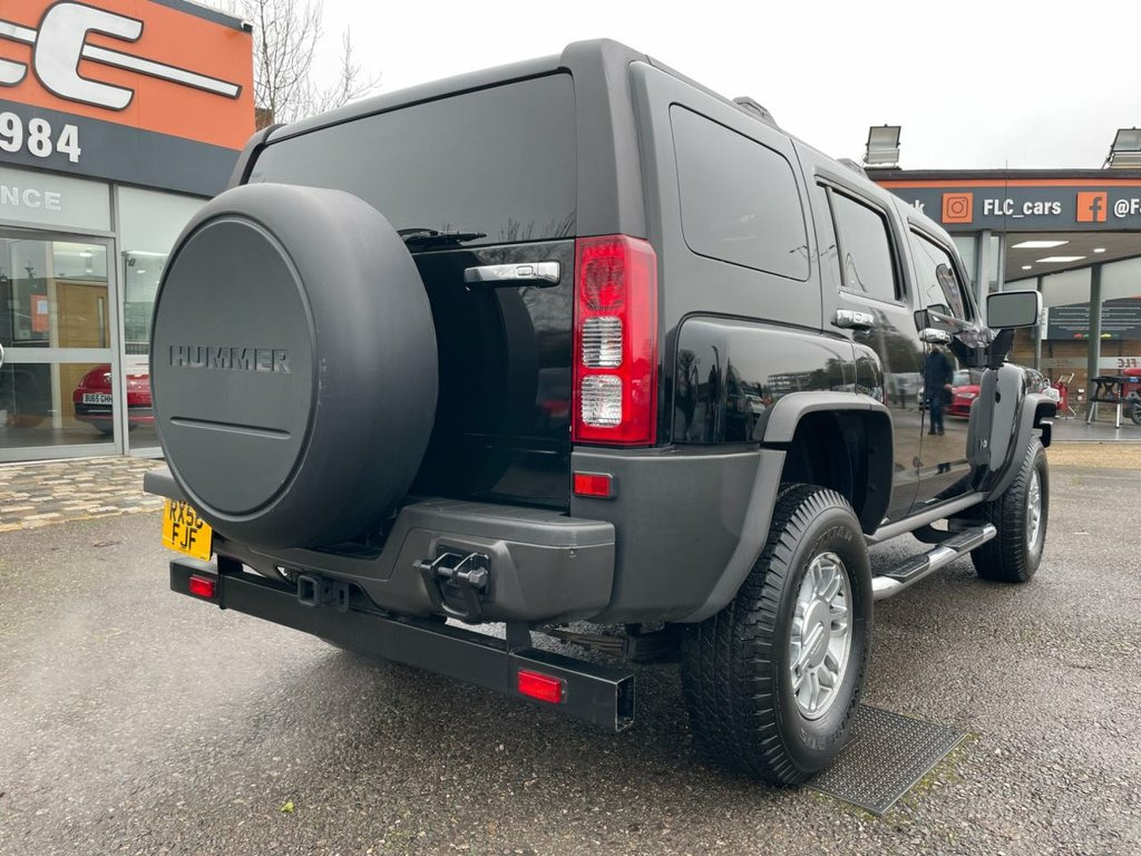 FLC is proud to present this Hummer H3, an iconic and highly distinctive SUV that offers exceptional presence and rugged capability. Finished in Metallic Black and sitting on Hummer Alloy Wheels, this H3 stands out with its bold design, muscular proportions, and unmistakable character. What truly sets this example apart is its exceptionally low mileage and just one owner from new, making it a rare and desirable find. It is presented in excellent overall condition, supported by Service History with the most recent carried out in January 2026, a valid MOT until January 2027, and shows only minor age-related blemishes. Solid, confident and purposeful to drive, the H3 delivers a unique on-road experience with a commanding driving position and reassuring presence. Its robust build quality and dependable engineering make it equally suited to everyday use or more adventurous journeys, offering a level of durability and character rarely found in modern SUVs. Inside, the interior remains clean, well-kept and in keeping with the vehicle's 1 ownership history. Featuring Full Leather Interior, Front Heated Seats, Electric Opening Sun Roof, Electric Adjustable Mirrors and Chrome Accents with Chrome Side Bars, it offers comfort and practicality in a spacious, functional environment. The condition of the interior further reflects how carefully this vehicle has been owned and maintained. All part exchanges considered – contact FLC today to arrange a viewing. THIS HUMMER IS ONE PRIVATE OWNER UK REGI, RIGHT HAND DRIVE, Metallic Paint, Power Sliding Glass Sunroof, Upholstery Leather, Cruise Control, Tinted Glass, Adjustable Steering Column/Wheel, Air Bag Driver, Air Bag Passenger, Air Bag Side, CD Player with MP3 Playback, Central Door Locking, Centre Rear Seat Belt, Chrome Roof Crossbars, Chrome Tubular Assist Steps, Electronic Stability Programme, Front Fog Lights, Head Restraints, Heated Rear Screen, Immobiliser, In Car Entertainment (Radio/CD/MP3), Mirrors External, Mirrors Internal, Monsoon 7-Speaker System, Power Socket, Power-Assisted Steering, Seat - ISOFIX Anchorage Point (Rear), Spare Wheel (Full Size), Traction Control System, Windscreen