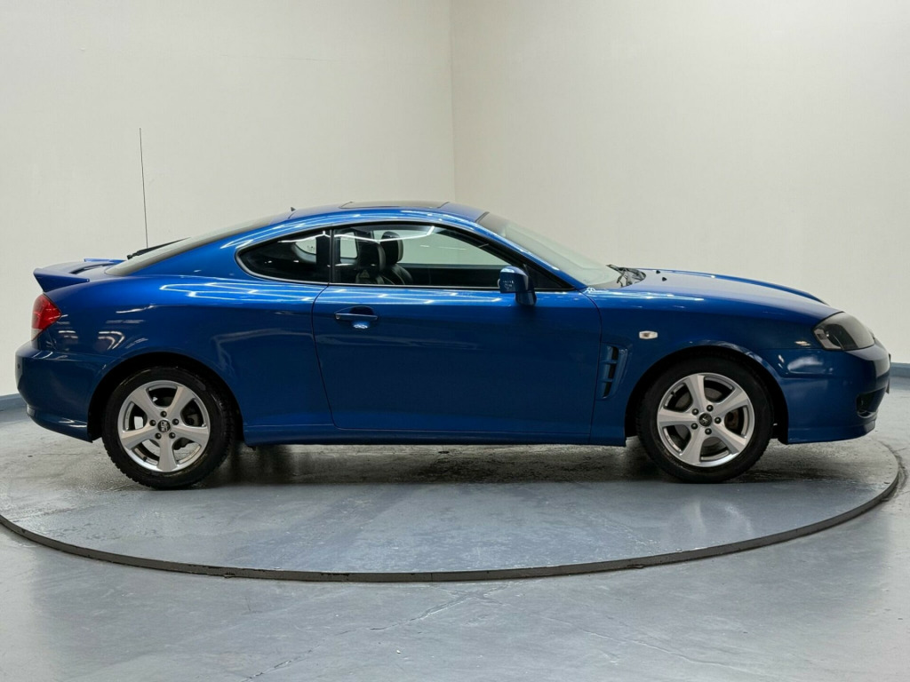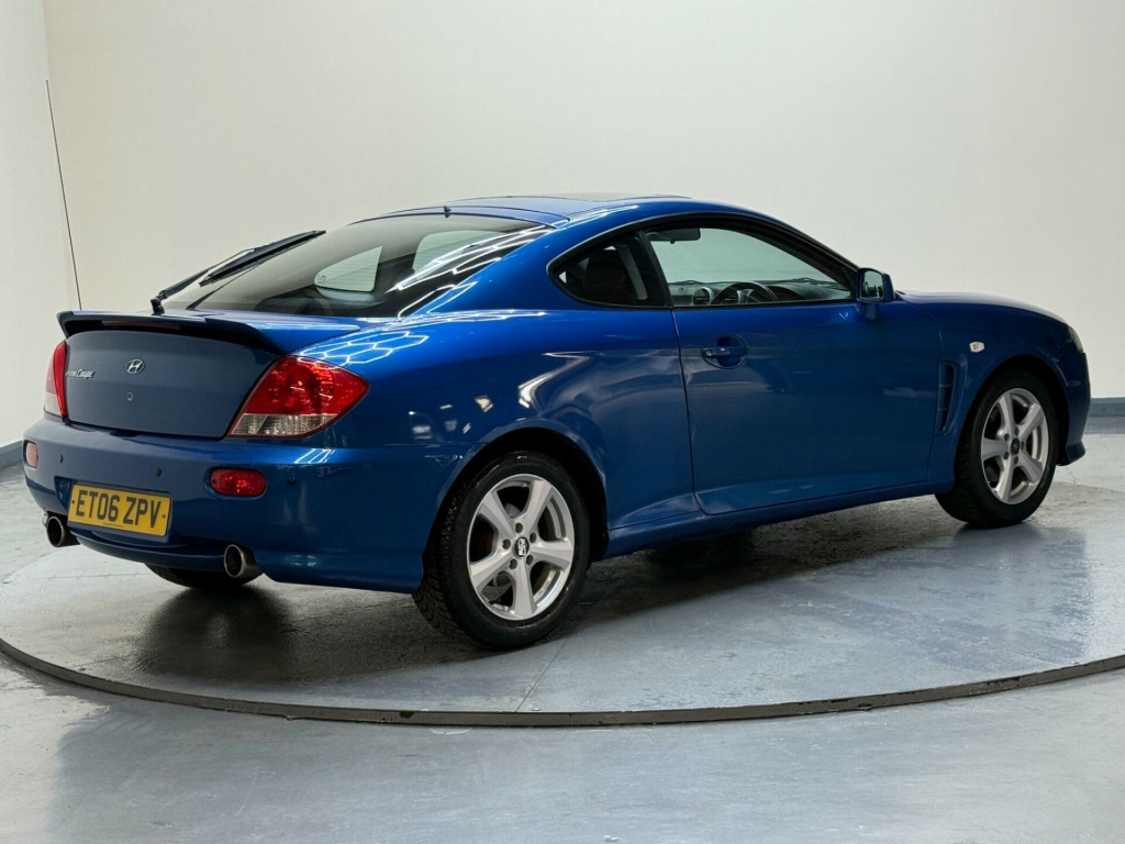 STUNNING BLUE WITH BLACK LEATHER - 4 PREVIOUS OWNERS - SERVICE HISTORY WITH 13 SERVICE STAMPS - HPI CLEAR - 2 KEYS - MOT UNTIL JULY 2026 - ULEZ COMPLIANT - PART EXCHANGE WELCOME - NATIONWIDE DELIVERY AVAILABLE - VIEWING BY APPOINTMENT 7 DAYS A WEEK - CALL US DIRECT ON 07910849405 - black leather interior, central locking, electric windows, electric mirrors, electric sunroof, power steering, air conditioning, radio, cd player. This 2006 Hyundai Coupe SE combines sporty styling with everyday practicality. Powered by a responsive 2.0L petrol engine, this Coupe delivers a smooth and engaging driving experience. The SE trim adds a touch of sophistication to this stylish vehicle. The Hyundai Coupe SE stands out with its impressive fuel economy of 33 mpg, meaning fewer trips to the petrol station and more money in your pocket. It also falls into a low insurance group, making it an affordable option for many drivers. The surprisingly large boot space sets it apart from other coupes, offering ample room for luggage, shopping, or whatever you need to carry. Furthermore, its low CO2 emissions mean you can drive with a clear conscience, a rare car in excellent condition for its age, ulez and caz compliant