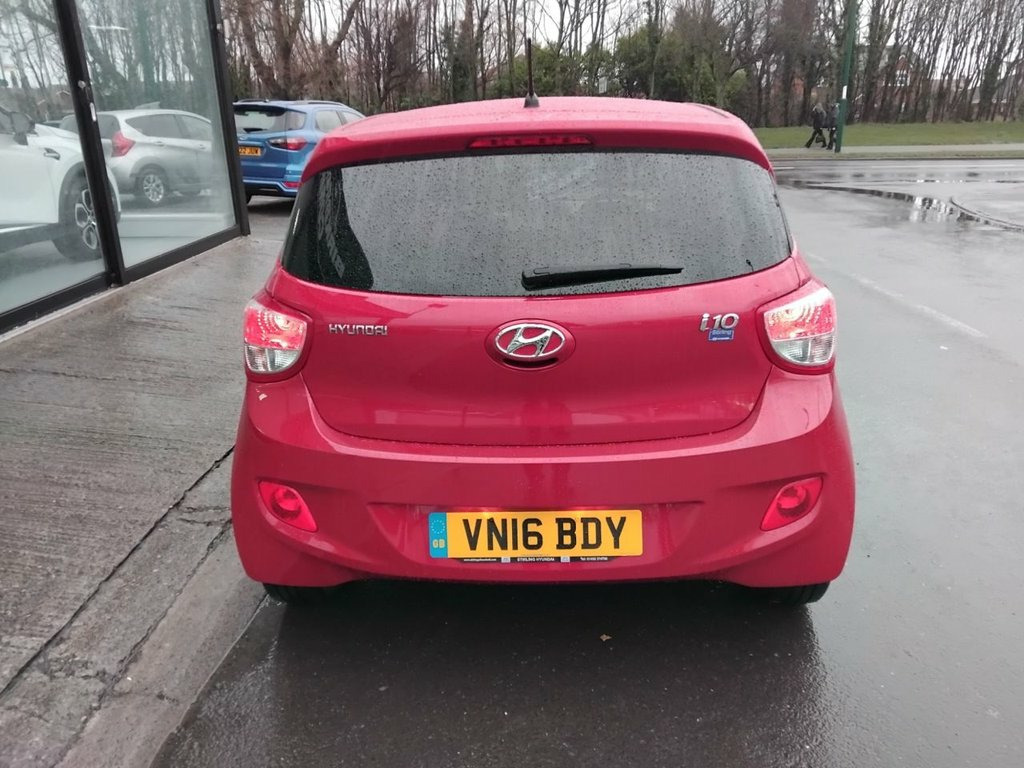 AVAILABLE AT OUR MARSKE SITE, 105 REDCAR ROAD, MARSKE TS11 6HU BIRKBROW MOTOR COMPANY AT MARSKE IS DELIGHTED TO OFFER THIS BEAUTIFULLY PRESENTED 2016/16 PLATE HYUNDAI I10 1.0 GO! 5 DOOR HATCH IN PASSION RED, ONE OWNER FROM NEW AND ONLY 15,422 MILES COVERED, SPEC INCLUDES FRONT FOG LIGHTS, LED DAYTIME RUNNING LIGHTS, FRONT AND REAR ELECTRIC WINDOWS, ELECTRIC DOOR MIRRORS, REMOTE CENTRAL LOCKING, AIR CONDITIONING, CD/MP3 RADIO WITH BLUETOOTH, USB AND AUX CONNECTIONS, CRUISE CONTROL WITH SPEED LIMITER, REAR PRIVACY GLASS, ONLY GROUP 2A INSURANCE, EXCELLENT ECONOMY WITH 60.1 MPG, ONLY £20 A YEAR ROAD TAX, IDEAL FIRST CAR, FINANCE ARRANGED 12V Power Outlet - Front x2, Bluetooth Connectivity with Voice Recogn, RDS Radio-CD Player with MP3 Compatibili, Speakers x2, USB and AUX Connections, 15in Steel Wheels, Black B Pillar, Door Handles - Body Coloured, Door Mirrors - Body Coloured, Electric Adjustment and Heated Door Mirr, Electric Windows - Front and Rear, GO! Badge, One Touch Down Drivers Window Control, Rear Privacy Glass, Rear Spoiler with Integrated Brake Light, Side Body Moulding - Grey, Space Saver Emergency Spare Wheel, Adjustable Head Restraints, Air Conditioning, Blue Stitching on Steering Wheel and Gea, Bottle Holders - Front Centre Console an, Bottle Holders - Rear Door, Courtesy Lights, Driver and Passenger Sun Vis