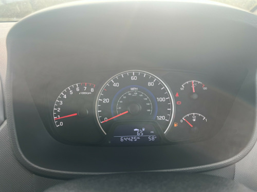 This 2018 Hyundai i10 1.0 Go SE 5dr is a stylish and efficient hatchback that has only 64423 miles on the clock. Powered by a petrol engine, it is ULEZ compliant and comes with MOT a new MOT on sale.With 5 seats and 5 doors, this car is perfect for both city driving and longer journeys. The previous registered keeper(s) have taken excellent care of this vehicle, and it includes features such as a 7'' touch screen navigation system, Apple CarPlay/Android Auto connectivity, Bluetooth system, and cruise control with a speed limiter for added convenience. Don't miss out on the opportunity to own this reliable and well-equipped car. touch screen navigation, apple car play/android auto, bluetooth system, cruise control + speed limiter, pas, trip computer, vehicle stability control (vsc), 4 speakers, dab digital radio, rds radio with mp3 player, steering wheel mounted controls, usb/aux input socket, black bodyside mouldings, black finish on b pillars, body colour door handles, body coloured bumpers, daytime running lights, electric front windows, electric rear windows, electrically adjustable and heated door mirrors, front intermittent wash wipers, gloss black door mirrors, privacy glass, rear spoiler, rear wiper, 12v power outlet - front, 60/40 split folding flat to floor rear seats, air conditioning, black headlining, cloth upholstery, courtesy lights, driver + passenger vanity mirrors, driver, driver/passenger sunvisors with ticket holders, front and rear bottle holders, front door pockets, front/rear adjustable head restraints, height adjustable steering column, isofix child seat preparation, leather gearknob, leather steering wheel, luggage compartment lighting, rear door pockets, 3x3 point rear seatbelts, abs/ebd, brake assist function, childproof rear door locks, curtain airbags, driver/front passenger airbags, electronic stability control, front and rear seatbelt reminder, front seatbelt pretensioners, front side airbags, passenger airbag deactivate switch, traction control, tyre pressure monitoring system, immobiliser, perimeter alarm, remote central locking, speed sensitive auto door locking, 14'' alloy wheels, space saver spare wheel, 14'' Alloys