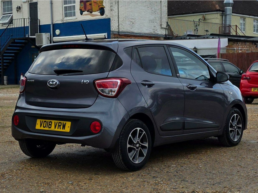 This 2018 Hyundai i10 GO! SE presents an exceptional opportunity with its remarkably low mileage of just 23,700 miles, a clear vehicle history check, and a full service history. This Euro 6 compliant 1.0L petrol model is offered with a 12 month MOT for your peace of mind. Inside, you'll find a 7in touchscreen satellite navigation system with TMC, Mapcare, and LIVE Services, seamlessly integrating with both Android Auto and Apple CarPlay. Stay comfortable with manual air conditioning and enjoy effortless connectivity thanks to Bluetooth.The Hyundai i10 GO! SE stands out with its impressive fuel economy, achieving up to 60 mpg, which is significantly better than many other vehicles in its class. Furthermore, its low insurance group and low CO2 emissions make it a very economical choice for everyday driving, offering substantial savings on running costs compared to similar cars. v power outlet - front console, 14in alloy wheels, abs - anti-lock brake system, air conditioning - manual, airbags - front - front side and curtain airbags, alarm - thatcham category 2, bas - brake assist system, black b pillar, bluetooth connectivity, bottle holders - front centre console - front and rear doors, bumpers - body coloured, childproof rear door locks, cruise control with speed limiter, dab digital radio, daytime running lights - halogen, door mirrors - black gloss, door mirrors - electric folding - electric adjustment and heated, driver seat height adjustment, electric power steering, electric windows - front and rear, esp - electronic stability programme, exterior door handles - body coloured, front and rear door pockets, front and rear seatbelt reminder, front passenger airbag de-activation switch, front seatbelt pre-tensioners, glove compartment, go! emblem, head restraints - vertical adjustment - rear, head restraints -vertical adjustment - front, headlining - black, height adjustable steering column, immobiliser, interior light - cabin and luggage compartment, intermittent front windscreen wipers - 2 speed non variable, isofix child seat anchorage points - rear, leather wrapped steering wheel and gear knob, privacy glass - rear windows, rear spoiler with integrated brake light, rear windscreen wiper - 1 speed non intermittent, remote central locking, side body moulding - black, space saver emergency spare wheel, speakers - 2 front - 2 rear, speed and impact sensing auto door unlocking, split folding rear seats - 60-40, steering wheel audio and phone controls, stereo rds radio with mp3 compatibility, sun visors with driver and passenger vanity mirrors, touchscreen satellite navigation 7in - tmc - mapcare - live services - android auto and apple carplay, trip computer, tyre pressure monitoring system - tpms, usb and aux connections - front, vsm - vehicle stability management, cloth - black-grey with go! se stitching